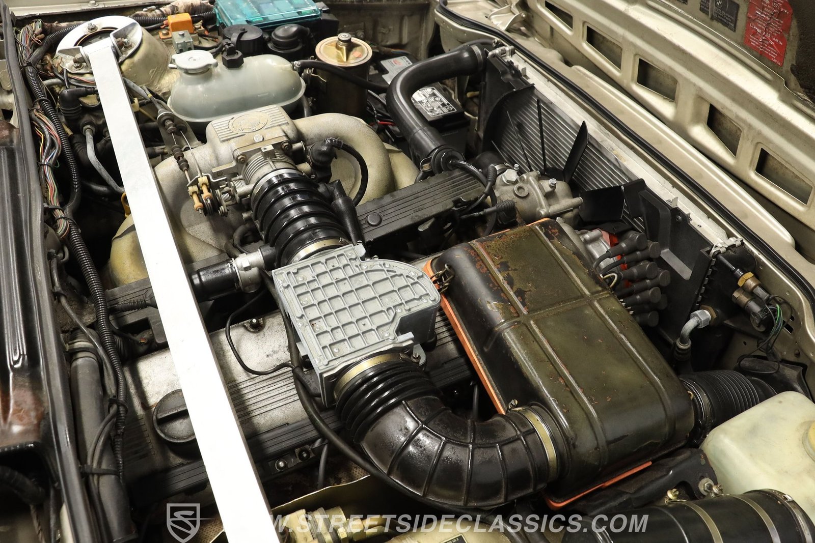 Sob o capô, este BMW abriga um robusto motor de seis cilindros em linha de 3,5 litros, acoplado a uma transmissão automática de 4 velocidades de trocas suaves. O compartimento do motor mantém uma aparência original de fábrica, com mangueiras, correias e componentes internos em bom estado. O conjunto mecânico proporciona uma experiência de condução clássica, com injeção eletrônica de combustível e direção hidráulica para uma condução segura. Os freios a disco nas quatro rodas garantem uma frenagem eficiente, tornando este carro um prazer de dirigir, seja em passeios tranquilos ou em estradas sinuosas.