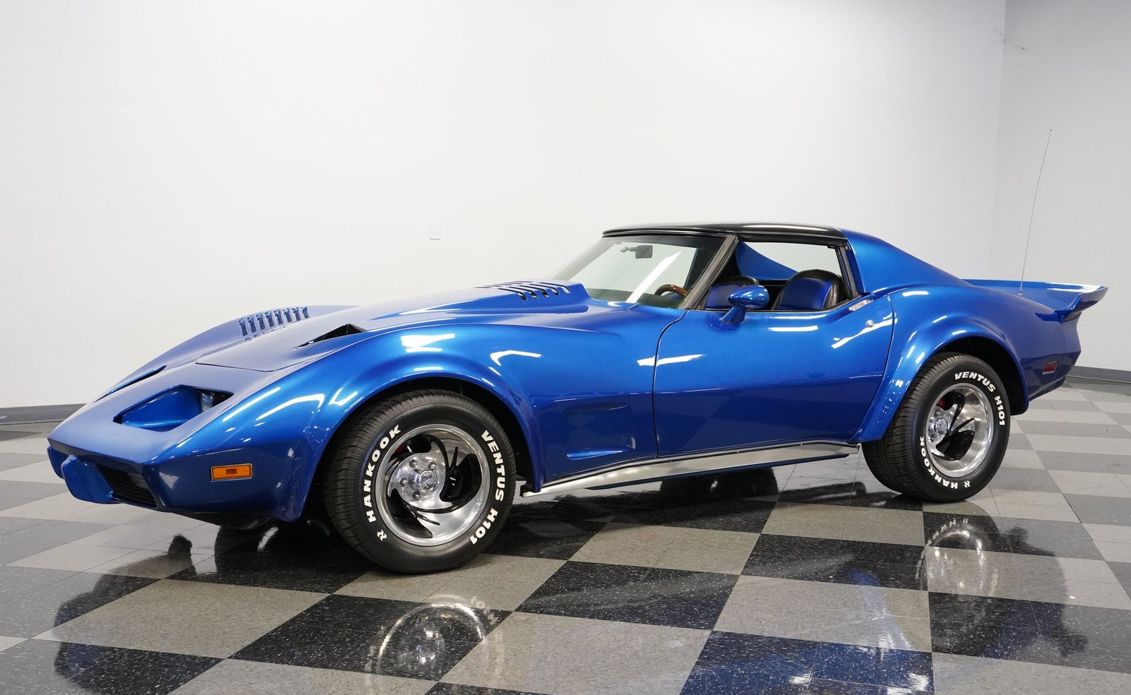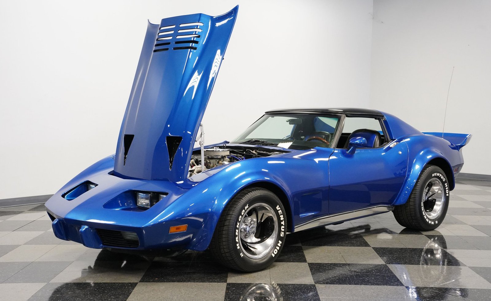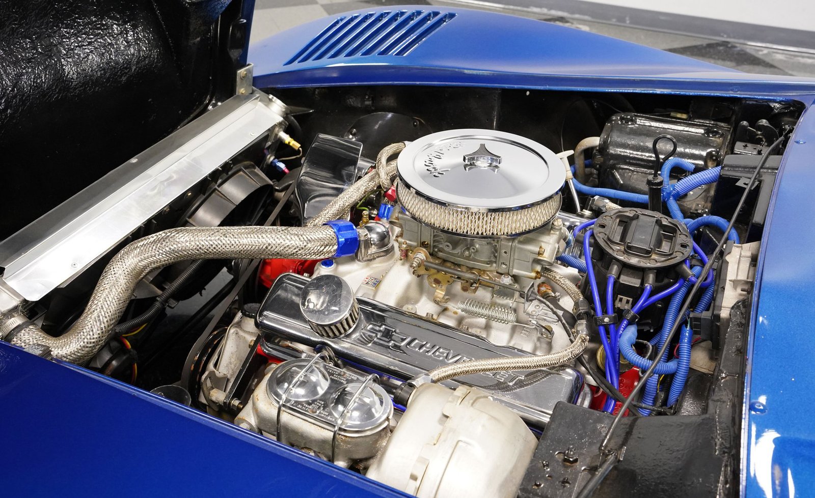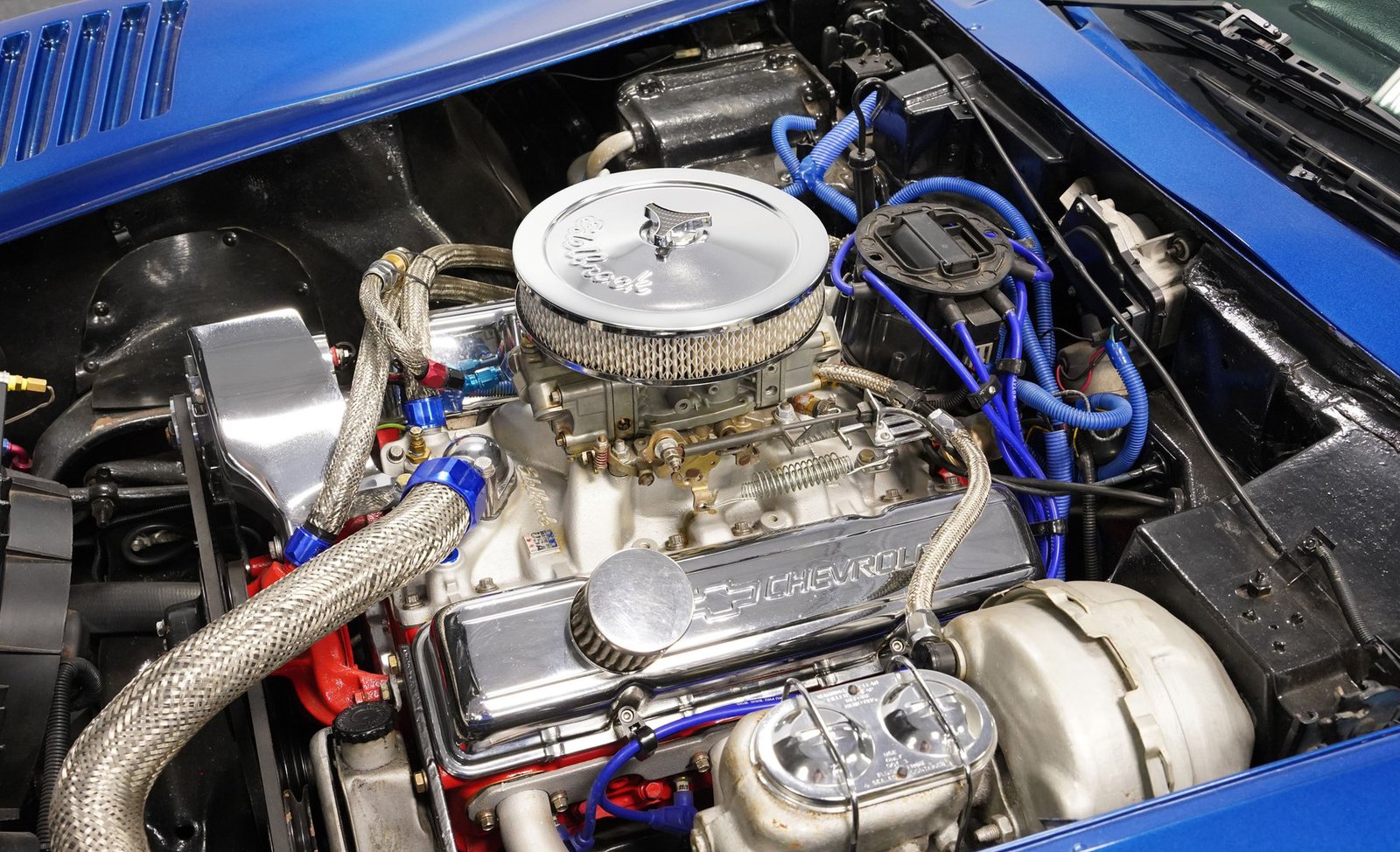 Sob o capô, este Corvette ruge com um V8 350, equipado com um carburador Holley de quatro corpos, coletor de admissão Edelbrock e detalhes cromados que brilham tanto quanto seu desempenho. O motor, com comando de válvulas otimizado, emite um ronco satisfatório que preenche o ar com potência bruta. Combinado com uma transmissão automática TH350 de três velocidades de trocas suaves e uma suspensão bem ajustada, este carro oferece uma condução emocionante e confiante.
