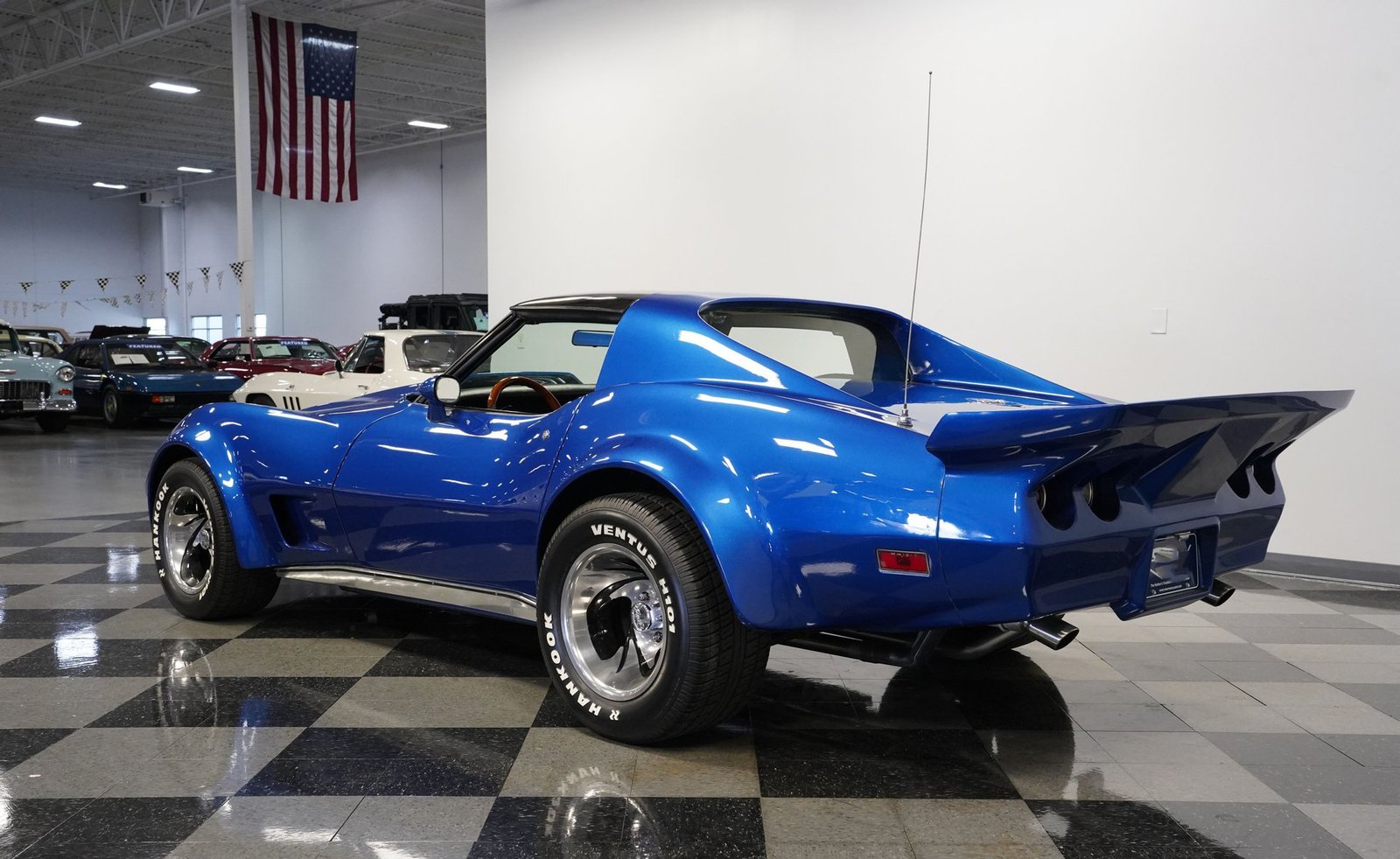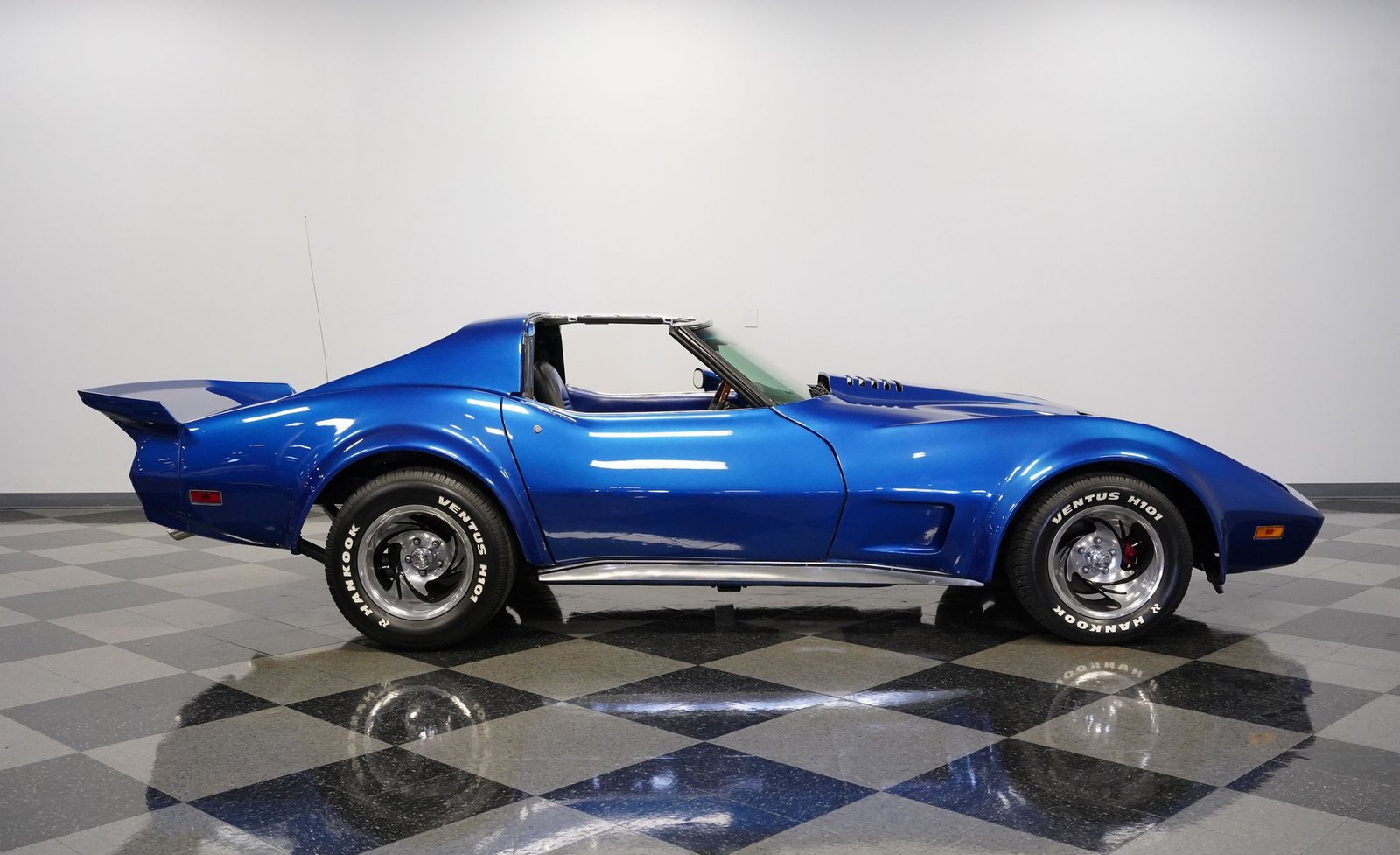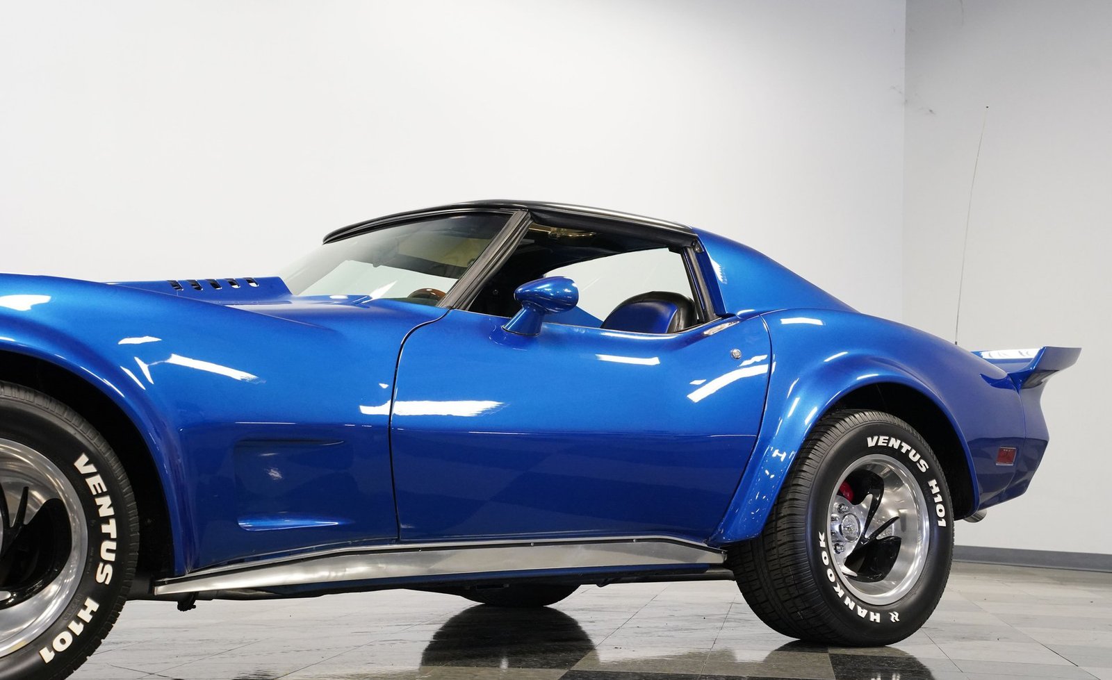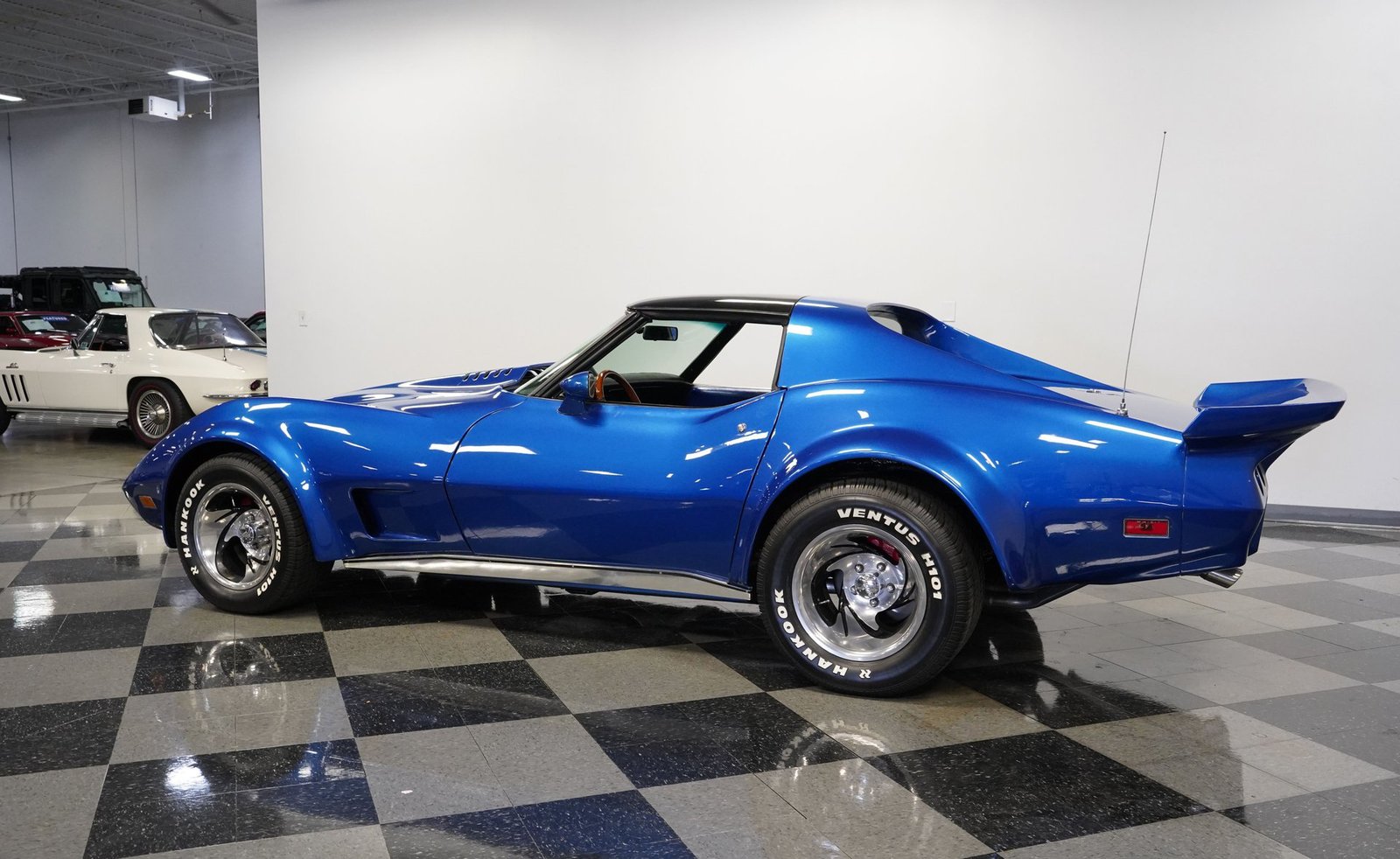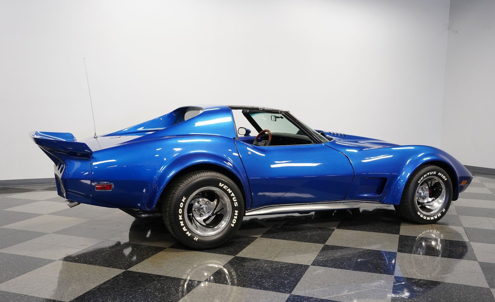 Sob o capô, este Corvette ruge com um V8 350, equipado com um carburador Holley de quatro corpos, coletor de admissão Edelbrock e detalhes cromados que brilham tanto quanto seu desempenho. O motor, com comando de válvulas otimizado, emite um ronco satisfatório que preenche o ar com potência bruta. Combinado com uma transmissão automática TH350 de três velocidades de trocas suaves e uma suspensão bem ajustada, este carro oferece uma condução emocionante e confiante.
