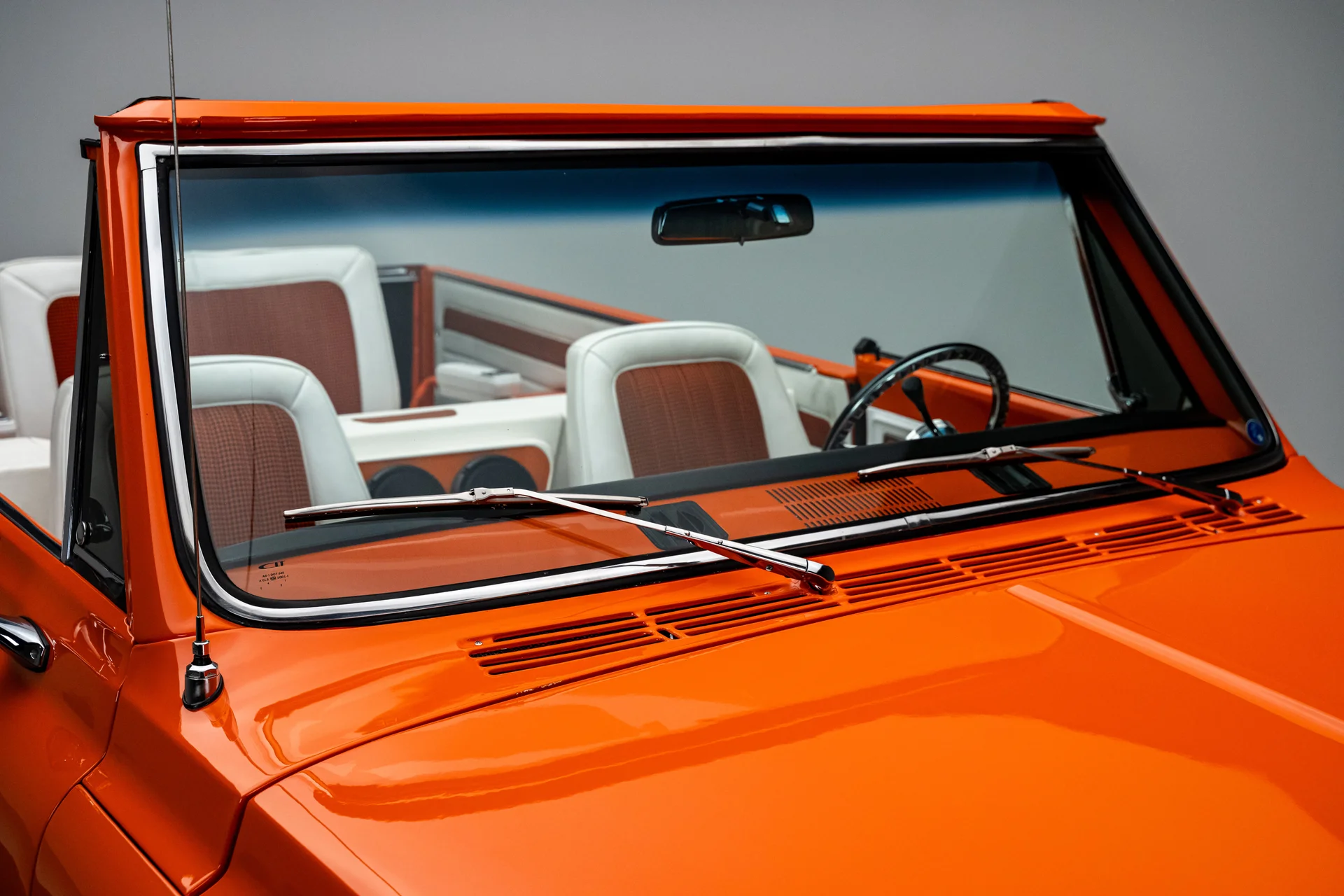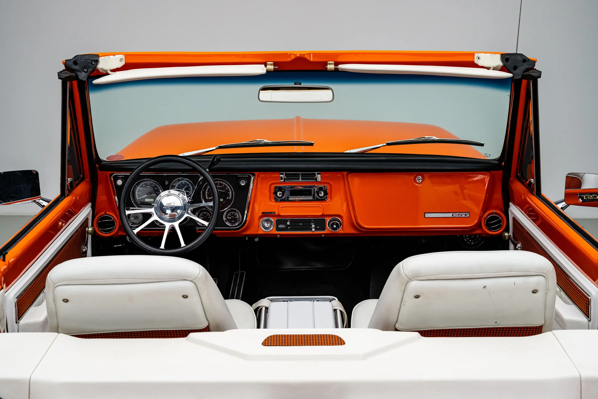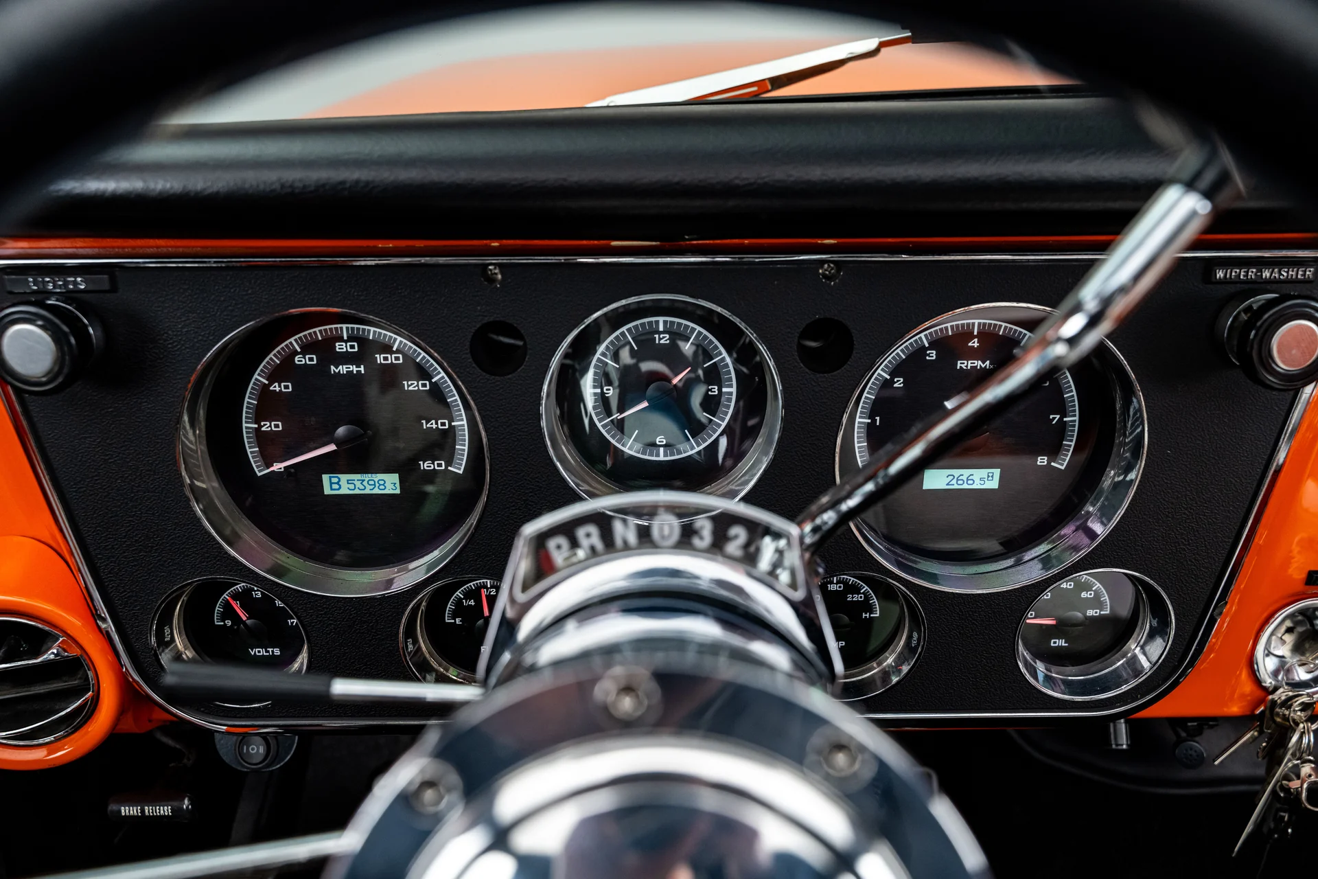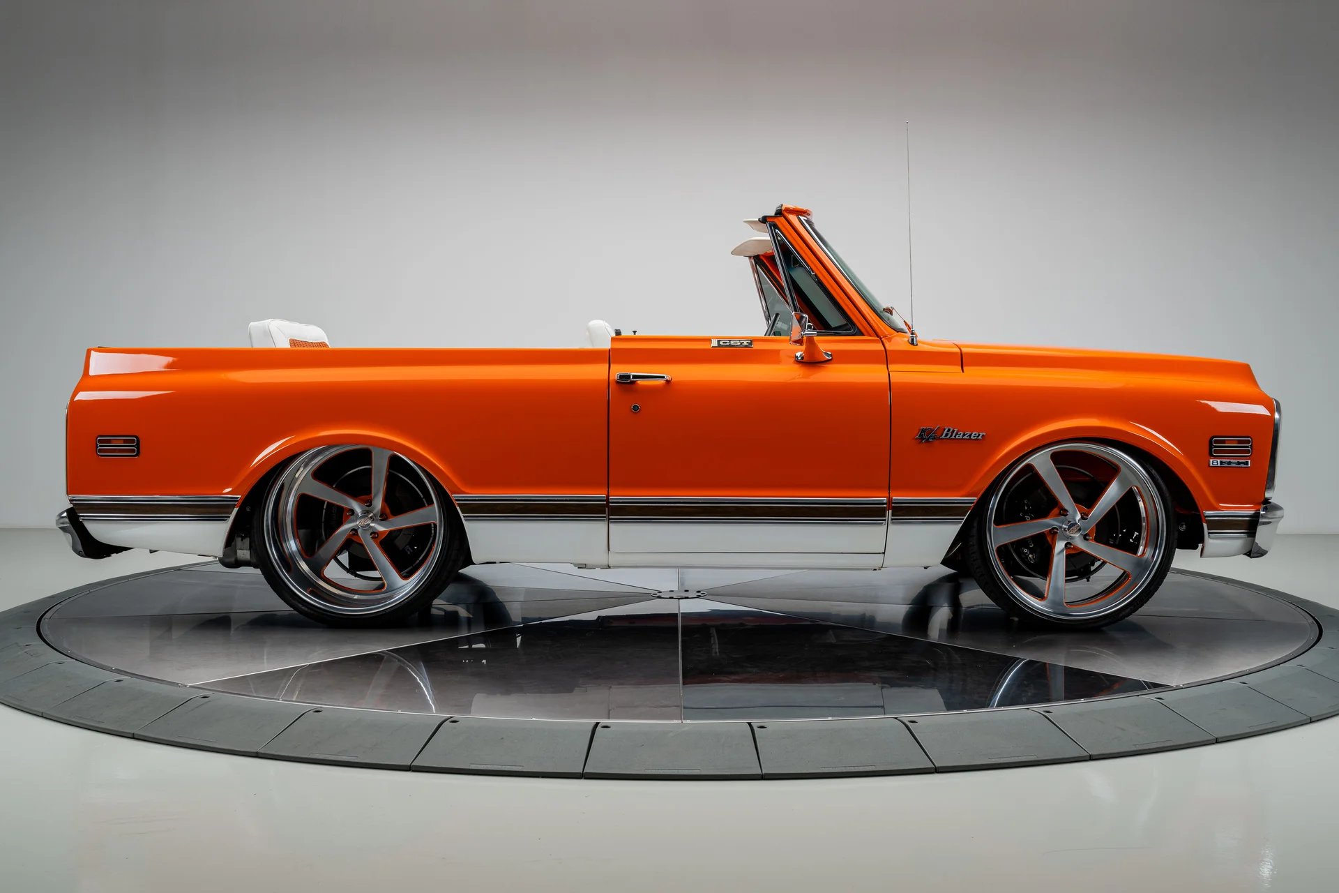 O Chevrolet Blazer de 1972 sempre foi um daqueles raros veículos que ficam tão bonitos cobertos de lama quanto polidos para uma exposição de carros. Este, porém, foi construído estritamente para os holofotes. Com acabamento em laranja Hugger e teto branco, suspensão a ar e um motor V8 6.0L retrabalhado sob o capô, é o tipo de máquina que chama a atenção de Miami a Los Angeles. Não importa a multidão ou a geração, este Blazer interrompe conversas e atrai olhares.