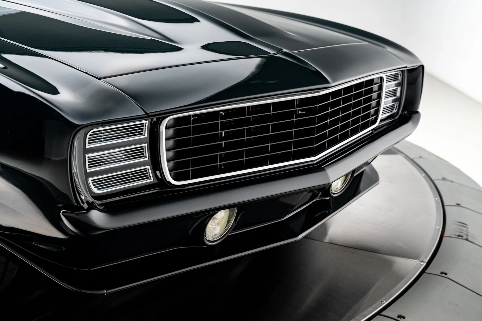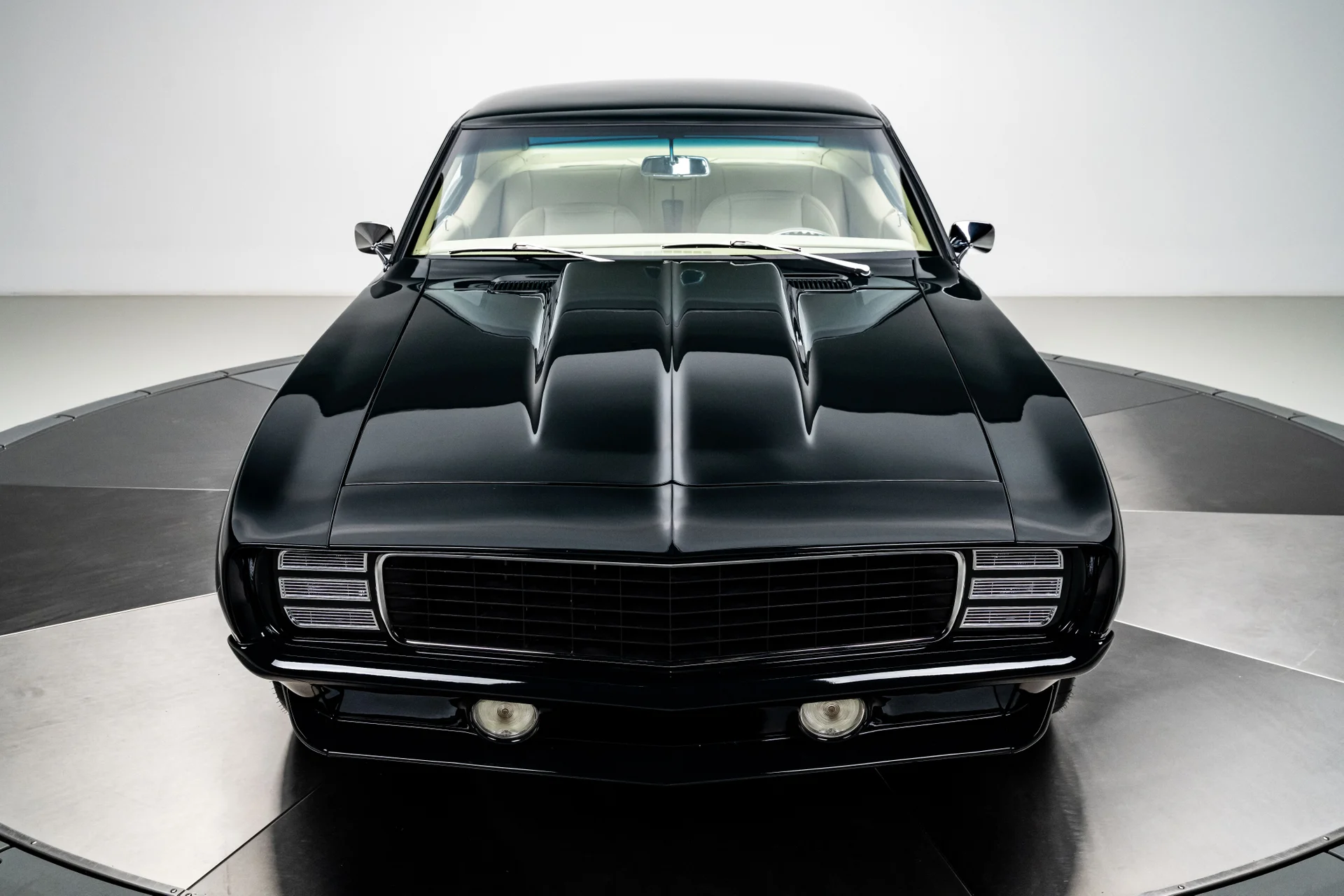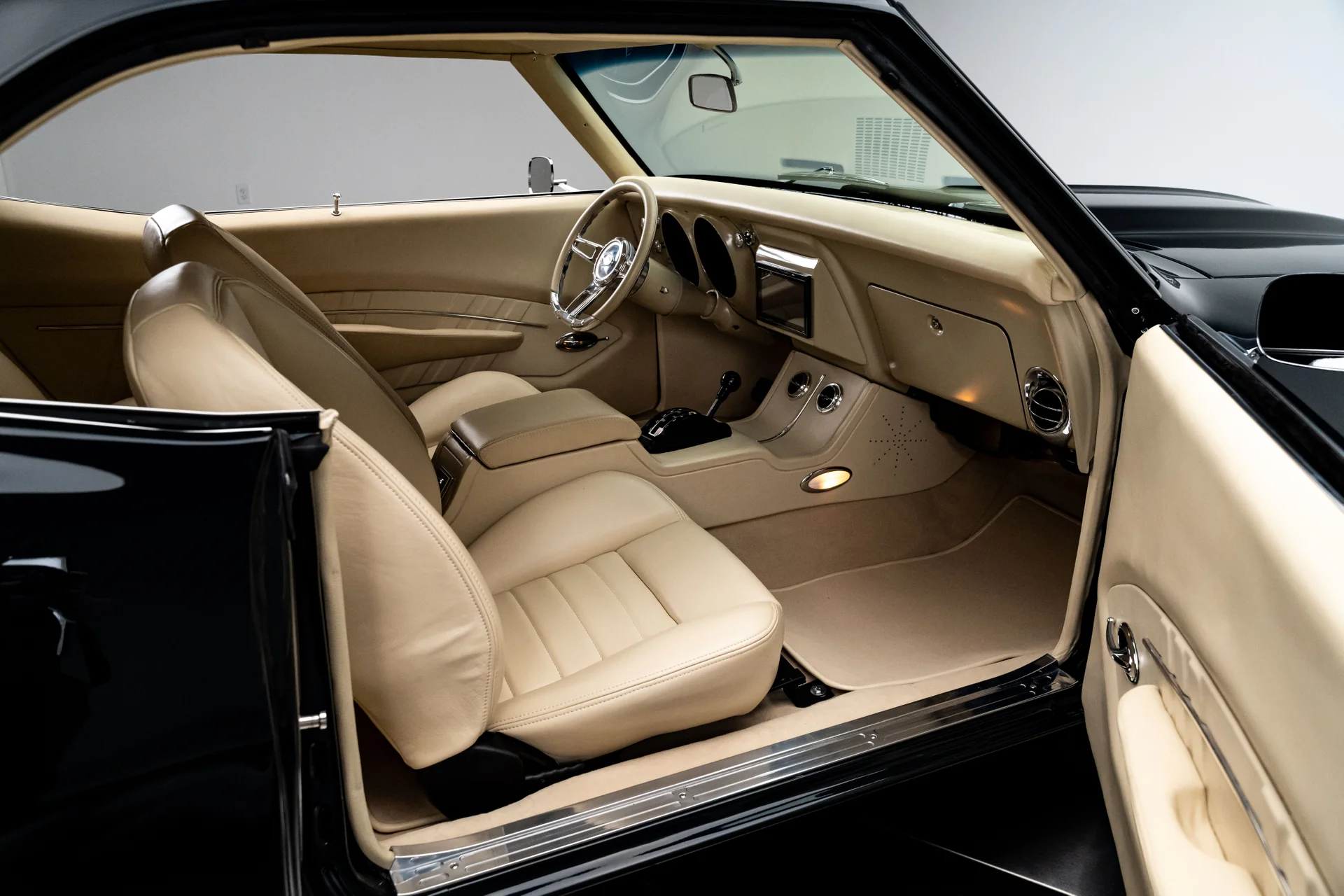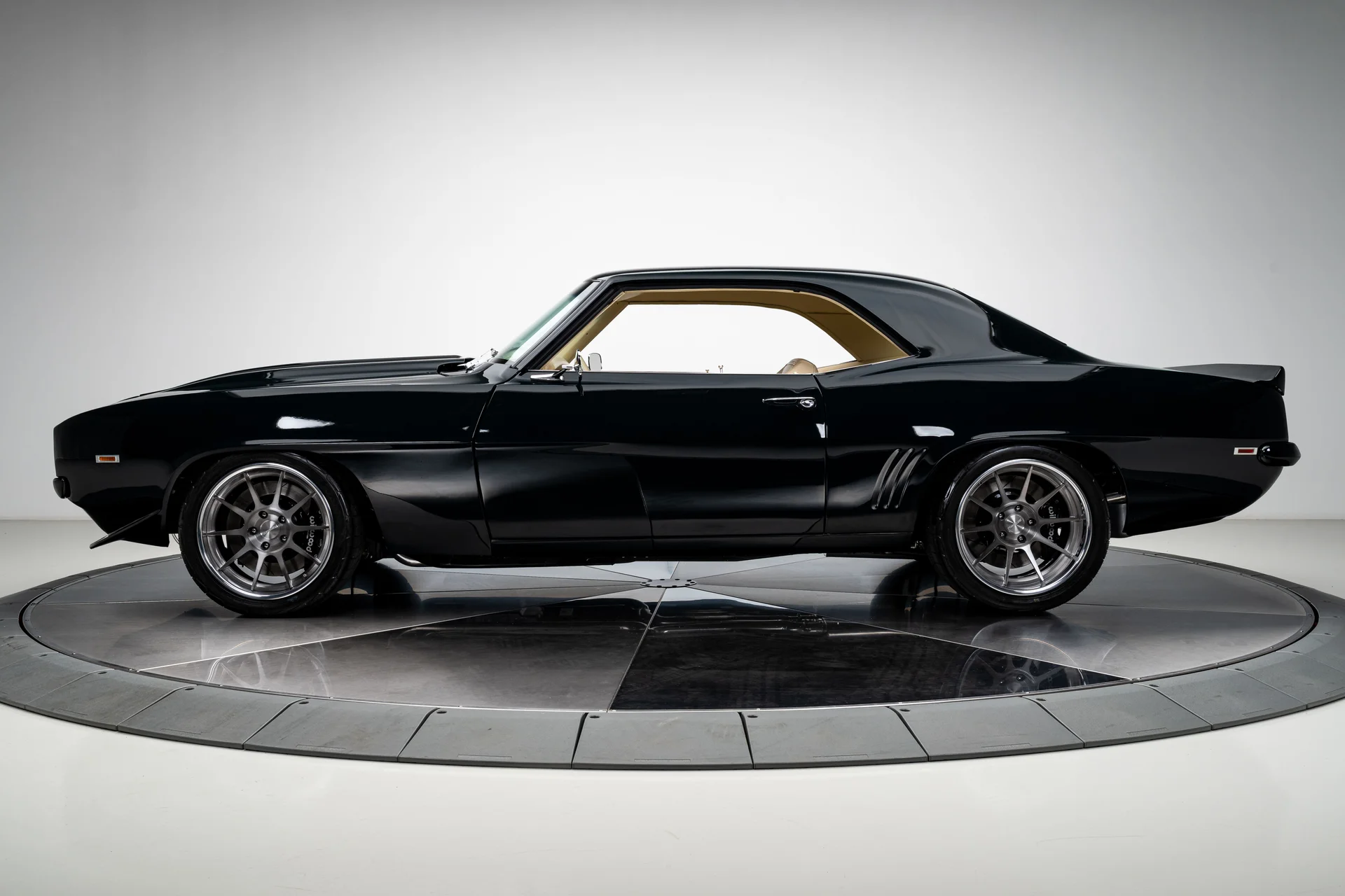 Este Chevrolet Camaro de 1969 é o resultado de um projeto de vários anos, sem poupar despesas, que transformou um dos muscle cars mais icônicos da época em uma refinada máquina pro-touring. Com acabamento em um verde escuro profundo que pode parecer quase preto sob certas luzes, ele combina as linhas inconfundíveis de um Camaro de 1969 com o desempenho e o conforto de um carro esportivo moderno. O resultado é um carro que parece ameaçador parado e transmite uma sensação de compostura na estrada.