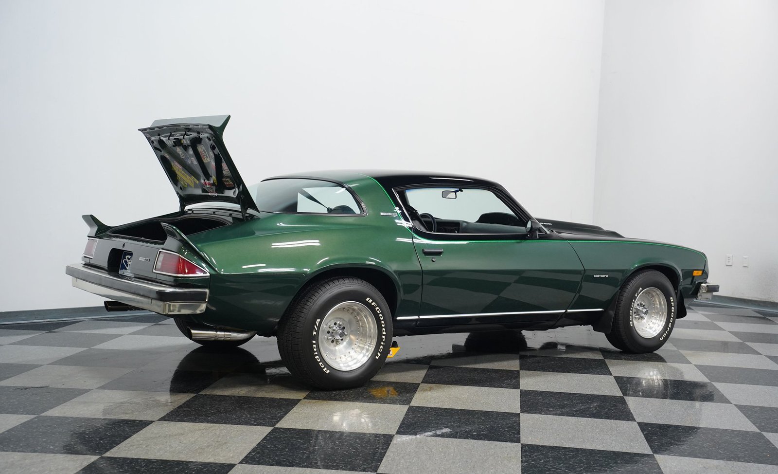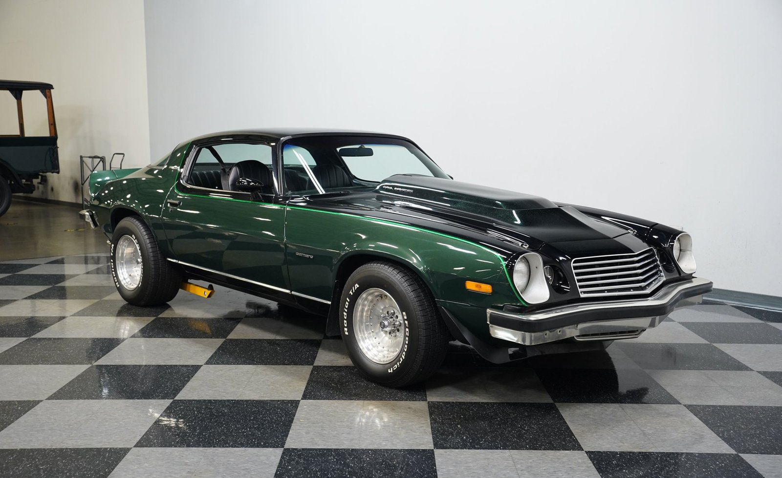 Motor V8 350 com câmbio manual de 4 marchas. Pintura personalizada. Freios a disco. Escapamento duplo. O carro dos sonhos da Geração X!