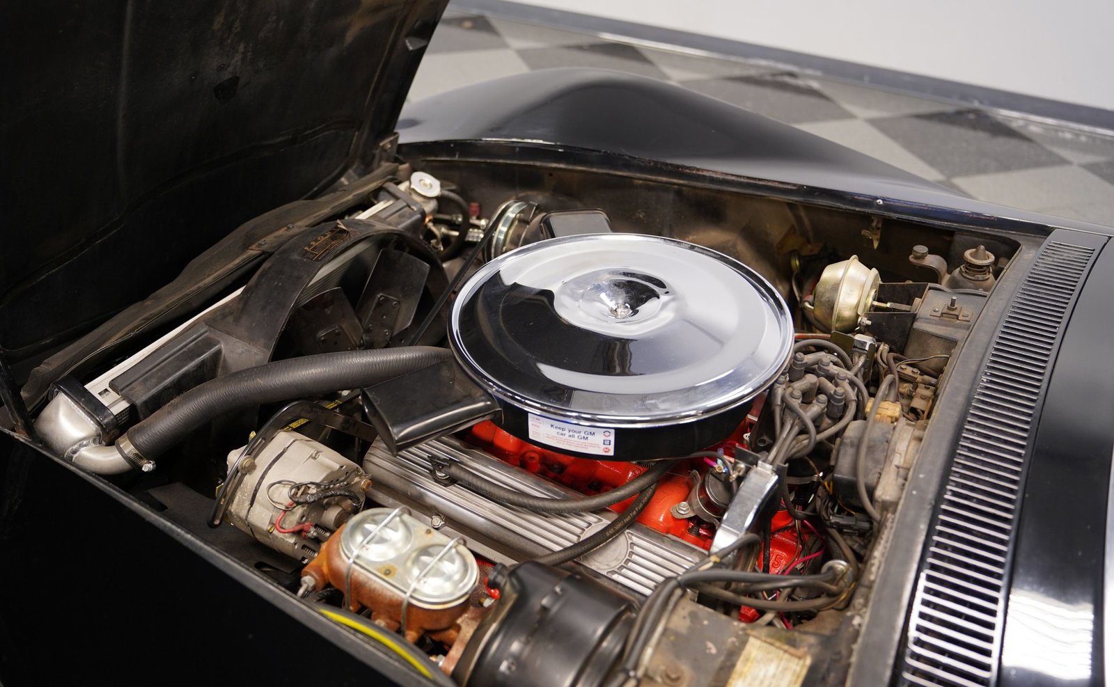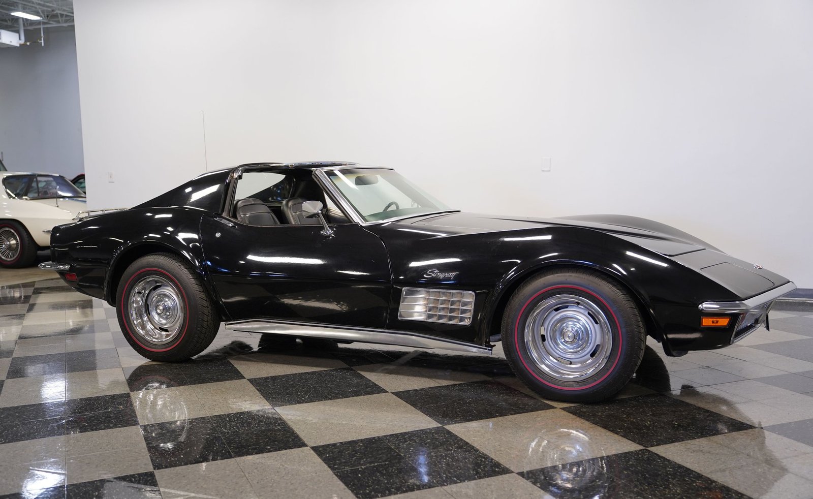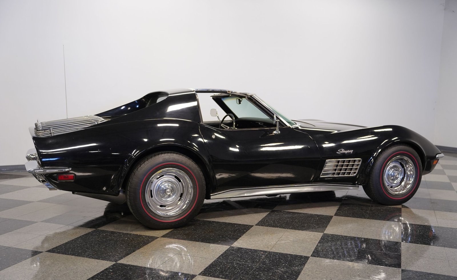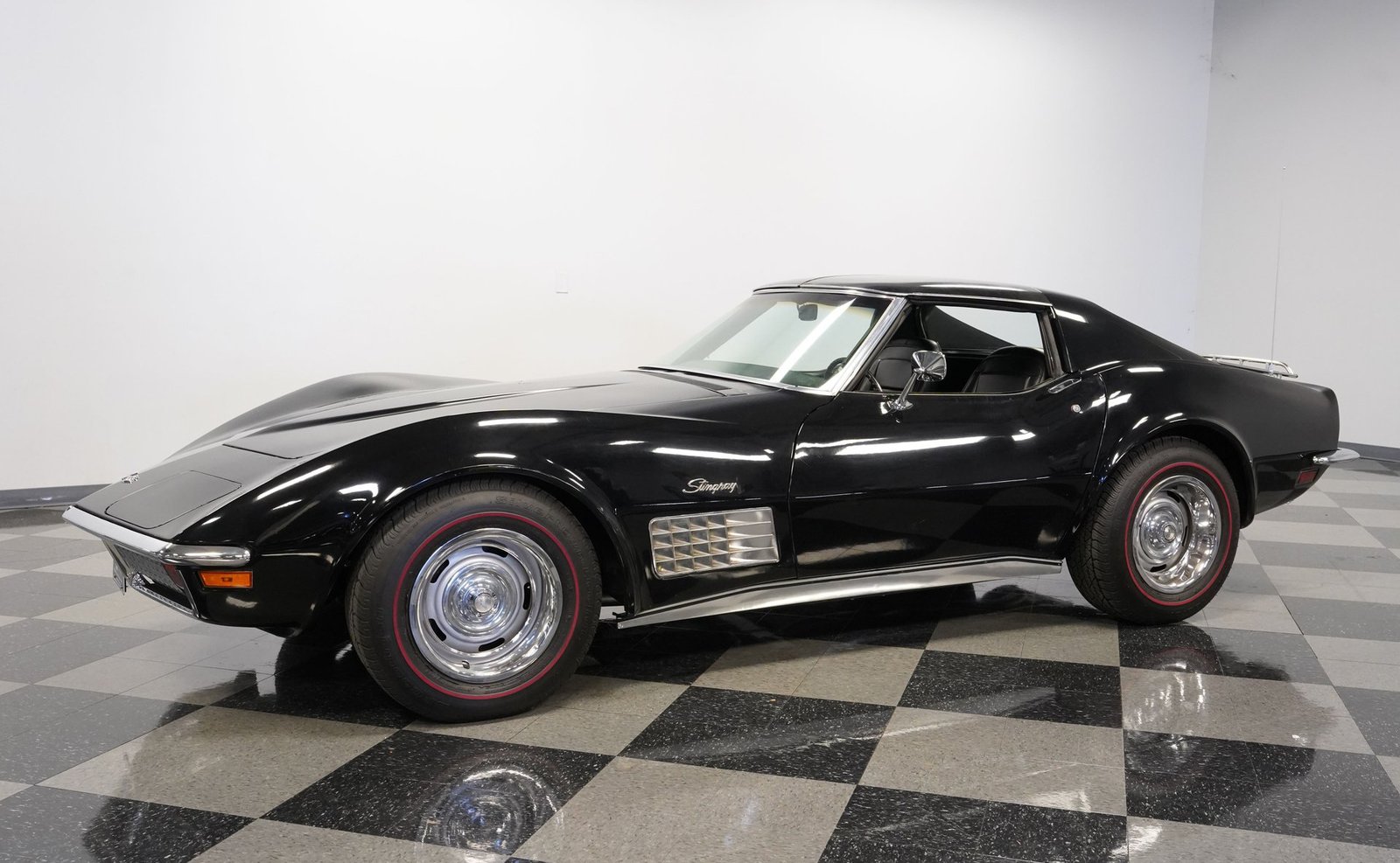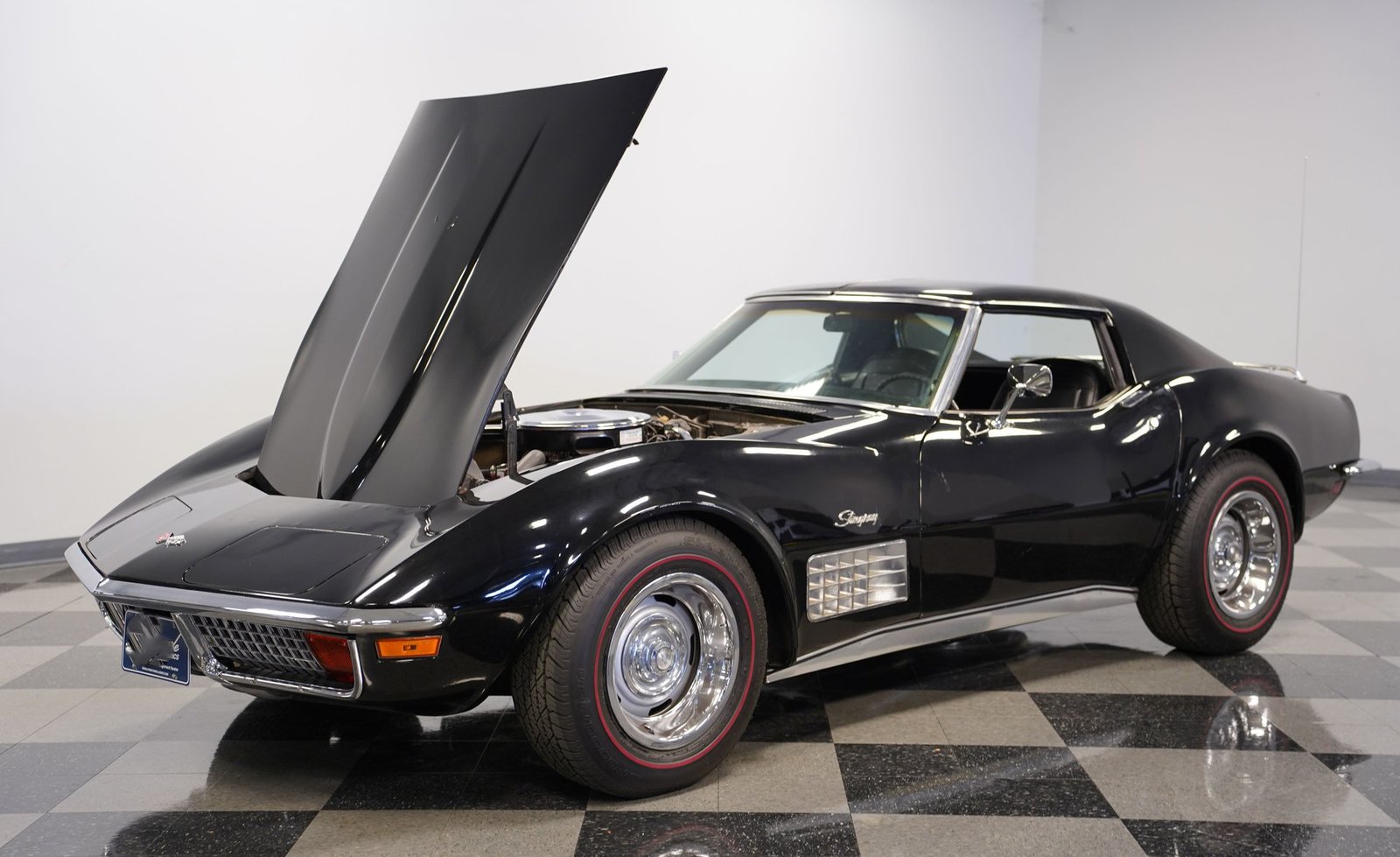Sob o capô, encontra-se um robusto motor V8 de 350 polegadas cúbicas (5,7 litros) acoplado a um carburador Holley Brawler de quatro corpos, que proporciona um ronco potente e uma resposta suave do acelerador. A transmissão automática TH400 de três velocidades oferece uma entrega de potência sem esforço, enquanto as ponteiras duplas de escape cromadas emitem um ronco profundo e satisfatório. A direção hidráulica e os freios a disco nas quatro rodas combinam-se para proporcionar confiança em cada curva e frenagem, tornando este Corvette um verdadeiro carro para o motorista, que se sente vivo tanto na rua quanto na estrada.