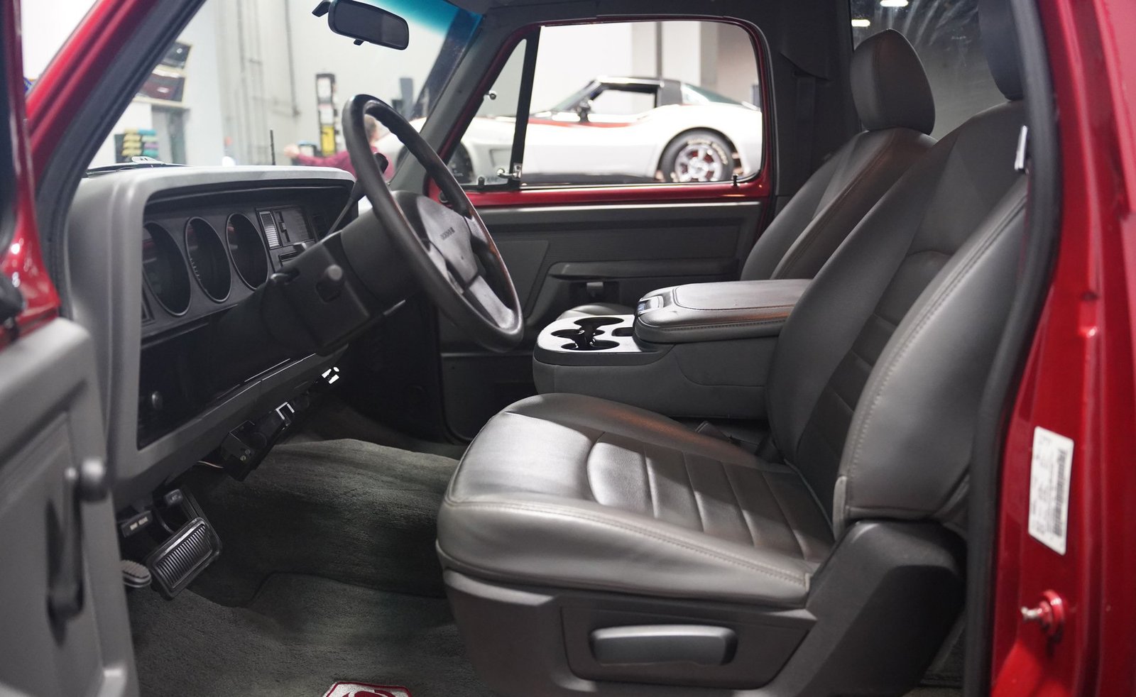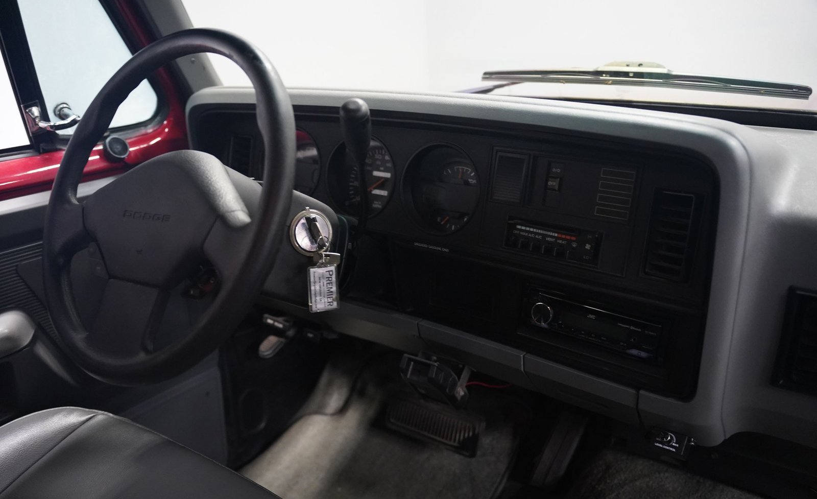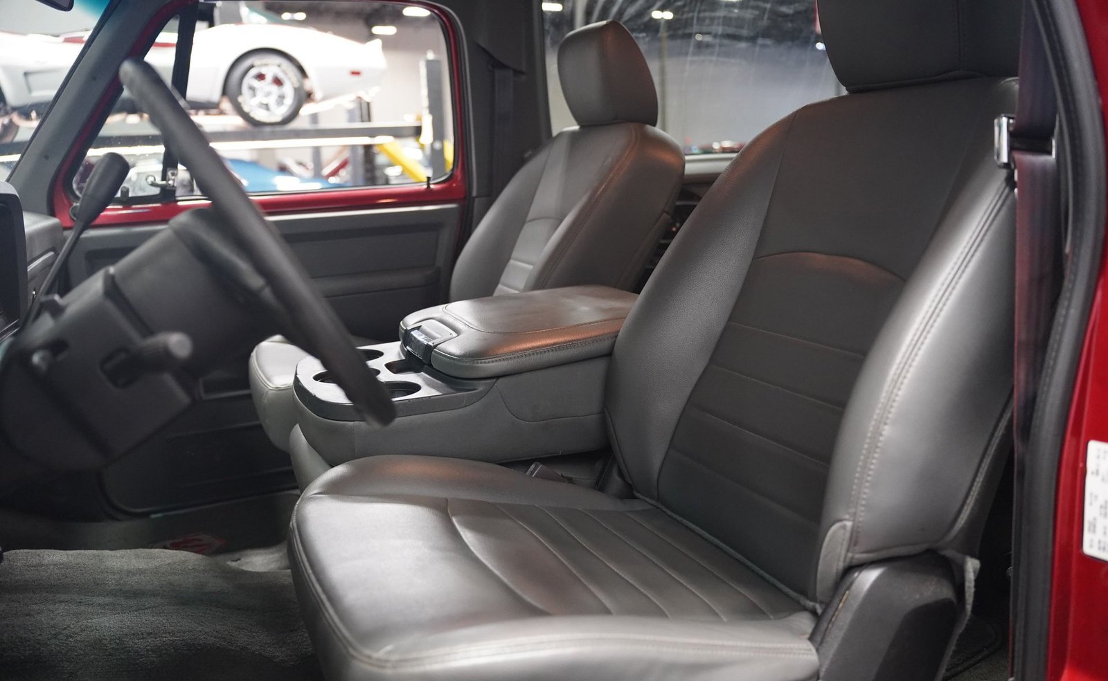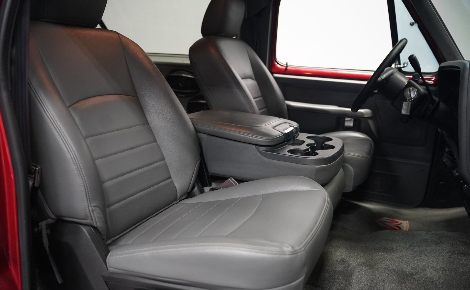 Equipada com enormes rodas de 24 polegadas, esta Dodge Ramcharger de 1992, na cor vermelha, agarra-se ao asfalto com pneus 295/30ZR24. Os vidros escurecidos emolduram o SUV de duas portas, enquanto os alargadores de para-lamas aumentam a largura para acomodar as rodas de grandes dimensões. Para-choques e grade na mesma cor da carroceria criam um visual harmonioso, enquanto faróis e lanternas traseiras personalizados modernizam a iluminação dianteira e traseira. Os emblemas pintados se integram perfeitamente ao acabamento vermelho desta Ramcharger totalmente repintada.