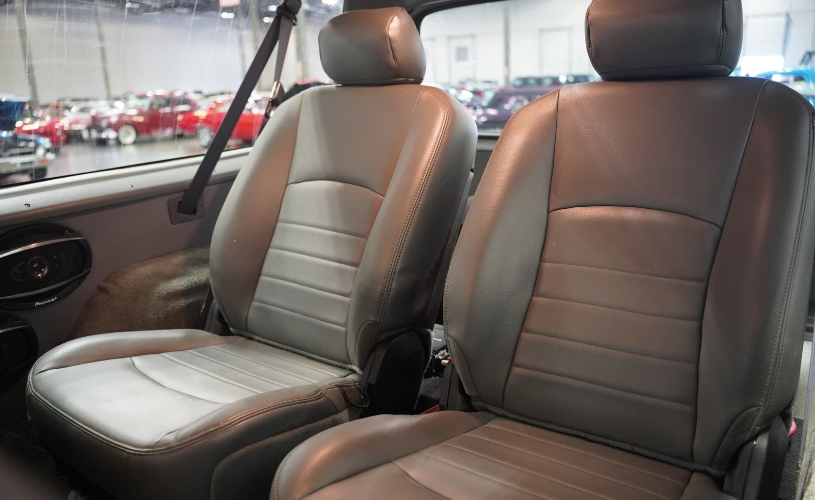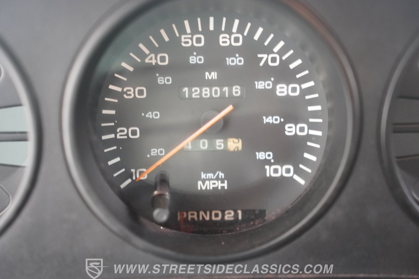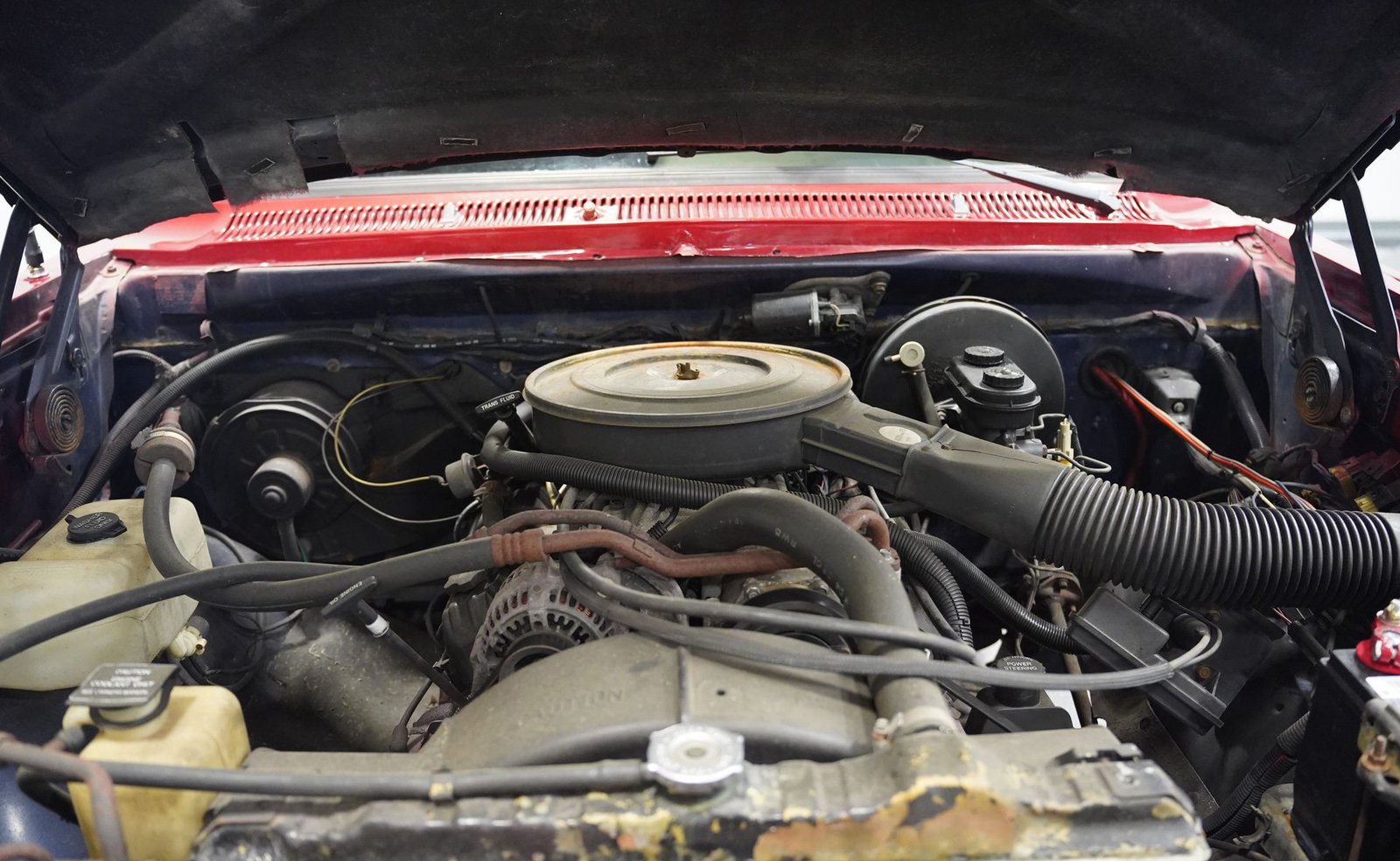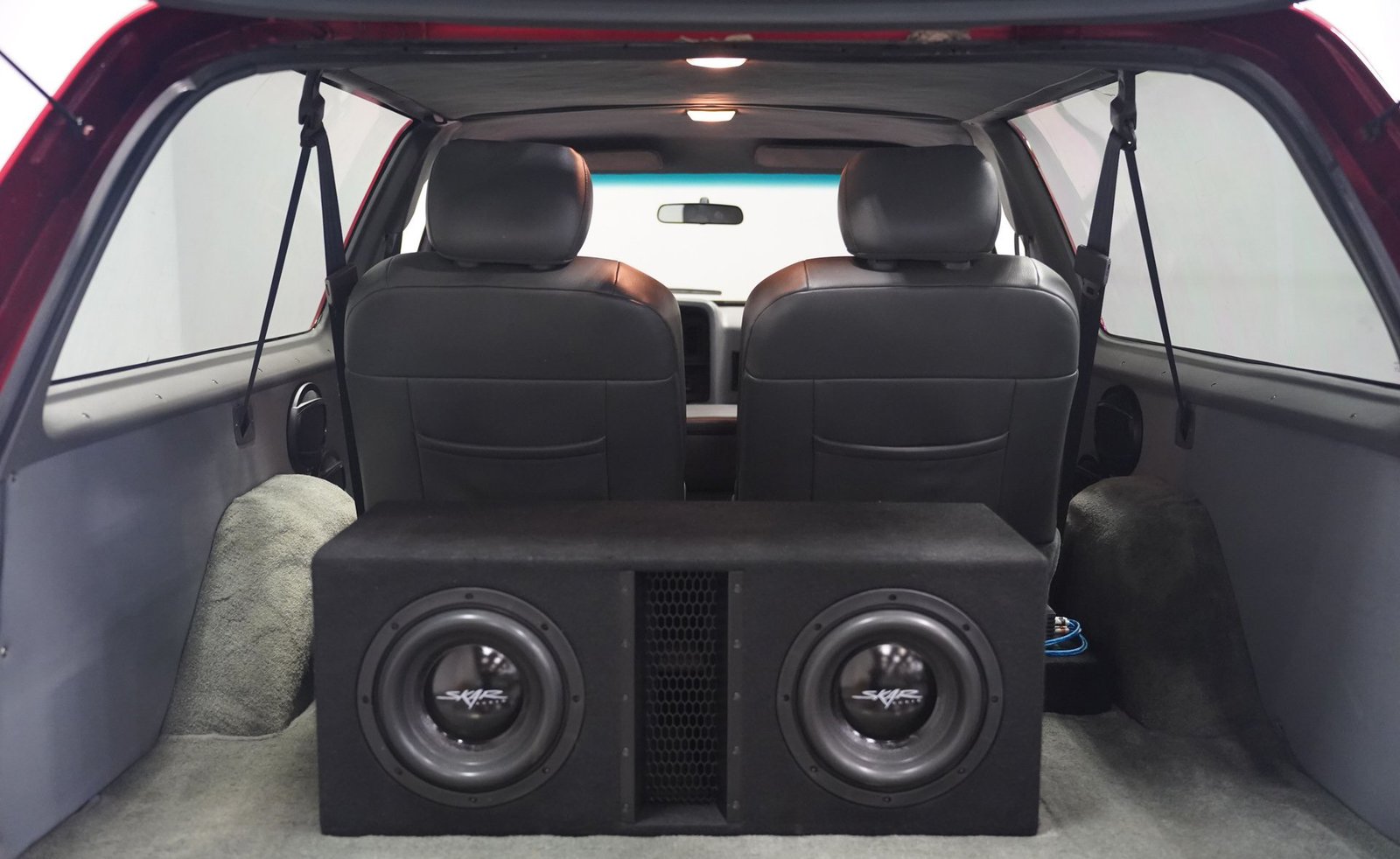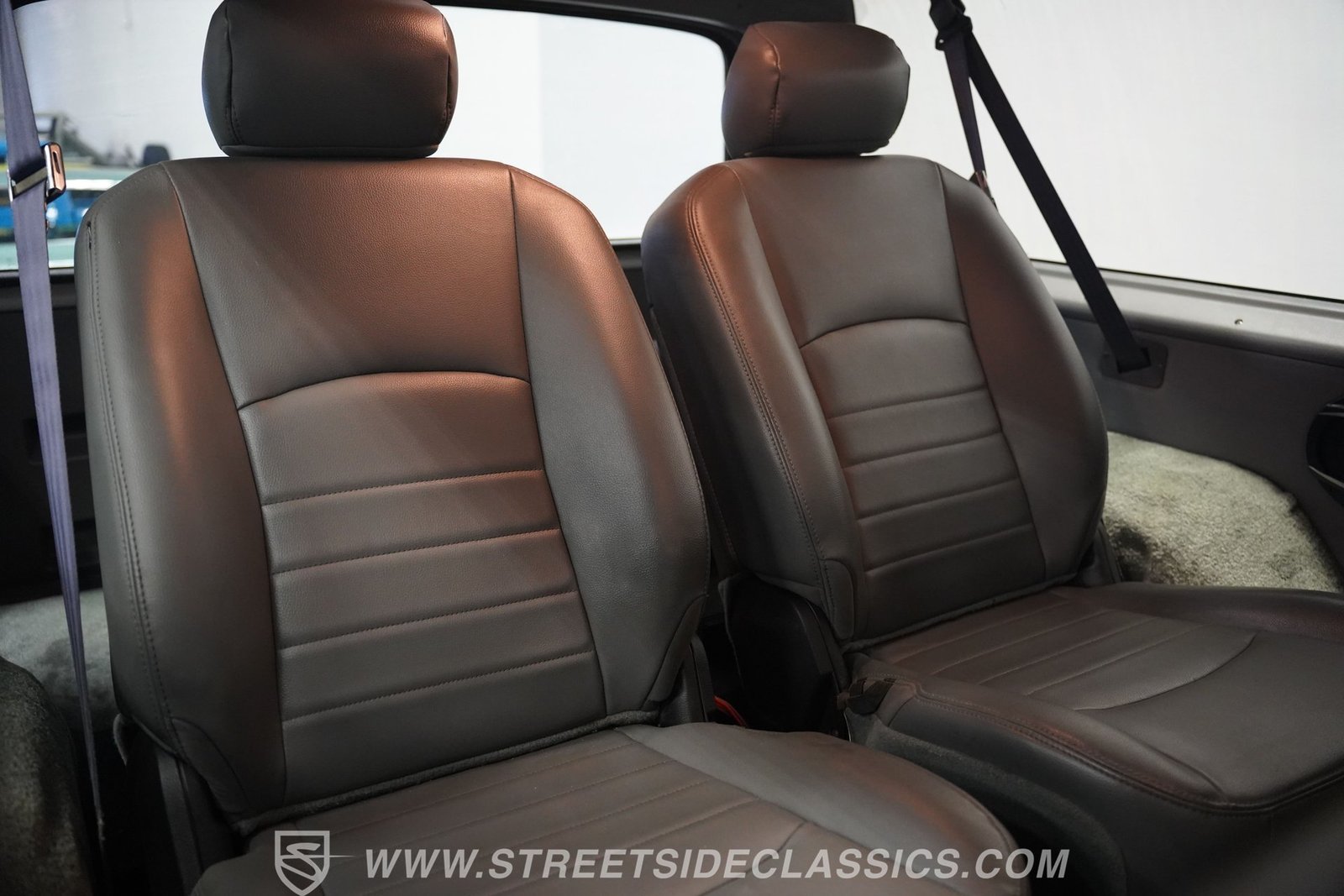 Equipada com enormes rodas de 24 polegadas, esta Dodge Ramcharger de 1992, na cor vermelha, agarra-se ao asfalto com pneus 295/30ZR24. Os vidros escurecidos emolduram o SUV de duas portas, enquanto os alargadores de para-lamas aumentam a largura para acomodar as rodas de grandes dimensões. Para-choques e grade na mesma cor da carroceria criam um visual harmonioso, enquanto faróis e lanternas traseiras personalizados modernizam a iluminação dianteira e traseira. Os emblemas pintados se integram perfeitamente ao acabamento vermelho desta Ramcharger totalmente repintada.