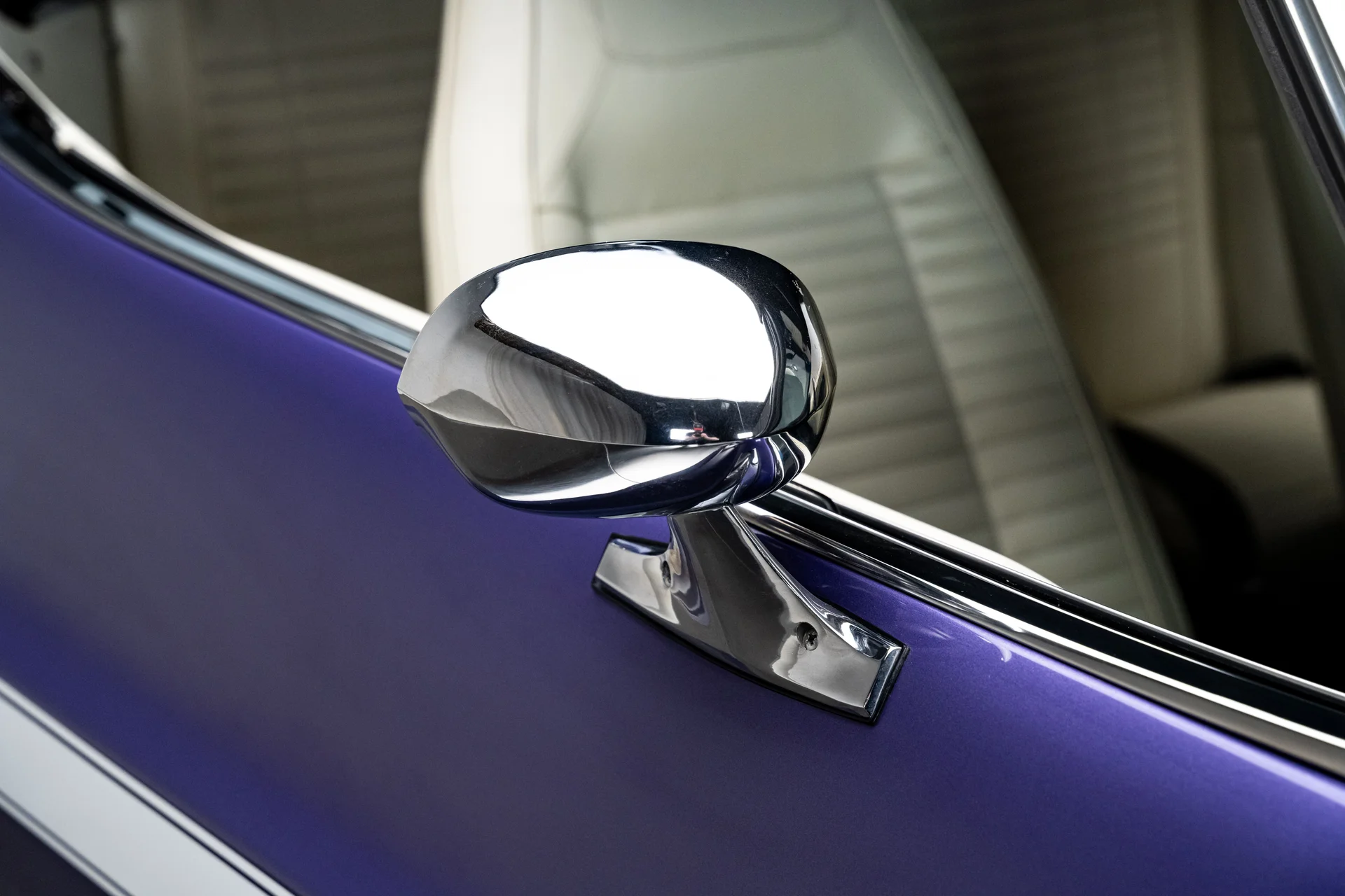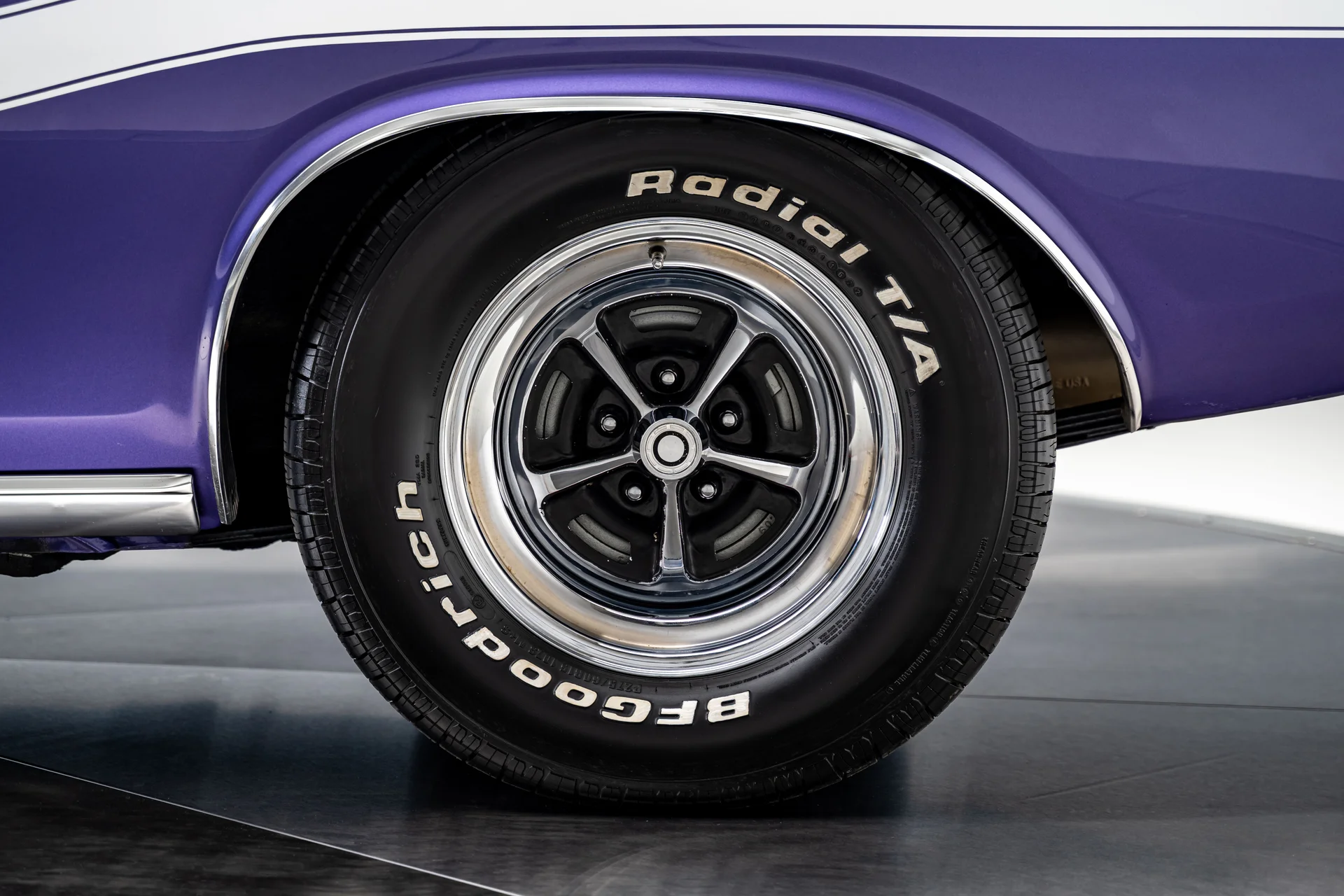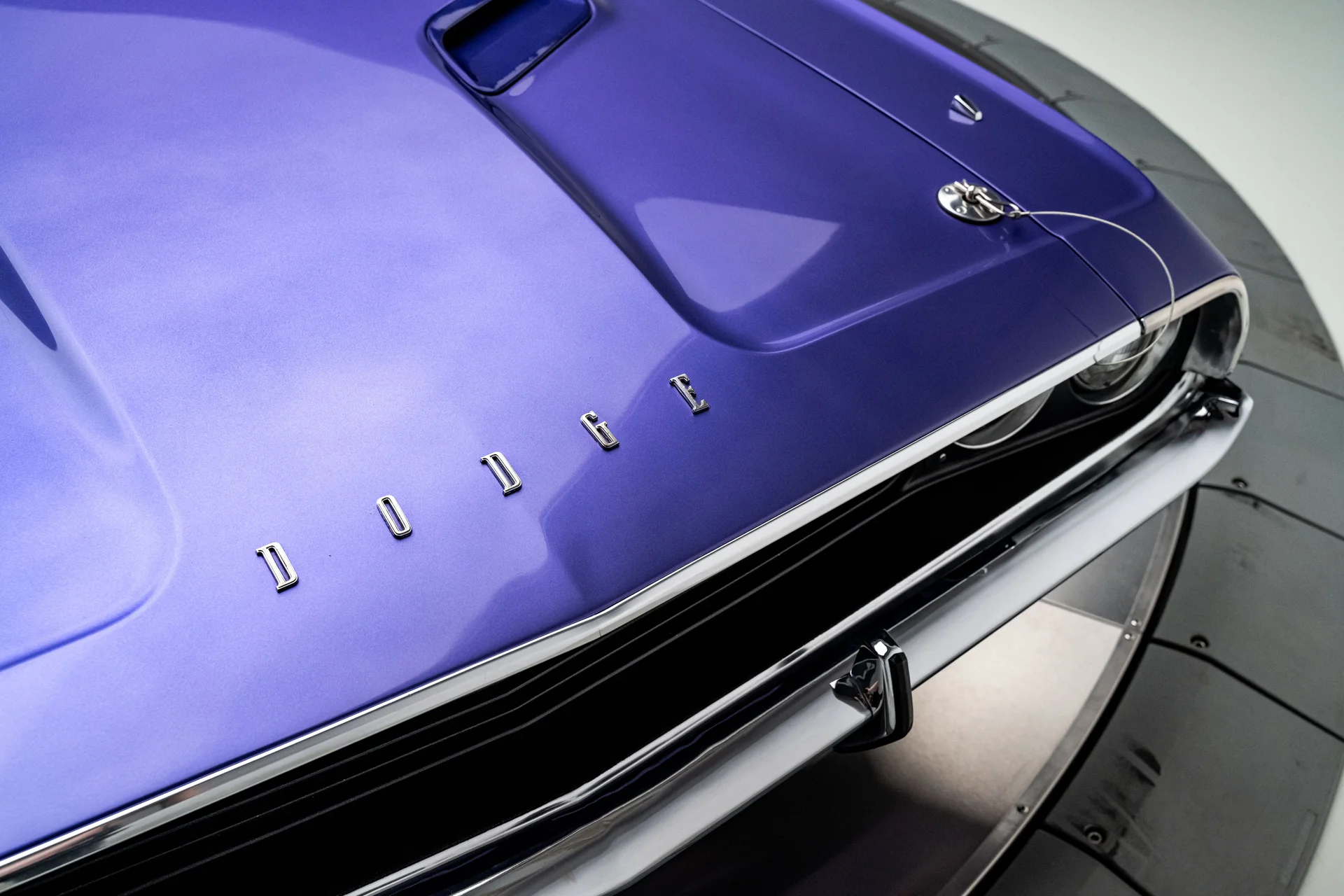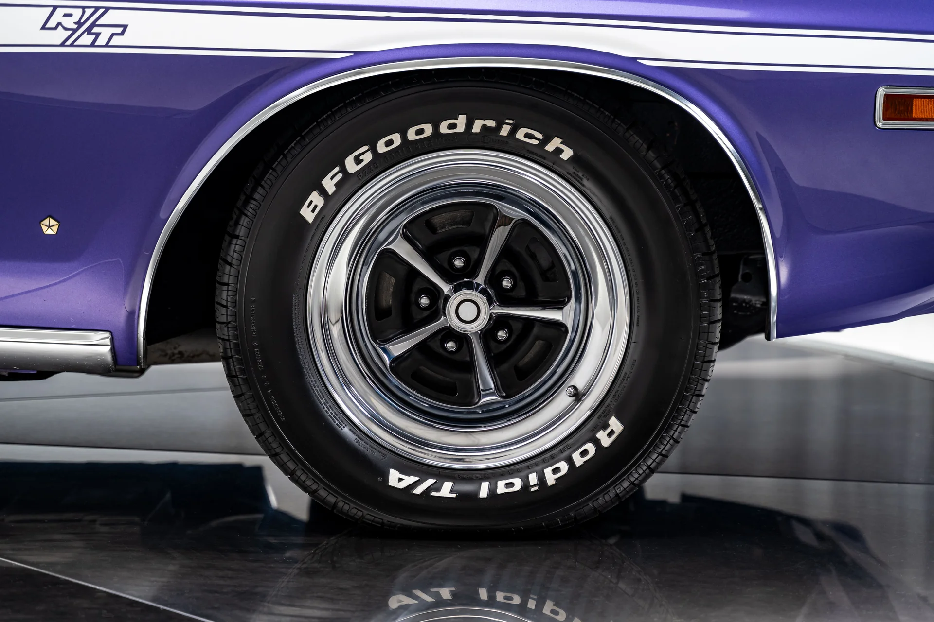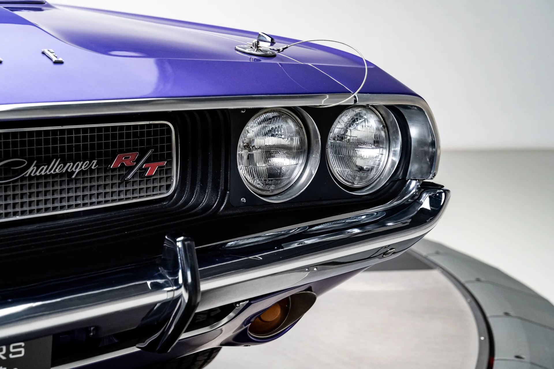 Com um acabamento em um vibrante tom de roxo Plum Crazy de alto impacto e faixas nítidas no estilo R/T, a carroceria apresenta linhas marcantes, proporções confiantes e a inconfundível imponência que define o design do Challenger. O carro passou por uma restauração profissional concluída em 2011 pela Quintin Brothers Auto and Performance. Para-choques cromados, emblemas R/T e acabamentos originais de fábrica permanecem intactos, conferindo ao carro uma aparência sóbria e condizente com a época. Equipado com rodas de 15 polegadas e pneus BFGoodrich Radial T/A, o visual é exatamente o que deveria ser.