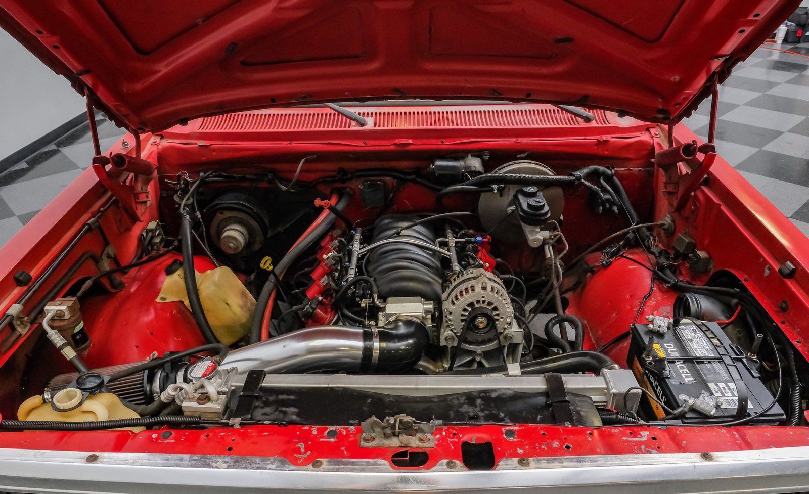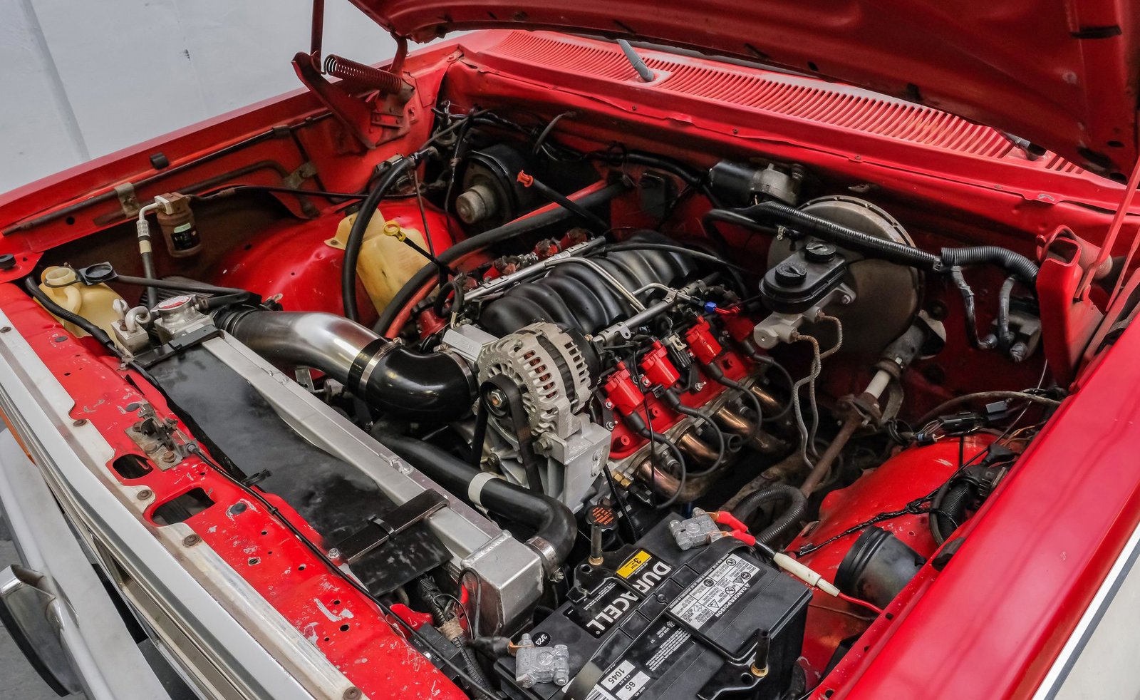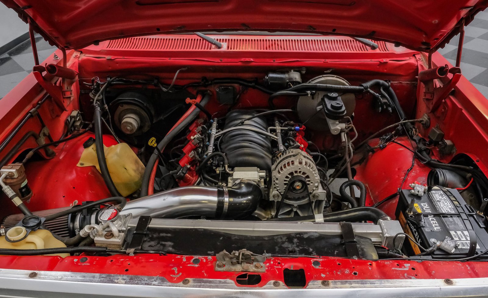 Sob o capô, um potente motor V8 LQ4 de 6.0 litros oferece desempenho impressionante com a ajuda de cabeçotes LS3, corpo de borboleta de 102 mm, coletor de admissão, kit de comando de válvulas e injetores. A transmissão automática de 4 velocidades (4L65E) realiza trocas suaves, em conjunto com um eixo traseiro Chrysler de 9,25 polegadas equipado com engrenagens Yukon 4.10 e diferencial de deslizamento limitado. Construído pela Wamsley Performance, este conjunto garante uma condução emocionante e confiável. Outras melhorias incluem coletores de escape de longo curso, radiador de alumínio com ventoinhas elétricas e um conversor de torque de alto stall, contribuindo para um ronco robusto e encorpado do escapamento que chama a atenção na estrada.