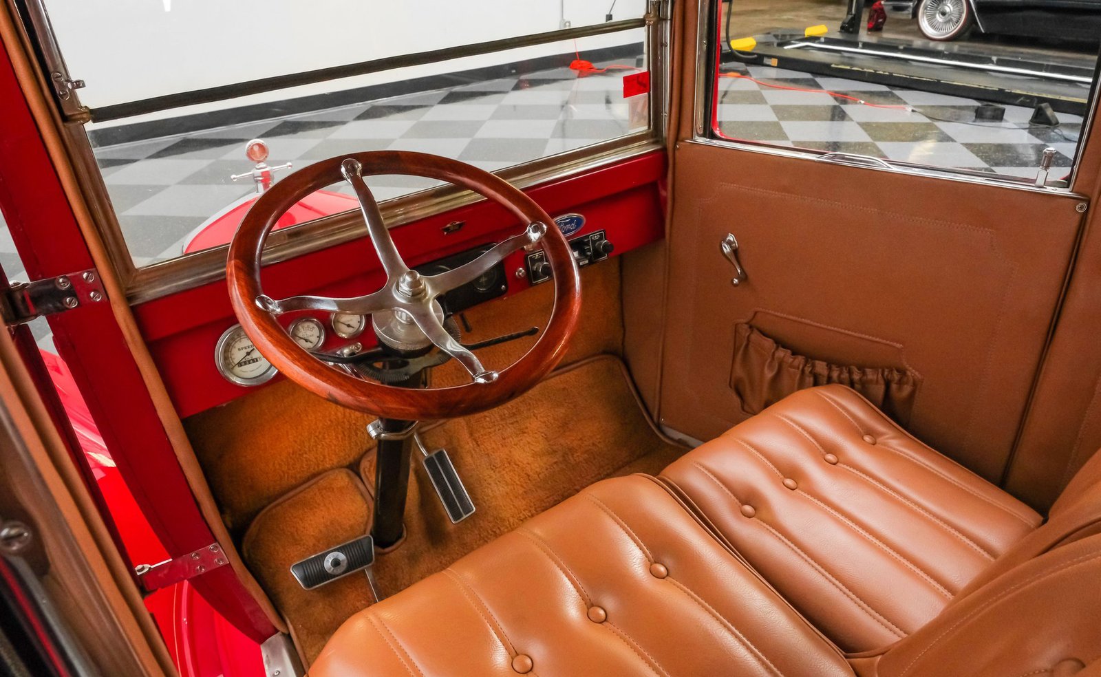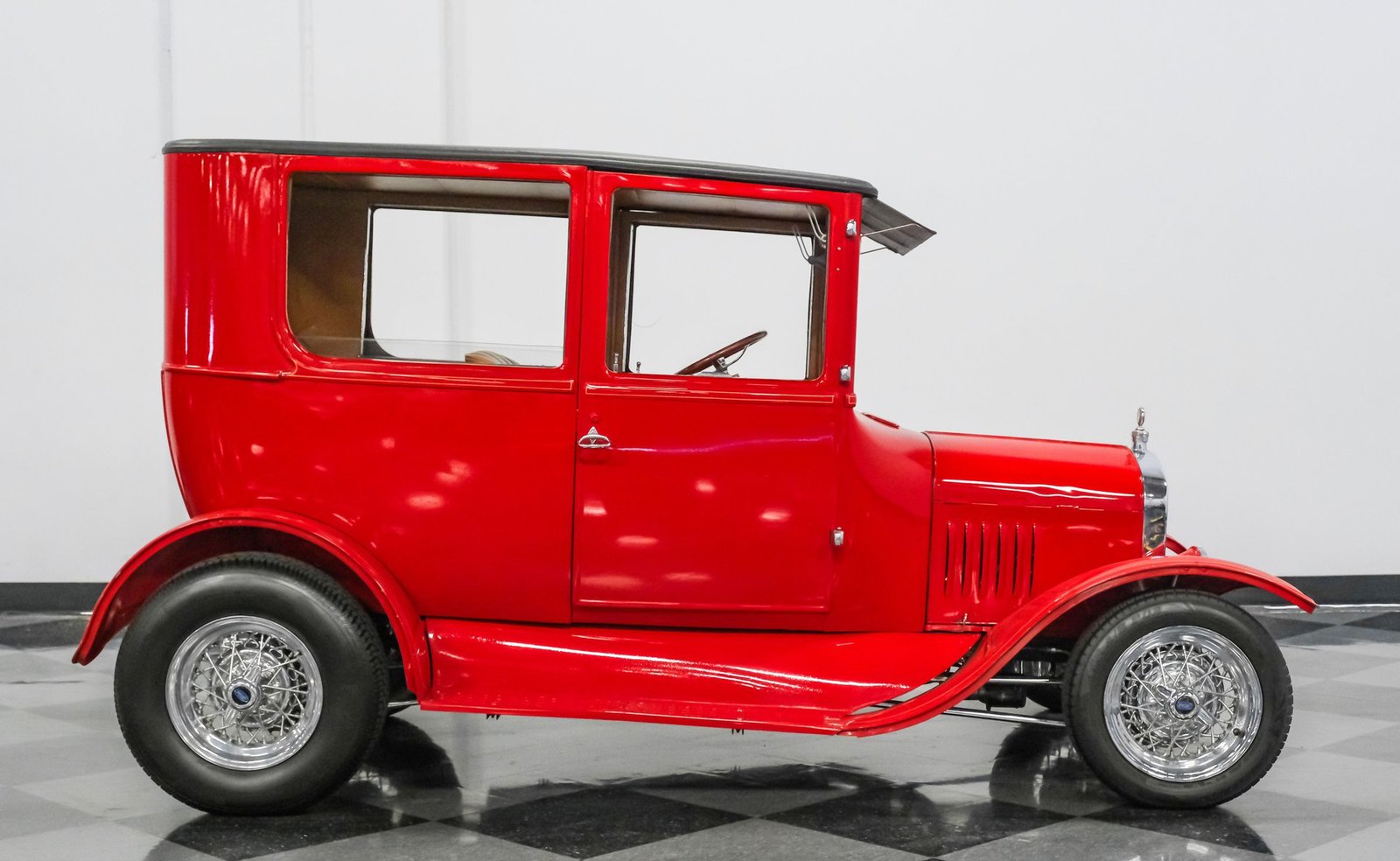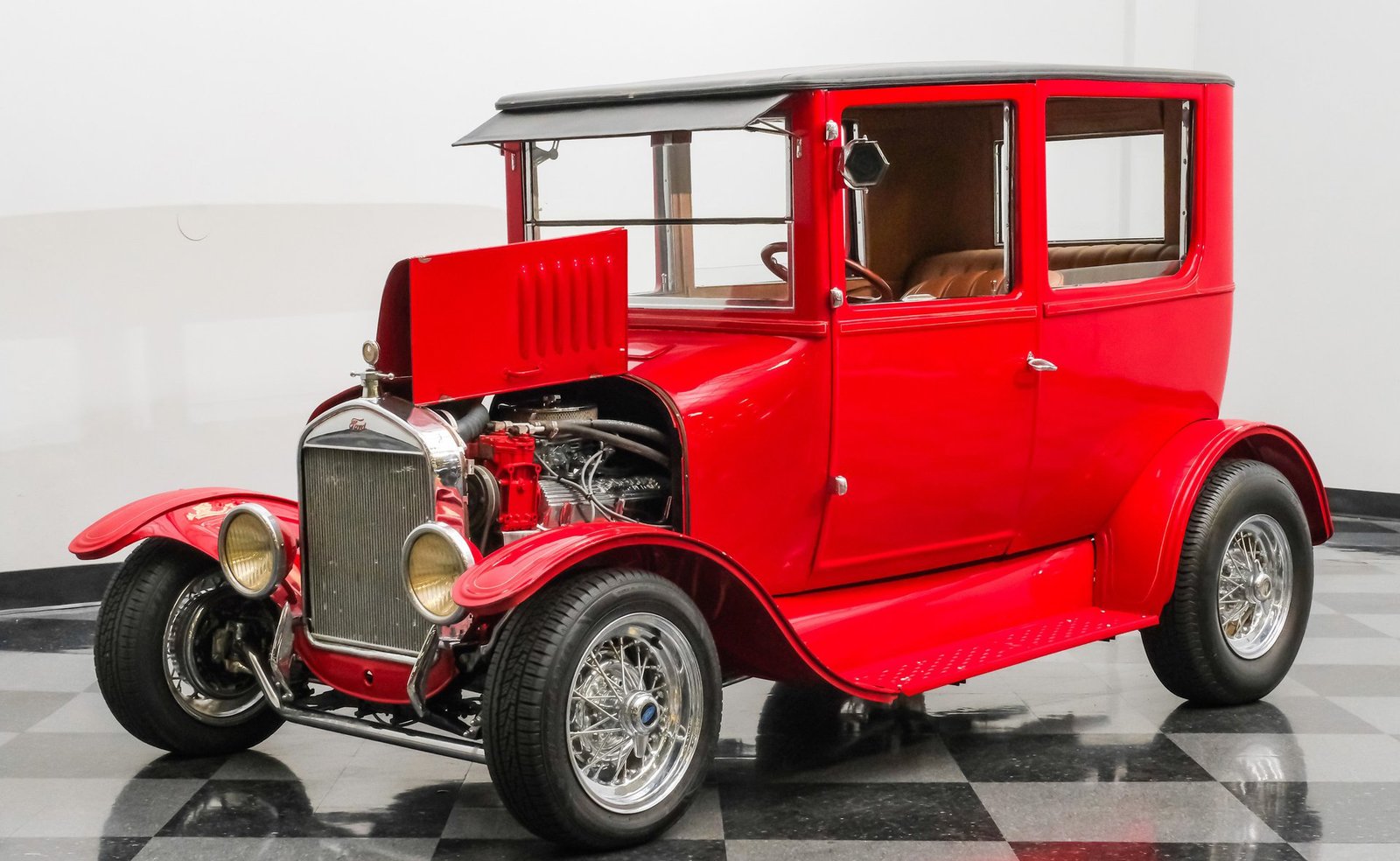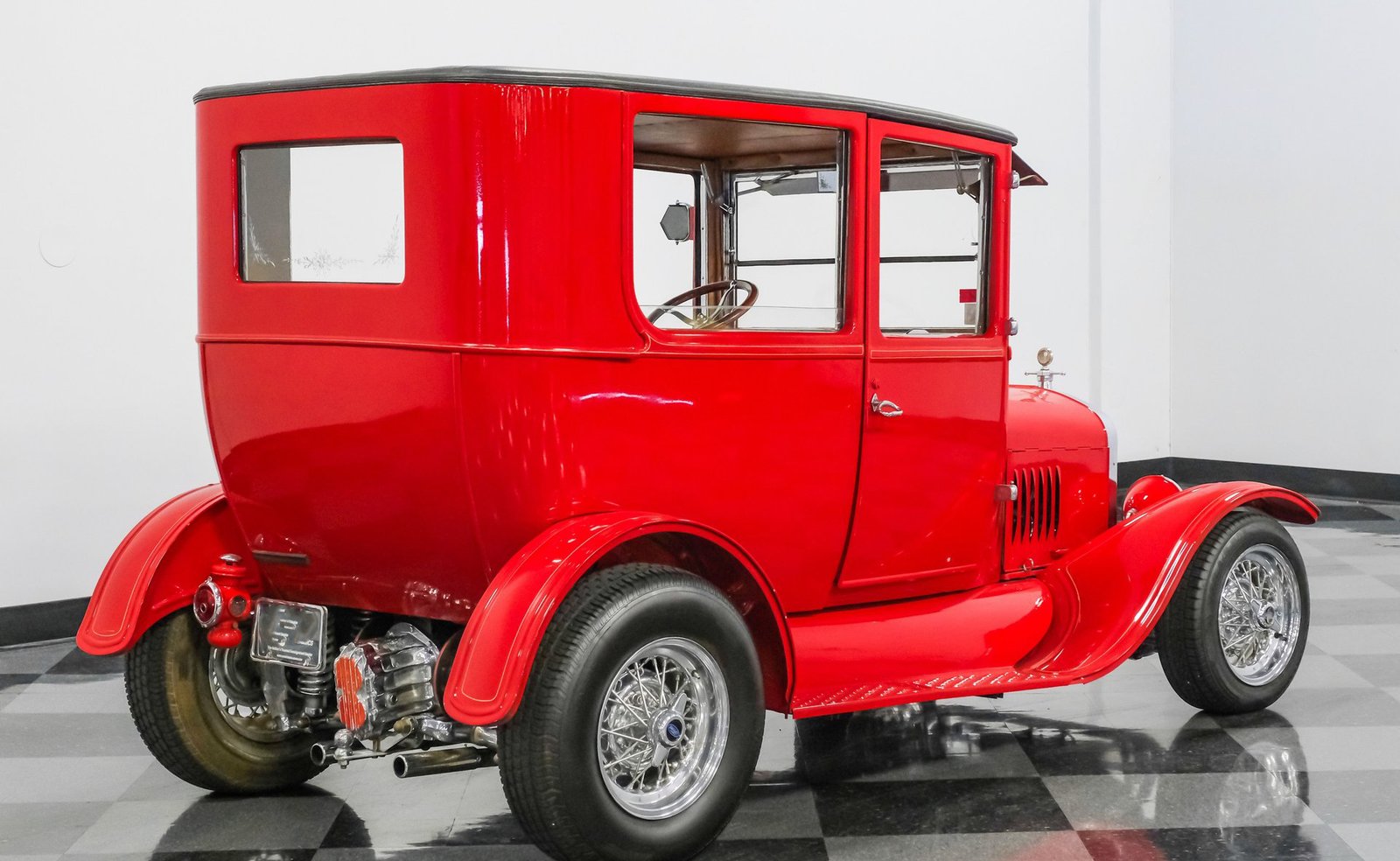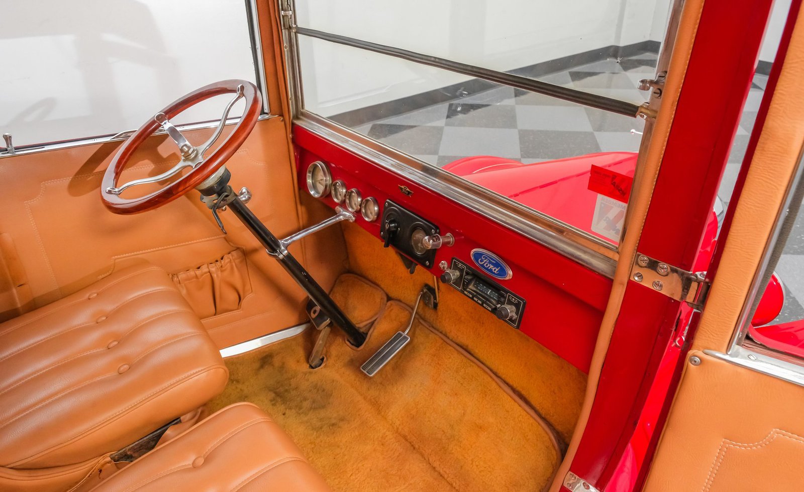 Volte à era de ouro do automobilismo com este Ford Modelo T Sedan Street Rod de 1924, um ícone atemporal modernizado para uma presença marcante nas ruas. Com uma pintura vermelha completa, que se acredita datar da década de 1980, este Modelo T todo em aço — incluindo os estribos — mantém seu caráter autêntico, ao mesmo tempo que impressiona visualmente. A postura rebaixada é cortesia de um chassi TCI, complementado por rodas raiadas clássicas, um para-brisa vertical e para-lamas dianteiros fluidos que se encontram perfeitamente com os traseiros. Entradas de ar laterais acentuam o capô dobrável, enquanto uma grade cromada do radiador adiciona o toque certo de brilho. Com sua silhueta inconfundível e postura imponente, este Modelo T combina estilo vintage com atitude de rua e chama a atenção por onde passa.
