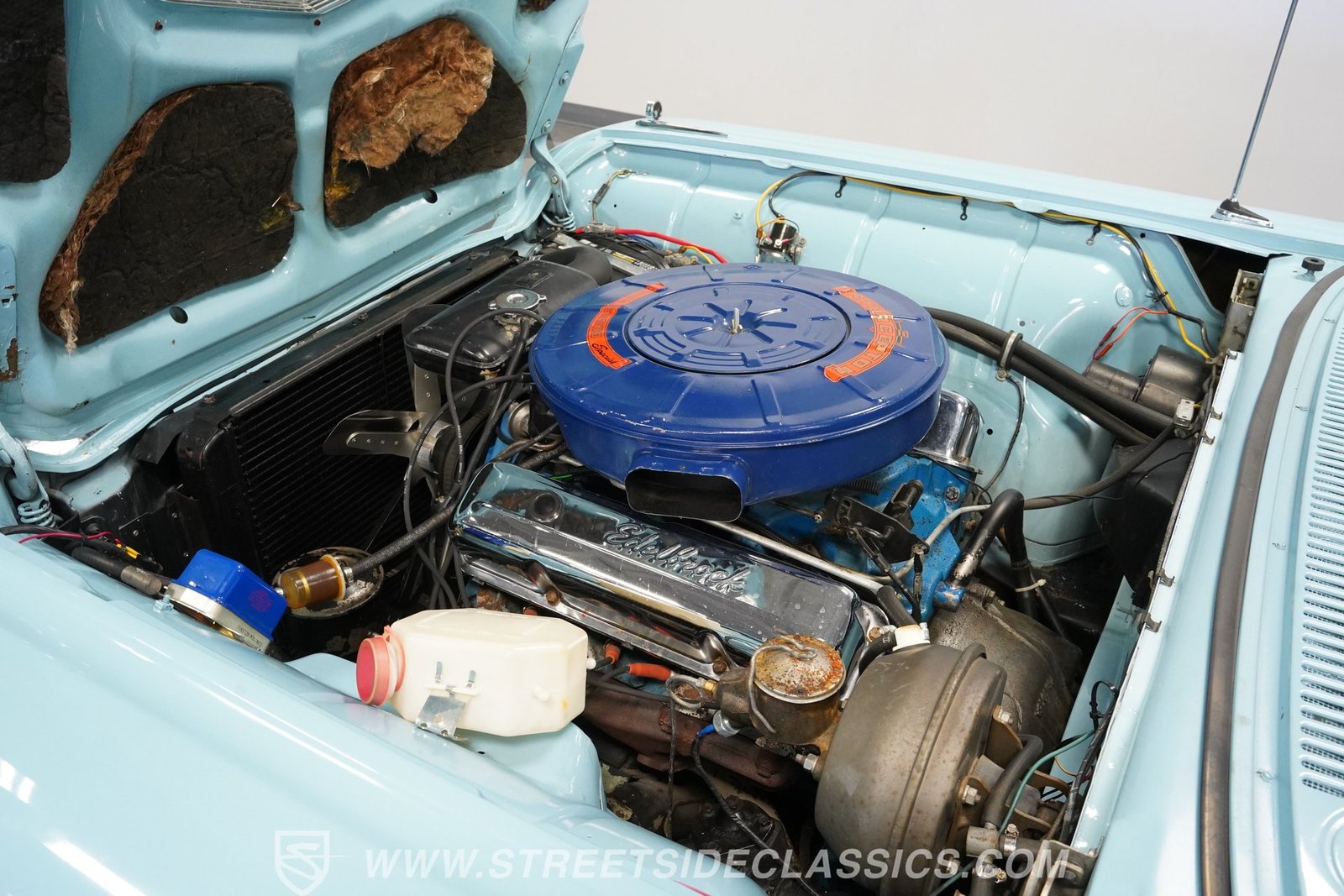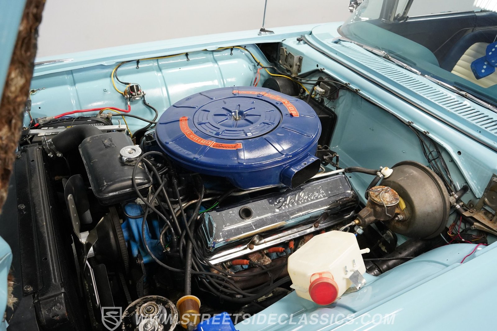 Sob o capô, este clássico T-Bird é impulsionado por um robusto motor V8 de 352 polegadas cúbicas (5,8 litros) acoplado a uma transmissão automática Cruise-O-Matic de 3 velocidades. O motor proporciona aceleração suave e potência consistente, complementada por freios e direção hidráulica para facilitar a condução. O carro mantém a aparência original sob o capô, com carburador Edelbrock AVS2 de 4 corpos e coletores de escape originais. A transmissão conta com um eixo traseiro Ford de 9 polegadas e escapamento duplo com silenciadores esportivos, garantindo um ronco satisfatório e bom desempenho. As suspensões dianteira e traseira originais proporcionam uma sensação de direção clássica, enquanto a parte inferior da carroceria permanece sólida e em boas condições para uso diário.