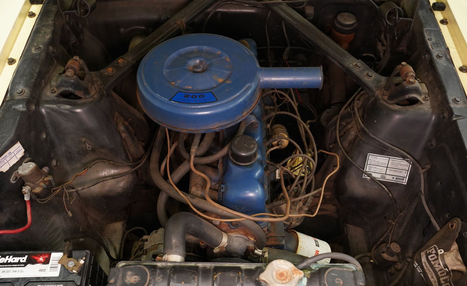 Sob o capô de aço, encontramos um motor de seis cilindros em linha com válvulas no cabeçote e 200 polegadas cúbicas (3,3 litros). Equipado com bloco e cabeçote de ferro fundido, tuchos hidráulicos e carburador de corpo simples, este motor foi projetado para ser eficiente e confiável, produzindo 120 cavalos de potência e 258 Nm de torque. A potência é transmitida por uma transmissão automática C4 de três velocidades antes de chegar ao eixo traseiro rígido.