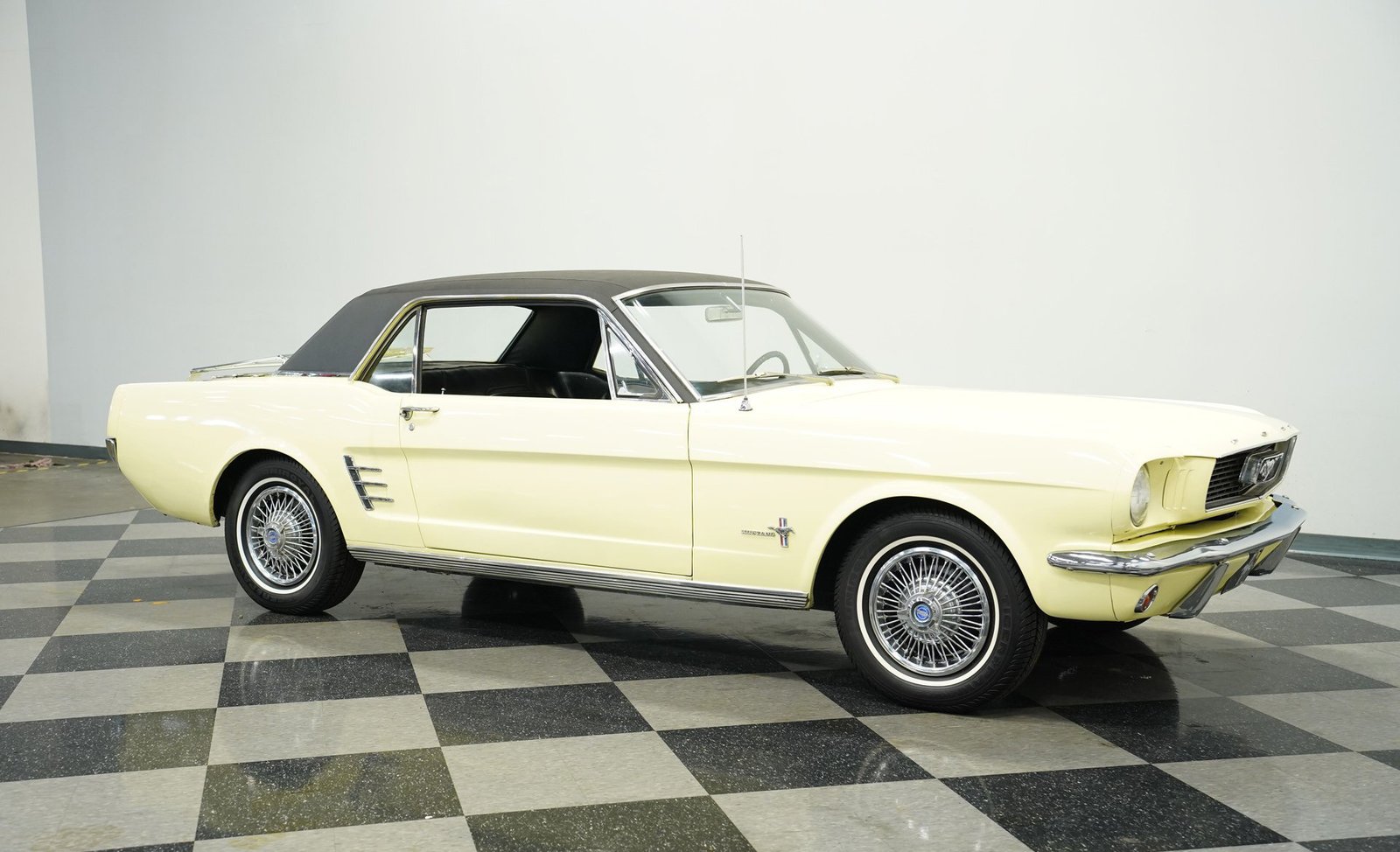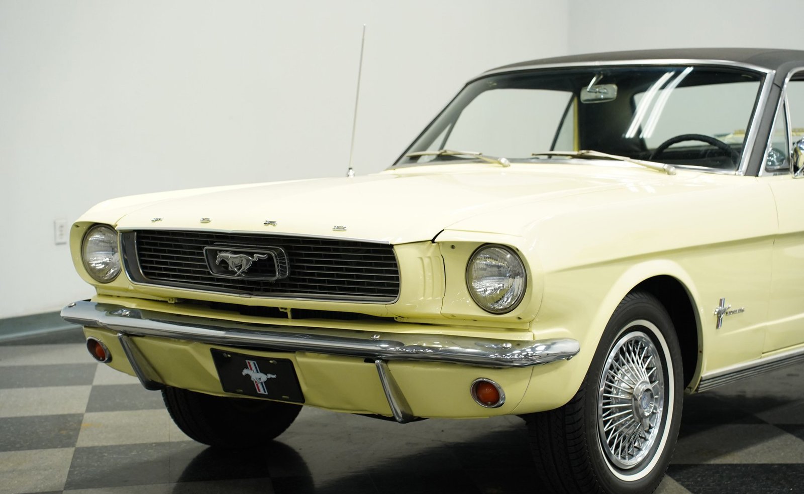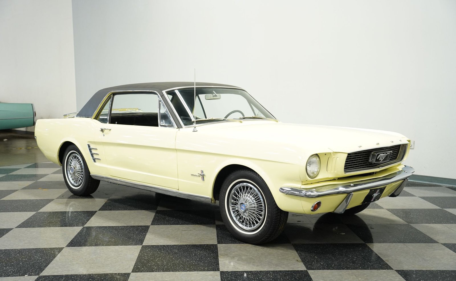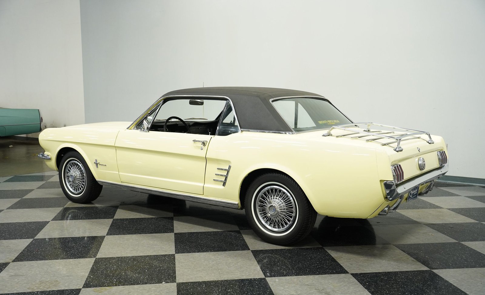 Sem dúvida, dirigir um Mustang de primeira geração pela estrada pode ser uma das melhores coisas que a vida tem a oferecer. Este Ford Mustang de 1966 foi totalmente repintado em amarelo vibrante, com capota rígida preta, exibindo suas linhas retas e postura agressiva de uma forma elegante e sofisticada de todos os ângulos.