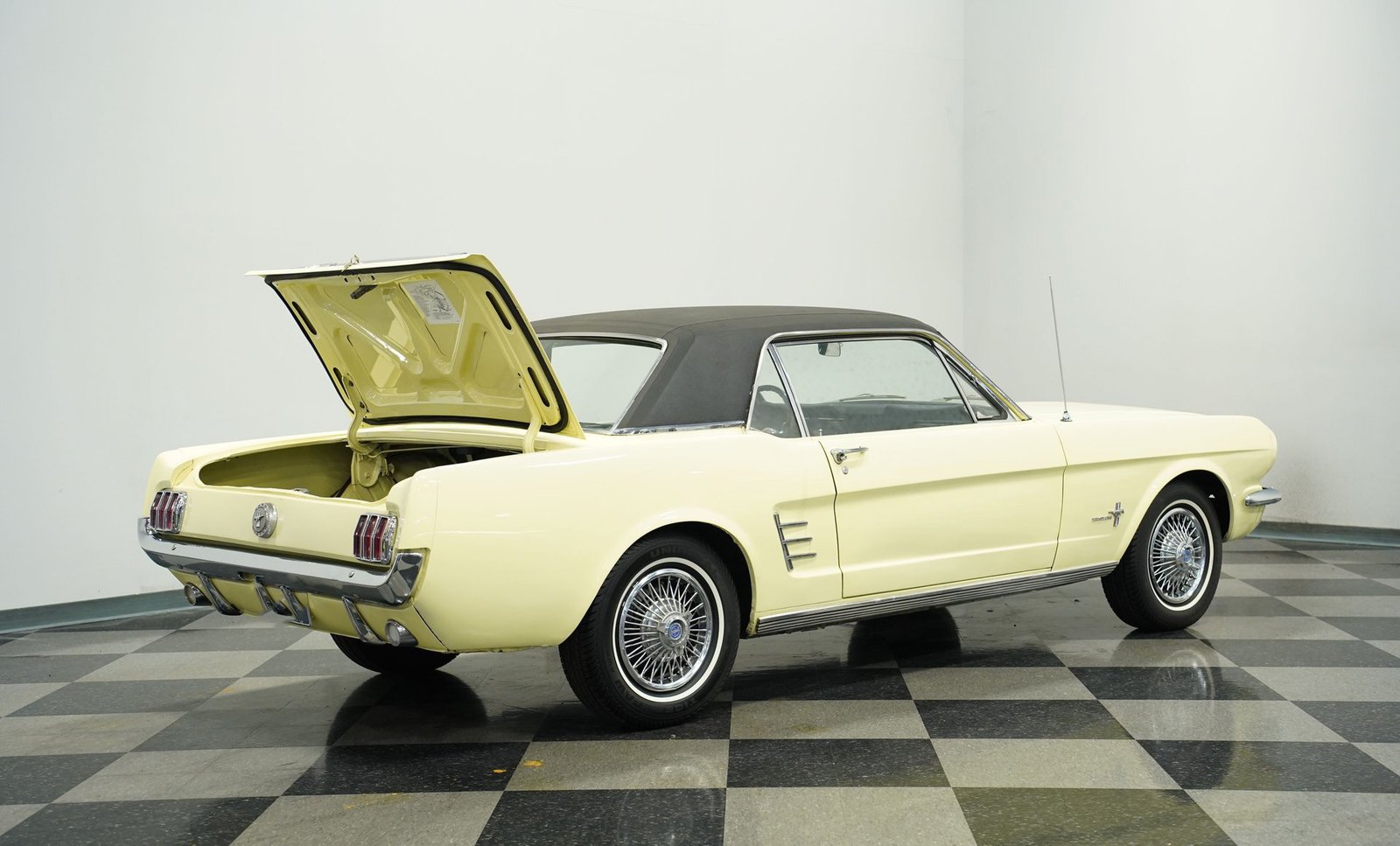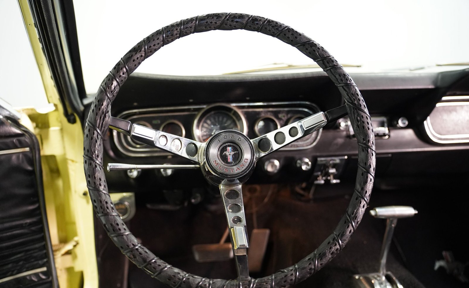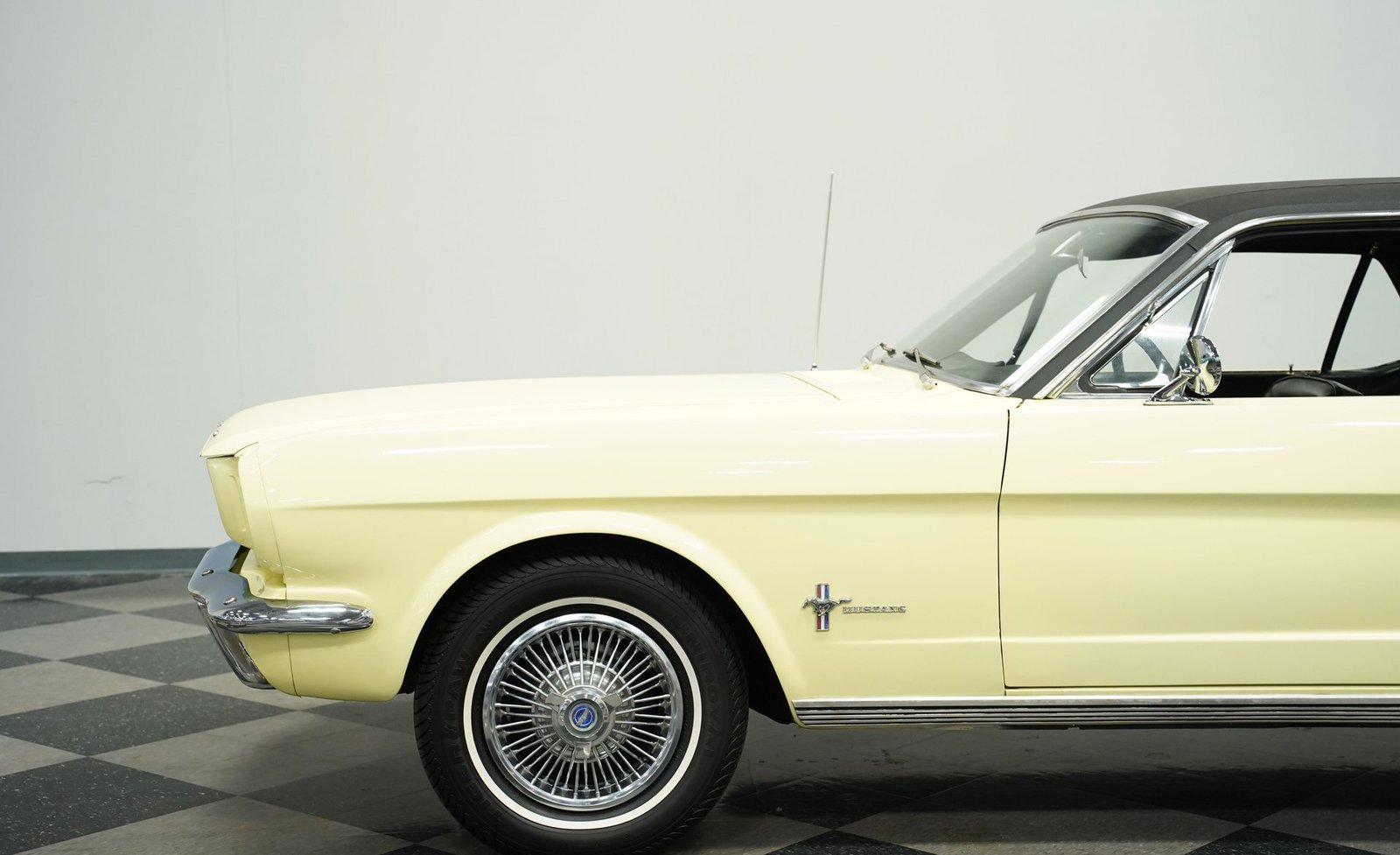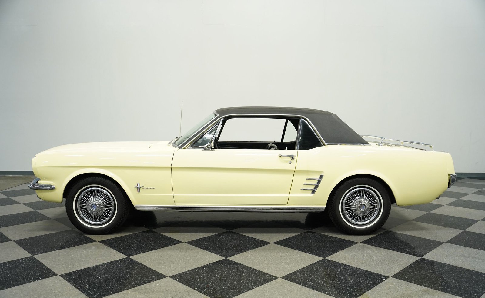 Sem dúvida, dirigir um Mustang de primeira geração pela estrada pode ser uma das melhores coisas que a vida tem a oferecer. Este Ford Mustang de 1966 foi totalmente repintado em amarelo vibrante, com capota rígida preta, exibindo suas linhas retas e postura agressiva de uma forma elegante e sofisticada de todos os ângulos.