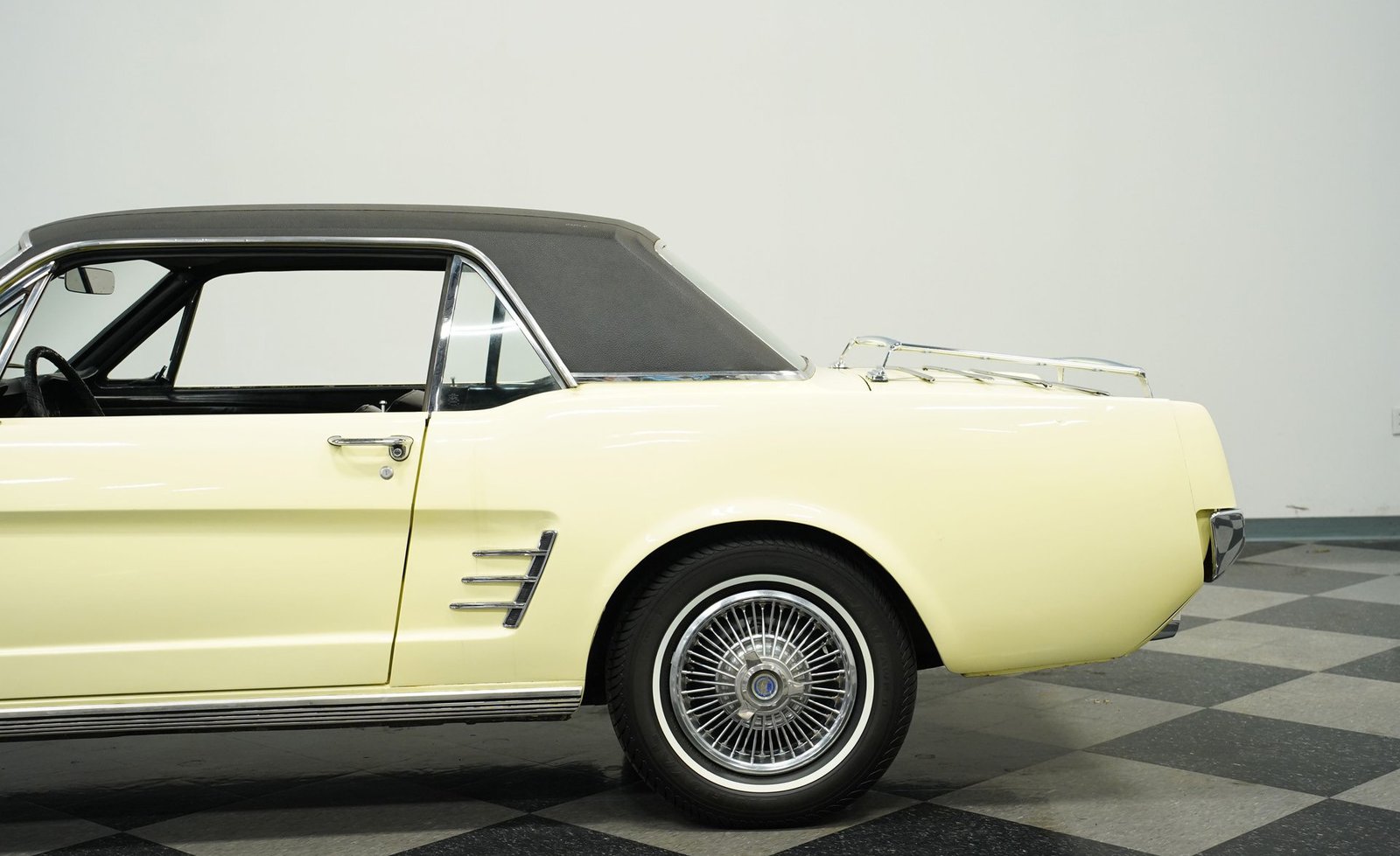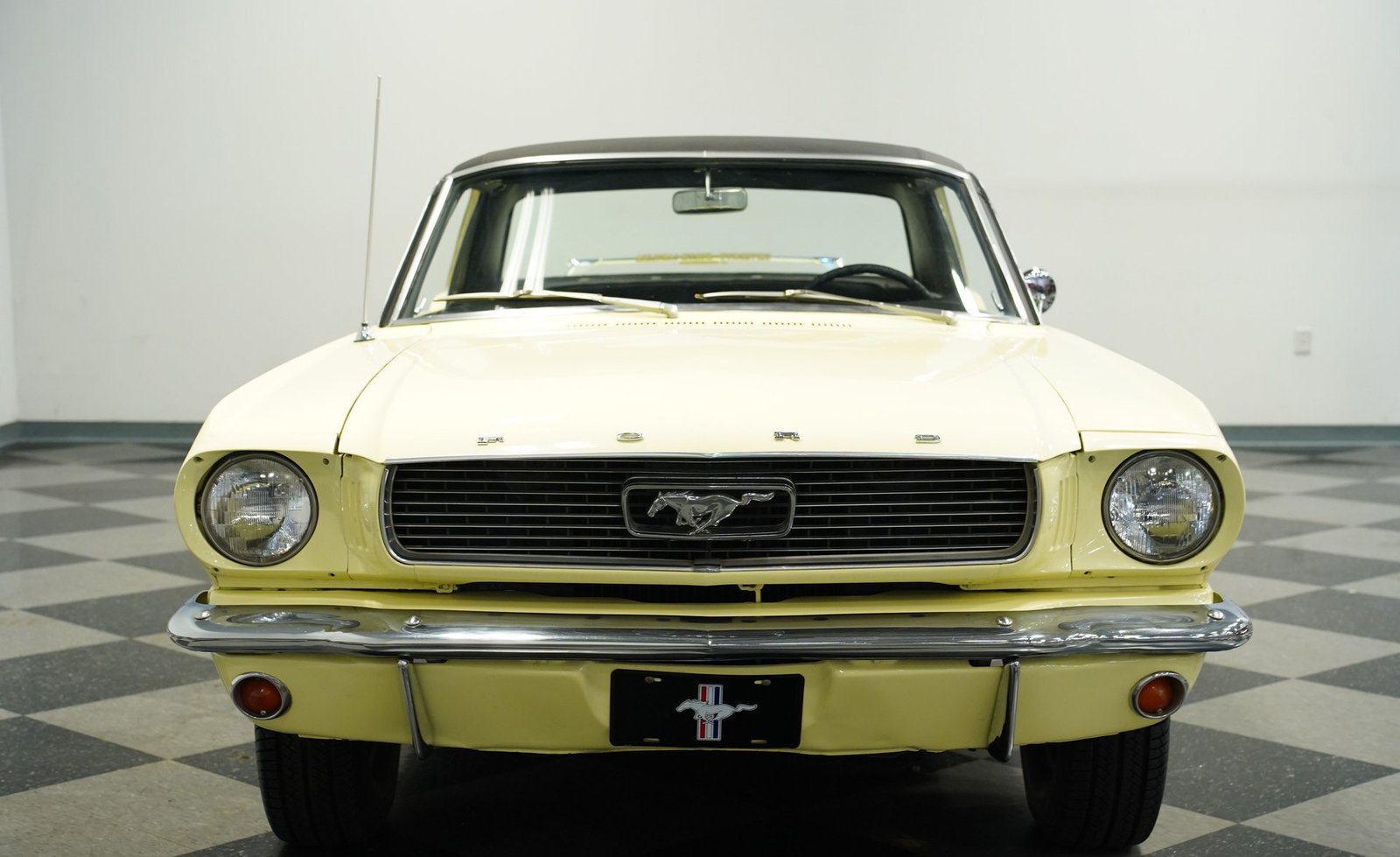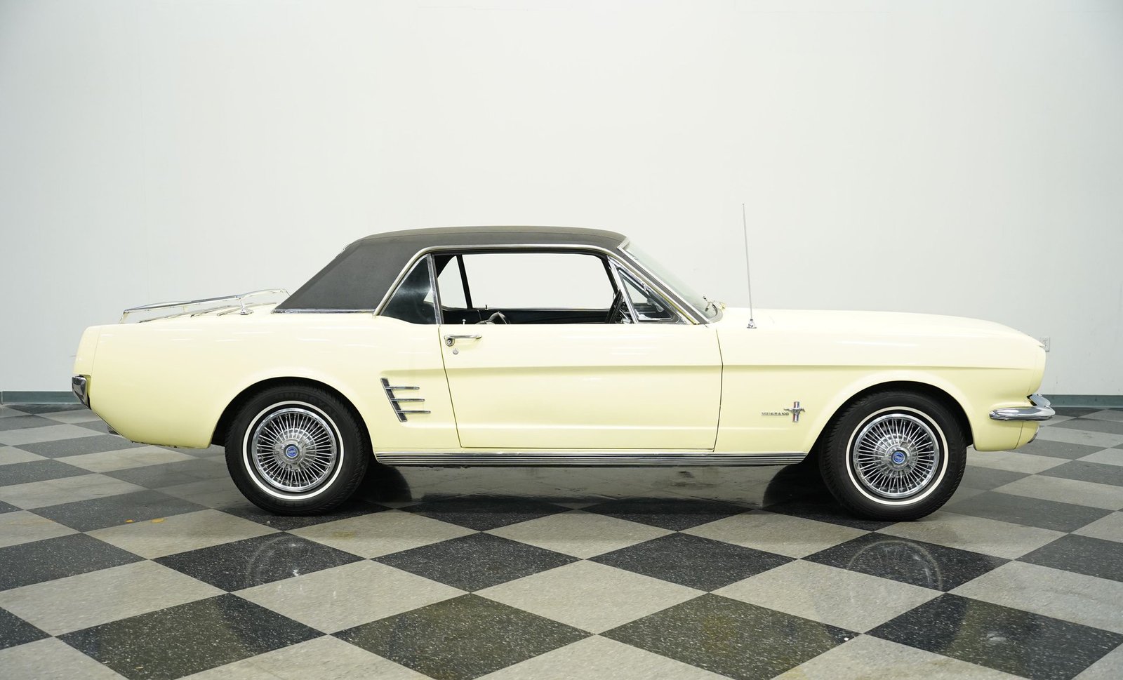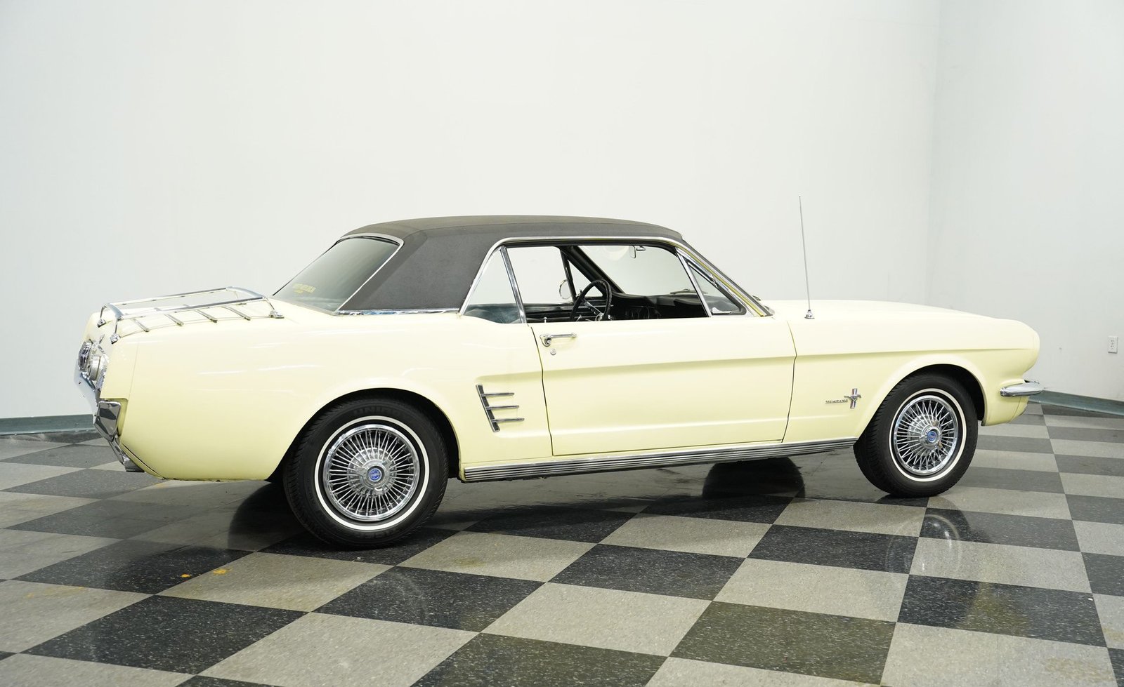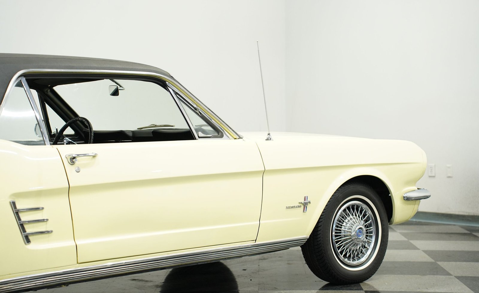 Sem dúvida, dirigir um Mustang de primeira geração pela estrada pode ser uma das melhores coisas que a vida tem a oferecer. Este Ford Mustang de 1966 foi totalmente repintado em amarelo vibrante, com capota rígida preta, exibindo suas linhas retas e postura agressiva de uma forma elegante e sofisticada de todos os ângulos.