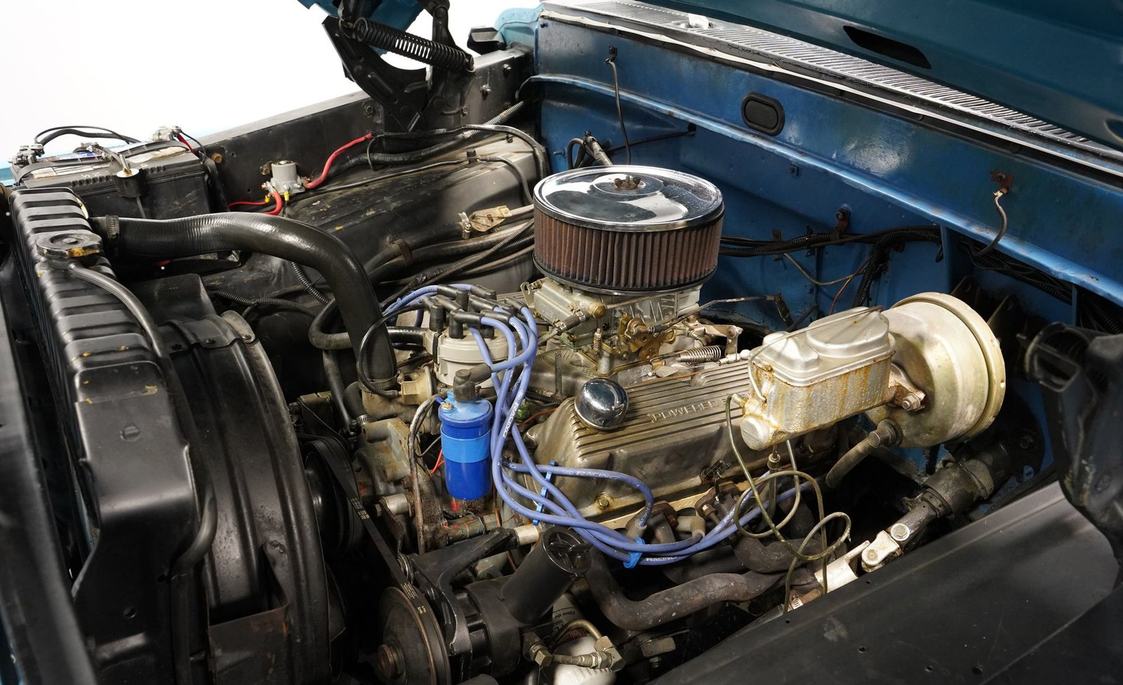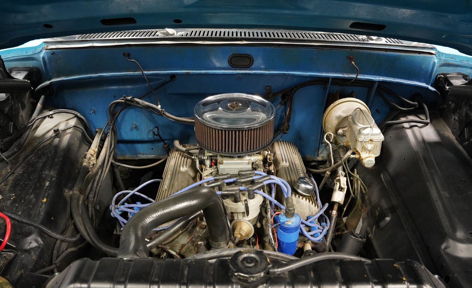 Sob o capô, encontramos um motor V8 de 302 polegadas cúbicas (4,9 litros) de modelo recente. Alimentado por um carburador Holley de corpo quádruplo, os gases de escape são expelidos por um sistema de escapamento duplo. A potência é transmitida por uma transmissão automática AOD de quatro velocidades com alavanca no assoalho, antes de ser enviada para o diferencial traseiro Ford de 8,8 polegadas, que transfere essa potência para o asfalto através de rodas de 16 polegadas com dez raios, calçadas com pneus Continental.