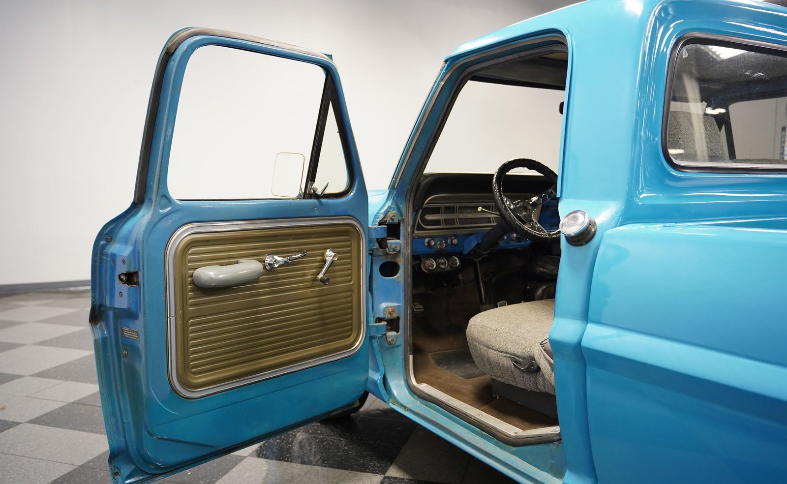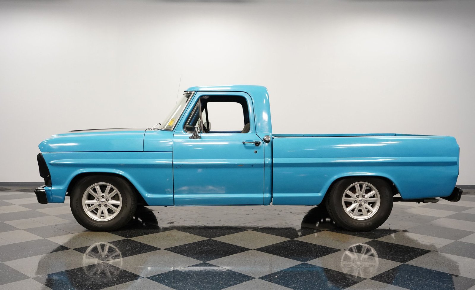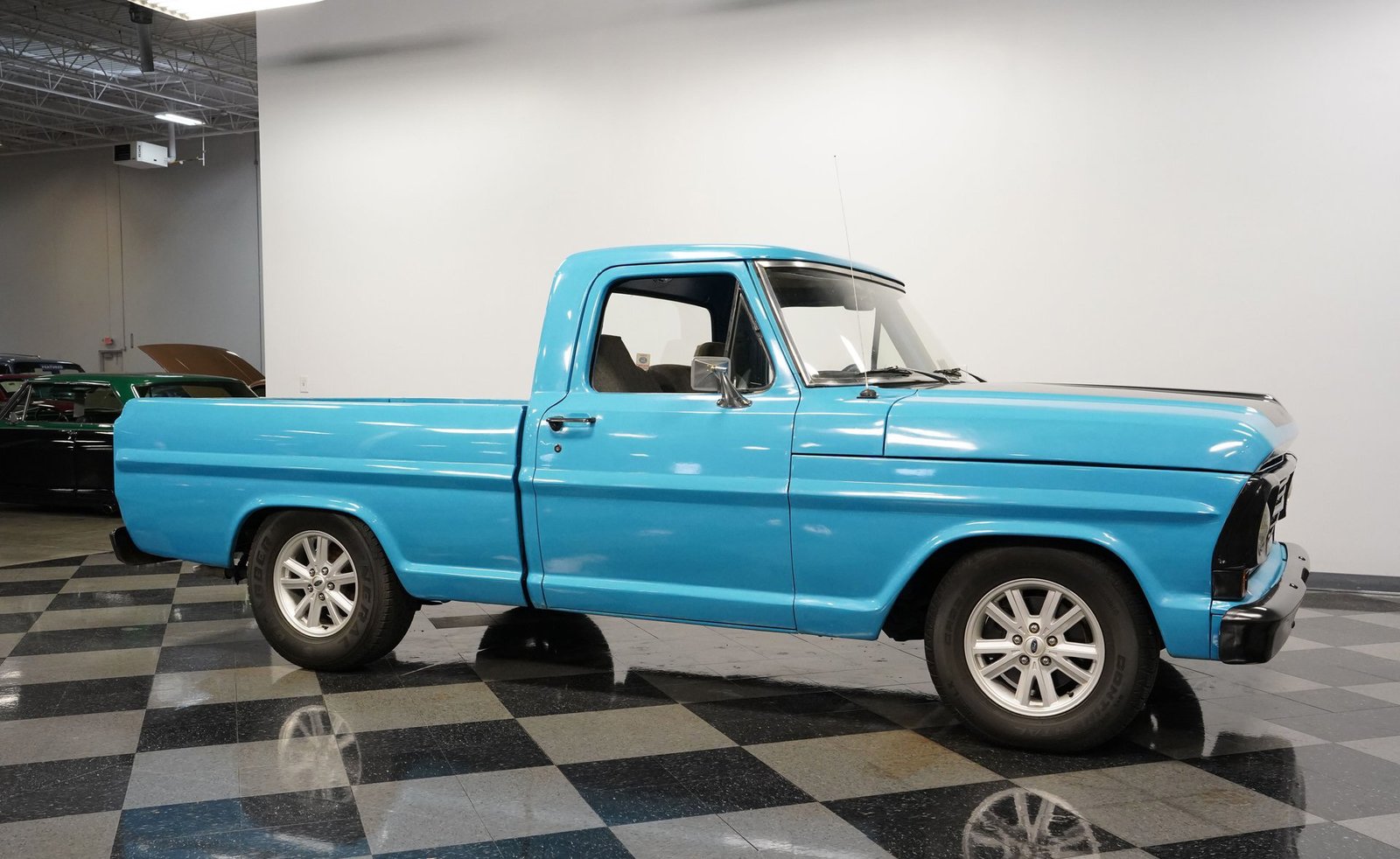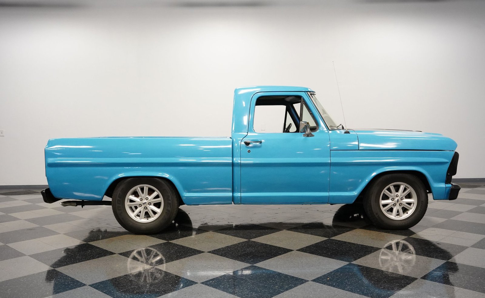 Há algo de especial em uma caminhonete clássica que foi modificada e modernizada com cuidado. Seja um grande sorriso ou uma onda de boas lembranças, um olhar para uma caminhonete como esta Ford F-100 de 1967 ao vivo certamente provocará uma reação. Totalmente repintada em um belíssimo tom de azul Grabber, complementada por capô, grade e detalhes em preto, esta caminhonete restaurada e modificada apresenta suspensão rebaixada e um moderno motor V8 small-block, tudo isso em um veículo utilitário de caçamba curta com estilo retrô.
