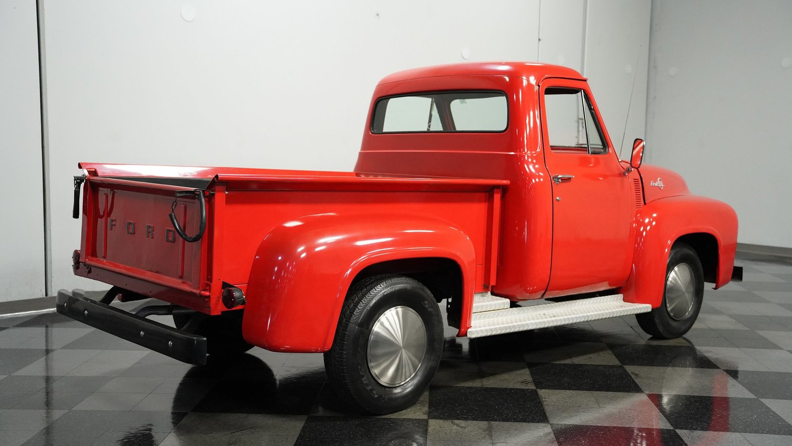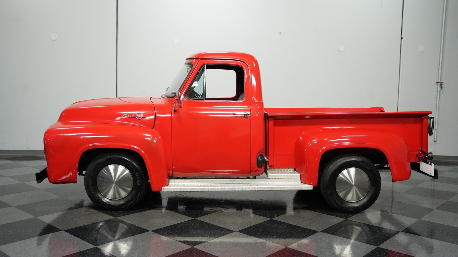 Construída durante o ano do jubileu de ouro da Ford, esta Ford F-100 de 1953 carrega o legado dos cavalos de batalha americanos com uma garra inegável. Trabalhadora e prática, esta F-100 ostenta sua pintura vermelha com orgulho, destacando os para-lamas curvos e a grade frontal distinta que definiram as picapes Ford do início dos anos 50. O perfil é o de uma picape clássica dos anos 50 – robusta, proposital e construída para durar. As calotas Moon Disc de 15″ adicionam um toque personalizado que complementa o visual geral, enquanto os pneus 235/75R15 fornecem uma base sólida. O piso de madeira envelhecida da caçamba conta histórias de trabalho honesto e artesanato americano que definiram uma era.