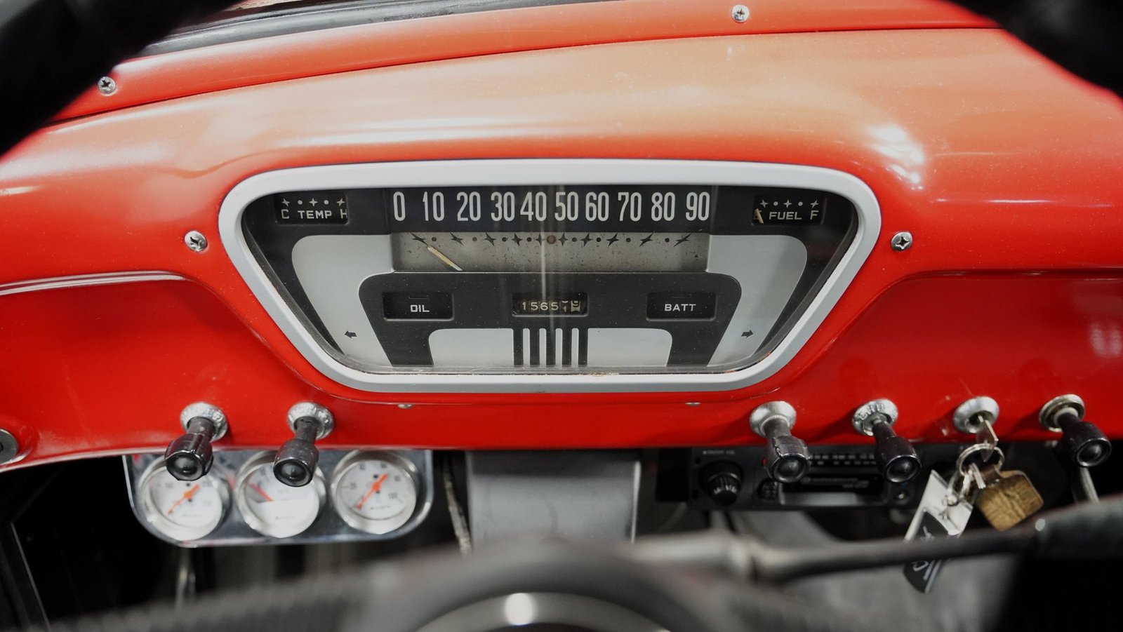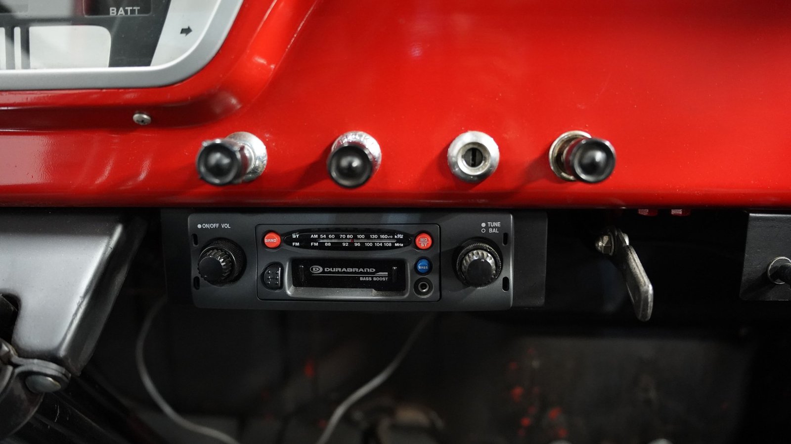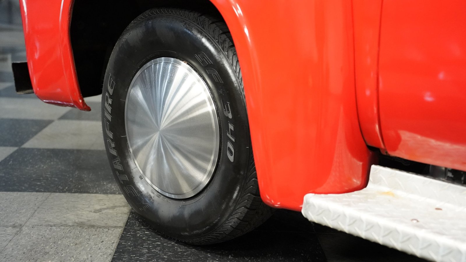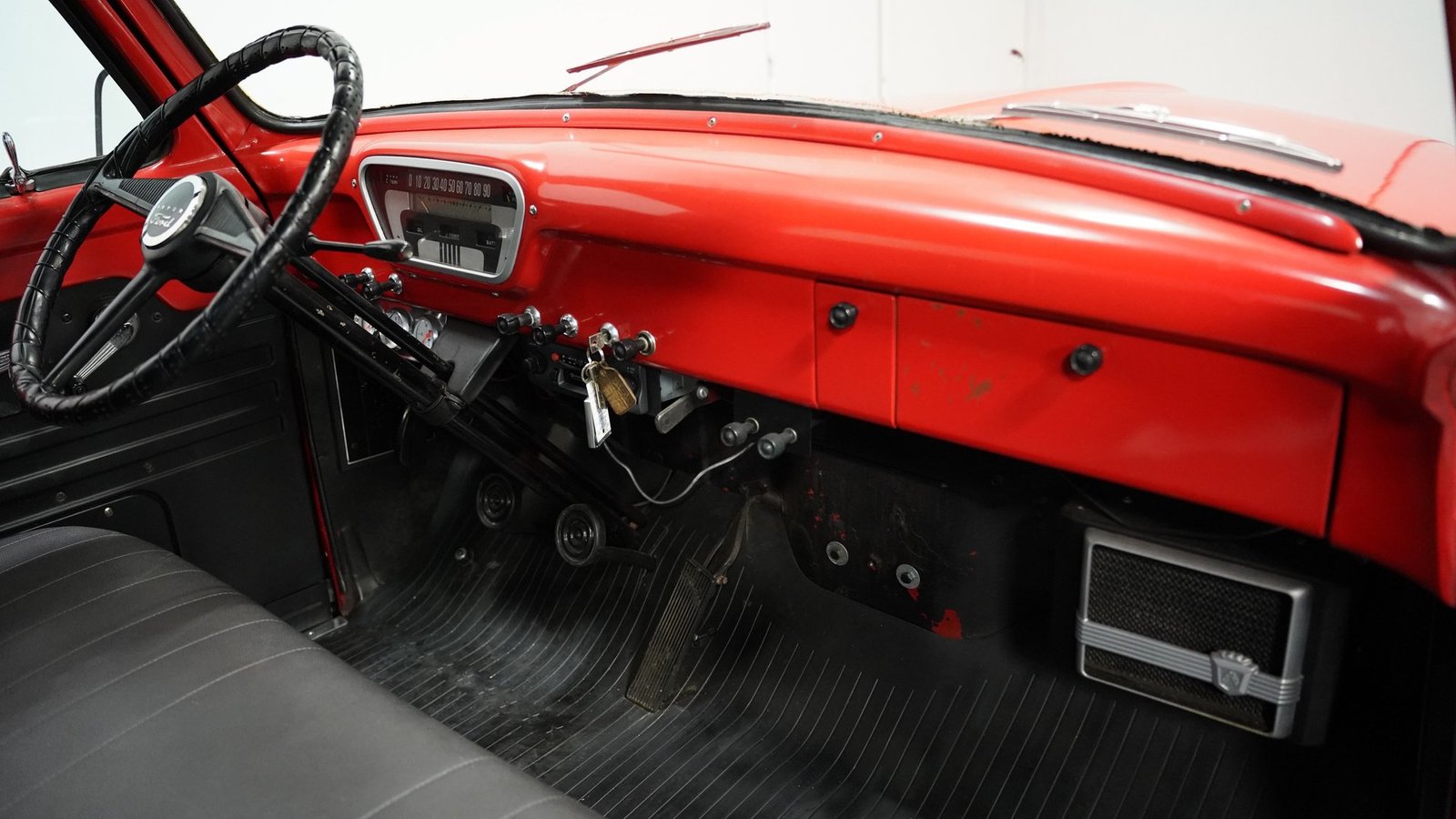 No interior, o interior em vinil preto e vermelho remete às raízes operárias da picape. O banco corrido oferece conforto simples, sem enfeites desnecessários, combinando perfeitamente com a atitude trabalhadora da picape. Um painel de instrumentos com 3 mostradores, montado sob o painel, fornece as informações vitais que qualquer motorista precisa, enquanto a alavanca de câmbio na coluna coloca todo o controle na ponta dos seus dedos. Nada de eletrônicos ou gadgets em excesso aqui – apenas uma cabine honesta que permite que você sinta como era dirigir quando os homens construíam coisas para durar e as caminhonetes eram ferramentas, não brinquedos. O aparelho de som AM/FM cassete oferece a única concessão moderna.