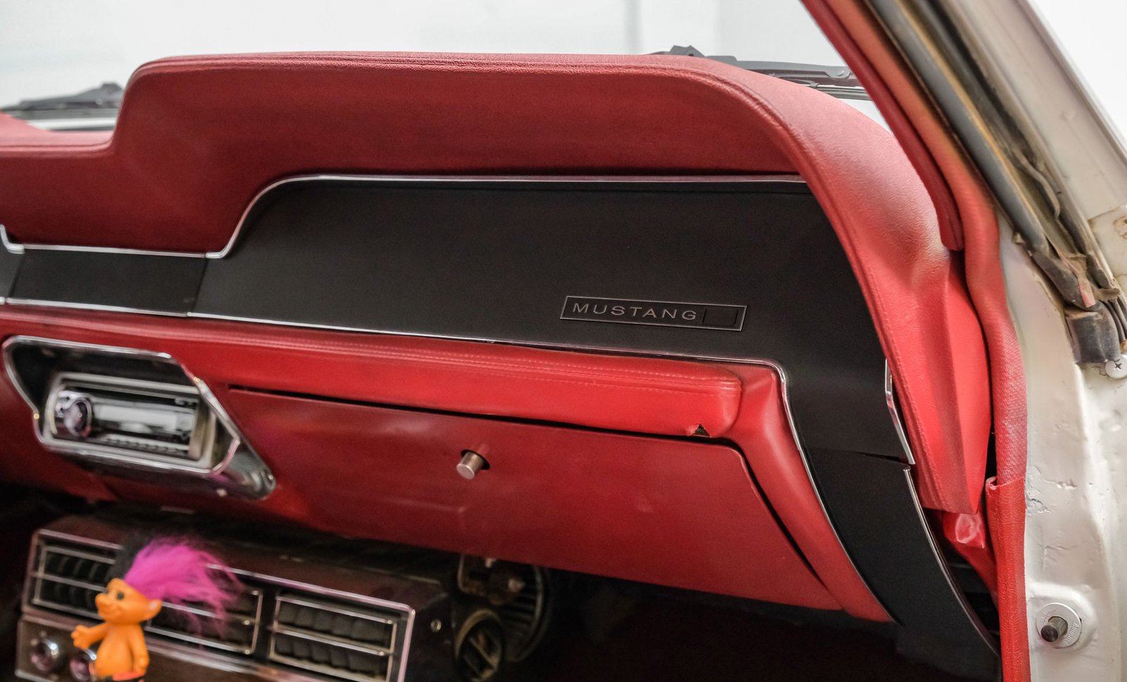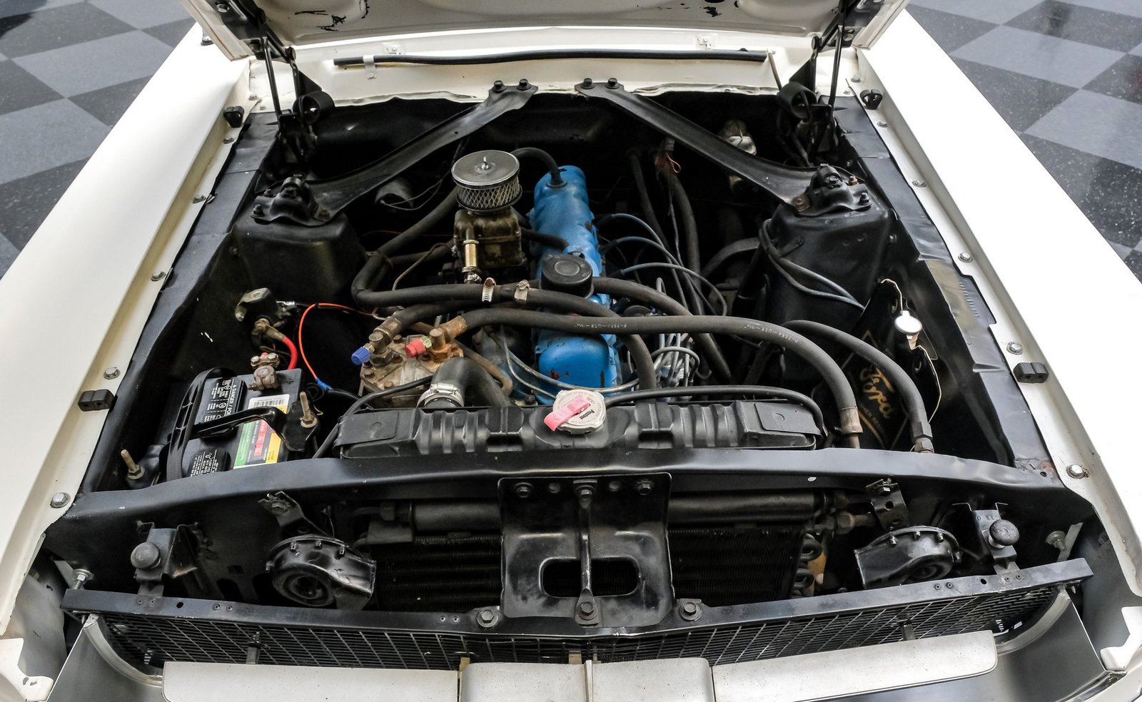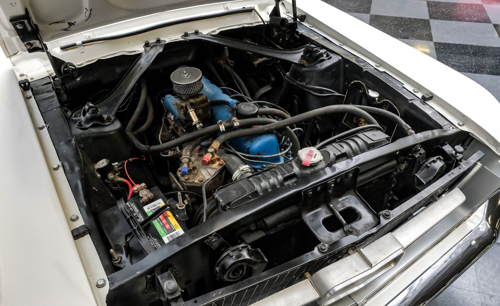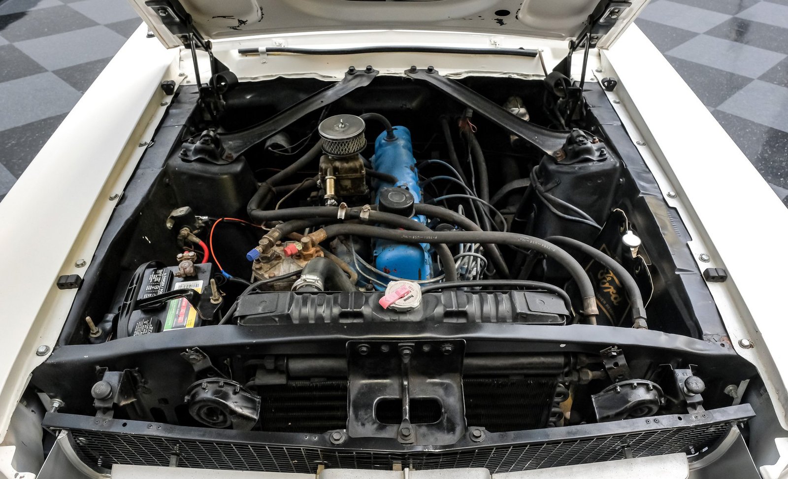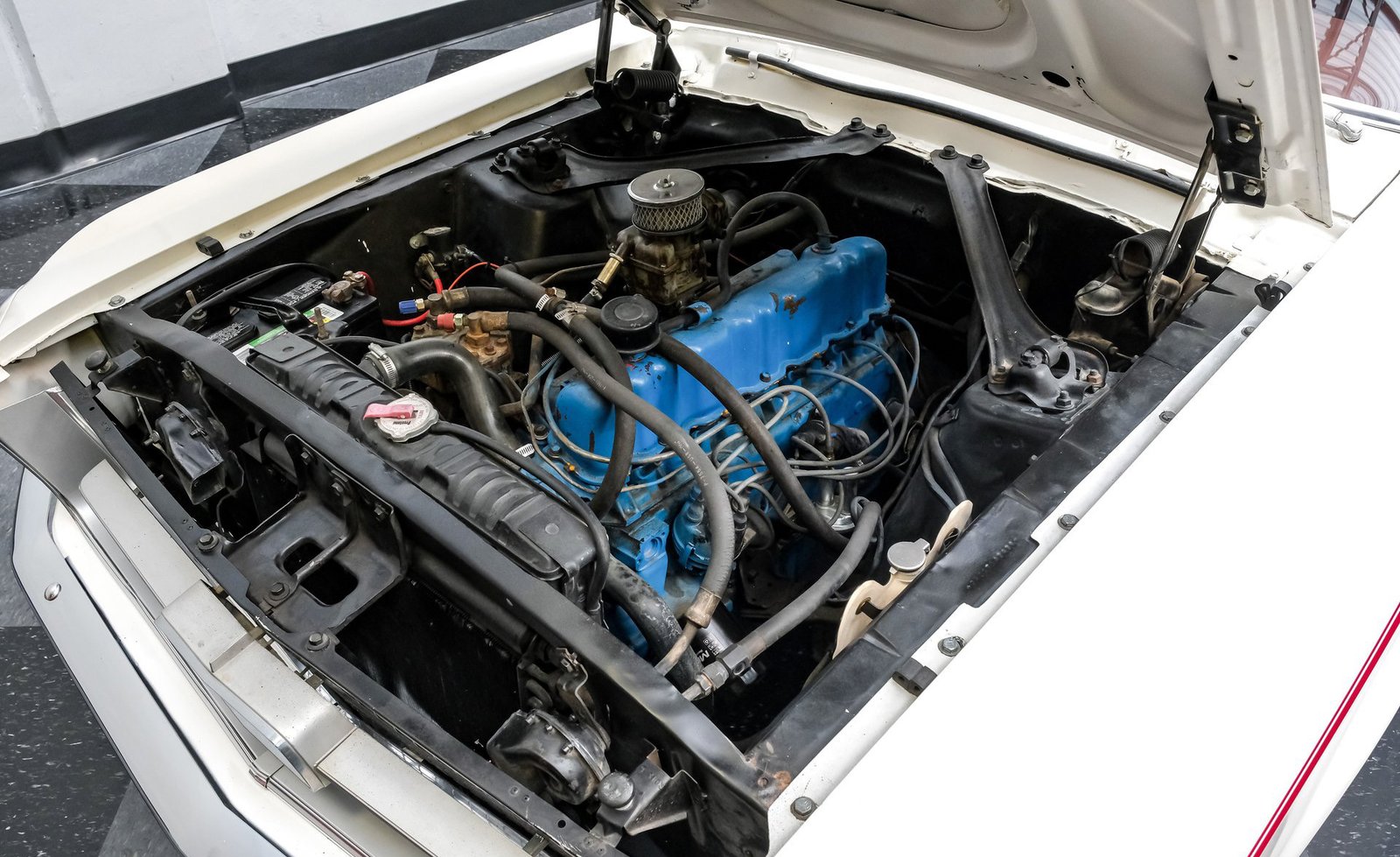 Sob o capô, você encontrará um motor T-Code de 200 polegadas cúbicas (3,3 litros) de 6 cilindros em linha, com carburador de corpo simples e coletores de admissão e escape originais de fábrica. O compartimento do motor mantém a aparência original, aprimorada por um compressor de ar condicionado adaptado para R134-A. Combinado com uma transmissão manual de 3 velocidades, este Mustang oferece uma experiência de direção envolvente e autêntica. O carro possui suspensão original de fábrica, proporcionando uma condução suave e segura.