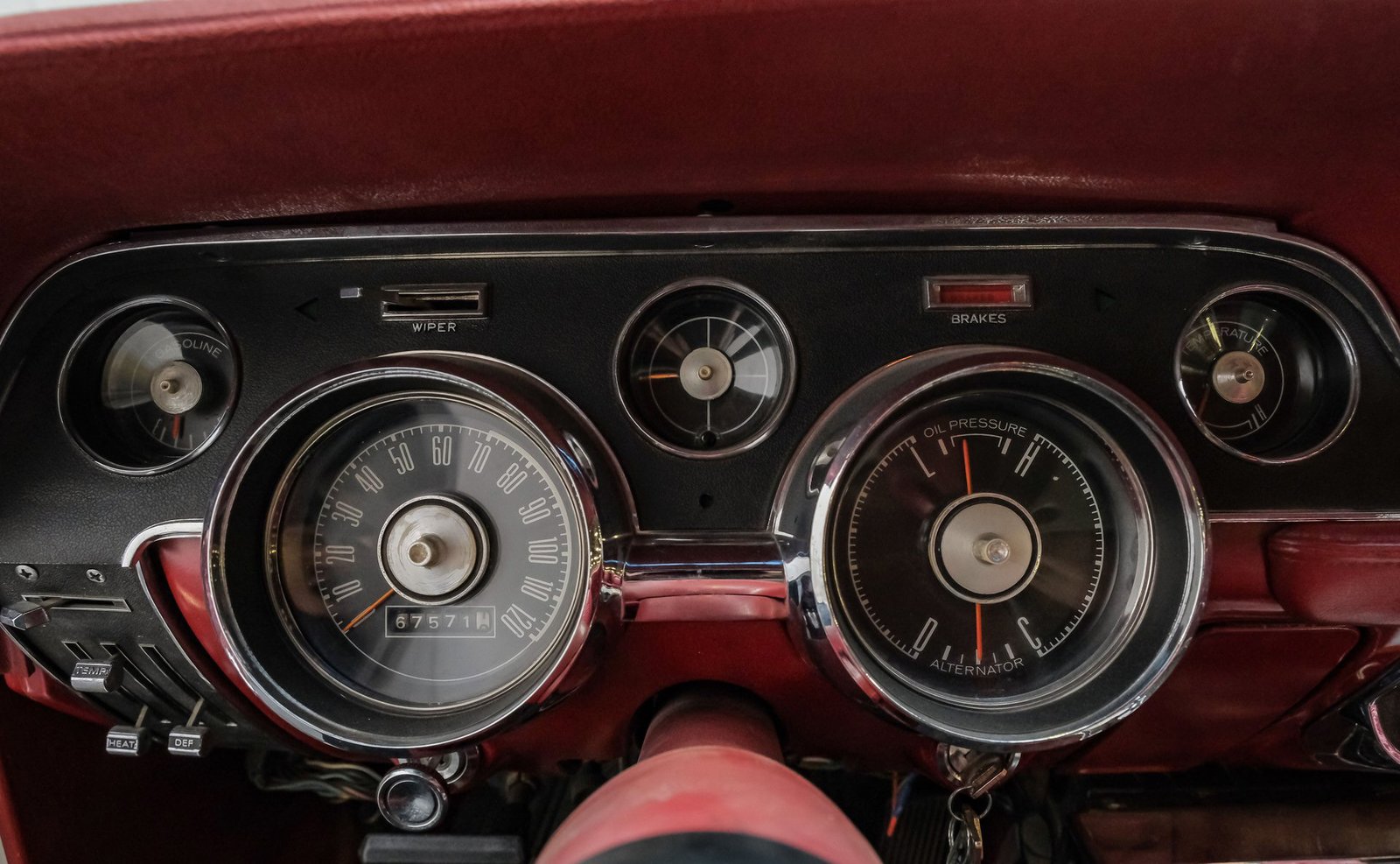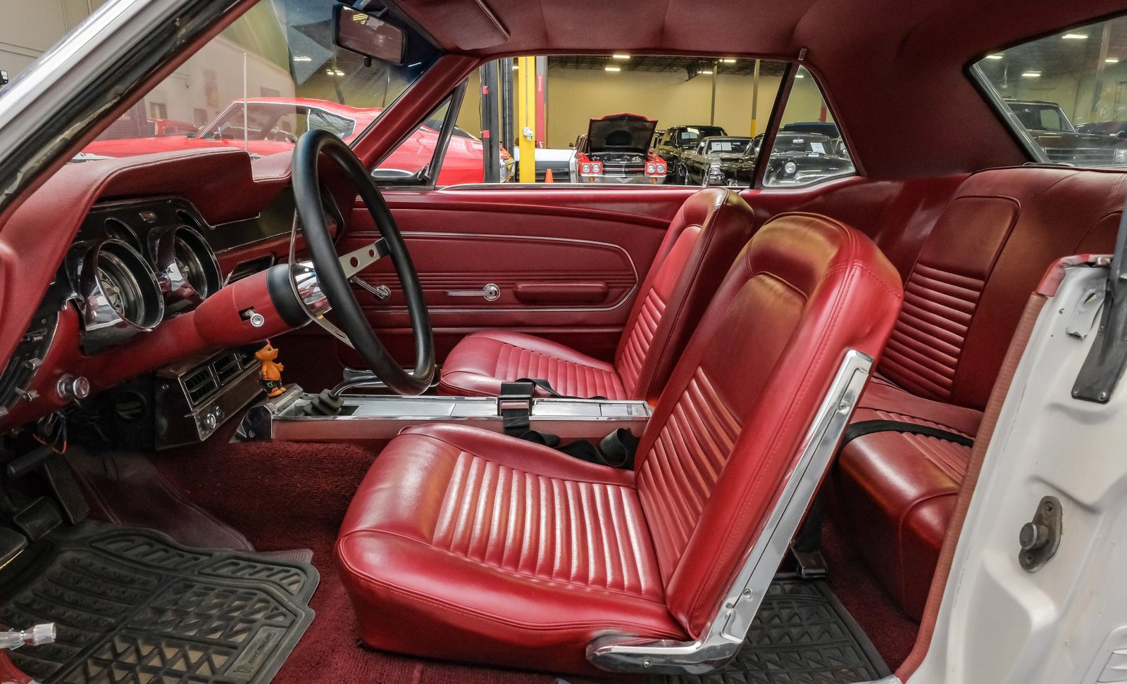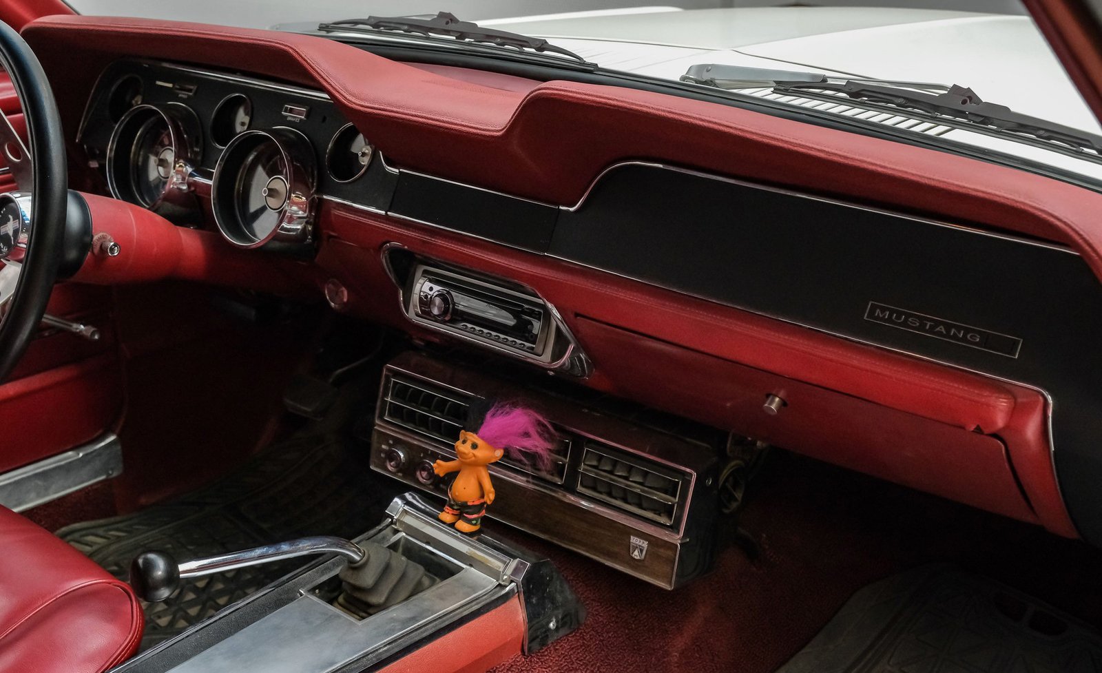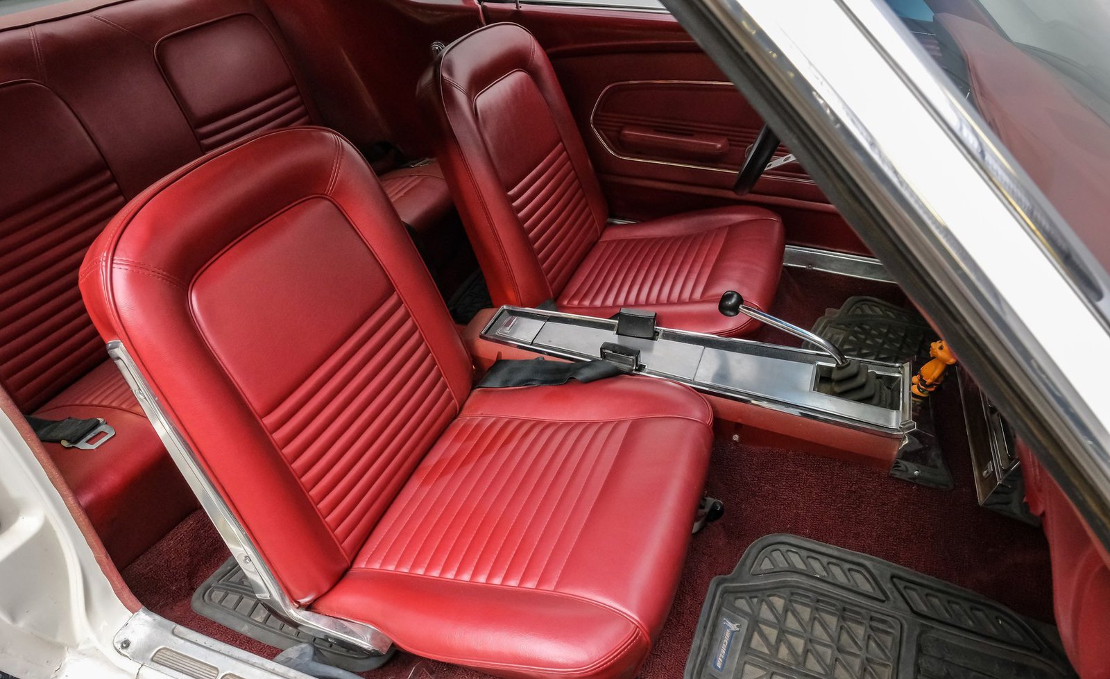 Sob o capô, você encontrará um motor T-Code de 200 polegadas cúbicas (3,3 litros) de 6 cilindros em linha, com carburador de corpo simples e coletores de admissão e escape originais de fábrica. O compartimento do motor mantém a aparência original, aprimorada por um compressor de ar condicionado adaptado para R134-A. Combinado com uma transmissão manual de 3 velocidades, este Mustang oferece uma experiência de direção envolvente e autêntica. O carro possui suspensão original de fábrica, proporcionando uma condução suave e segura.