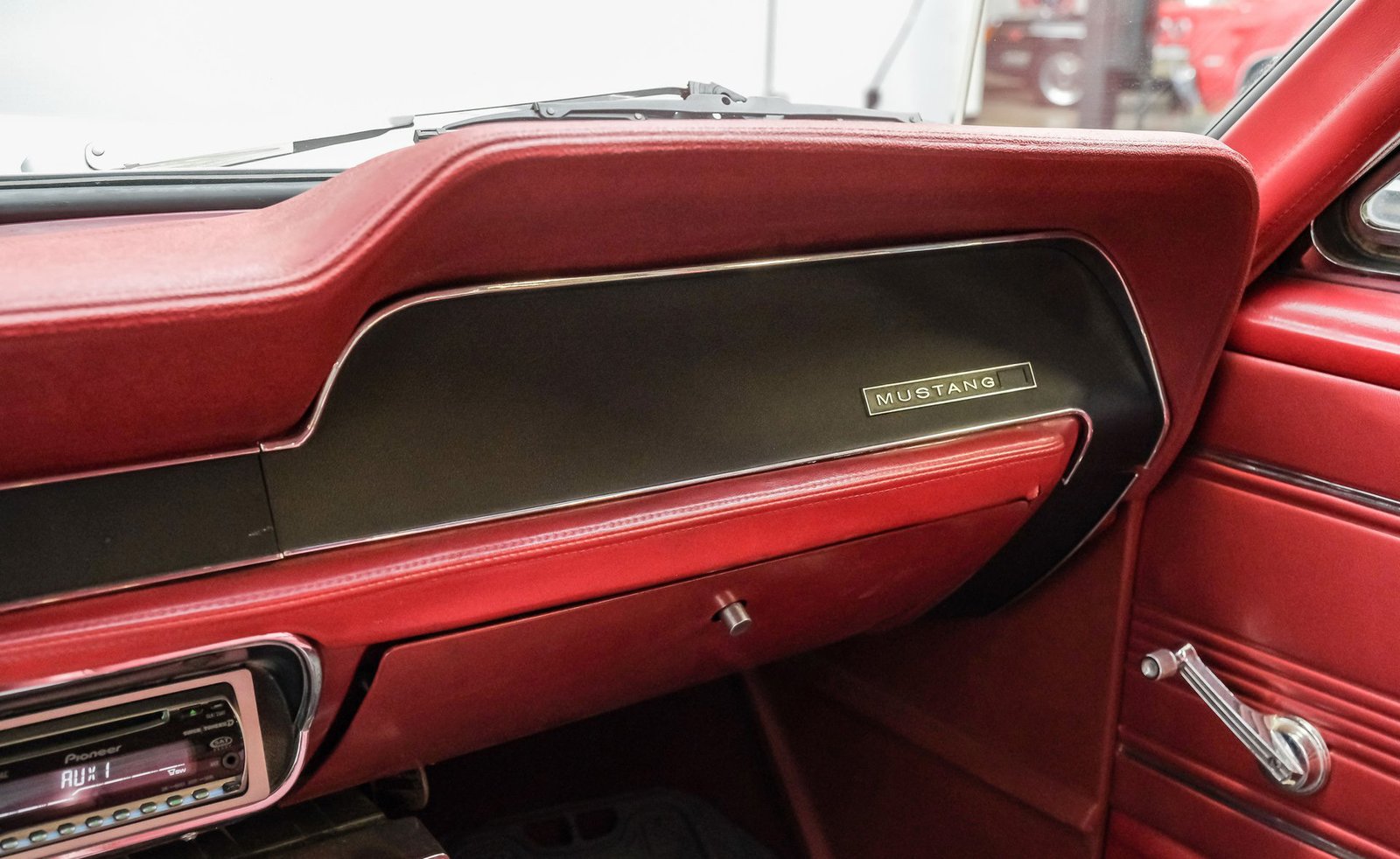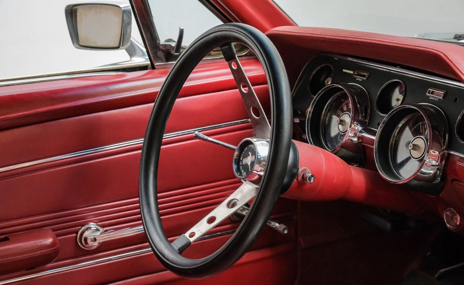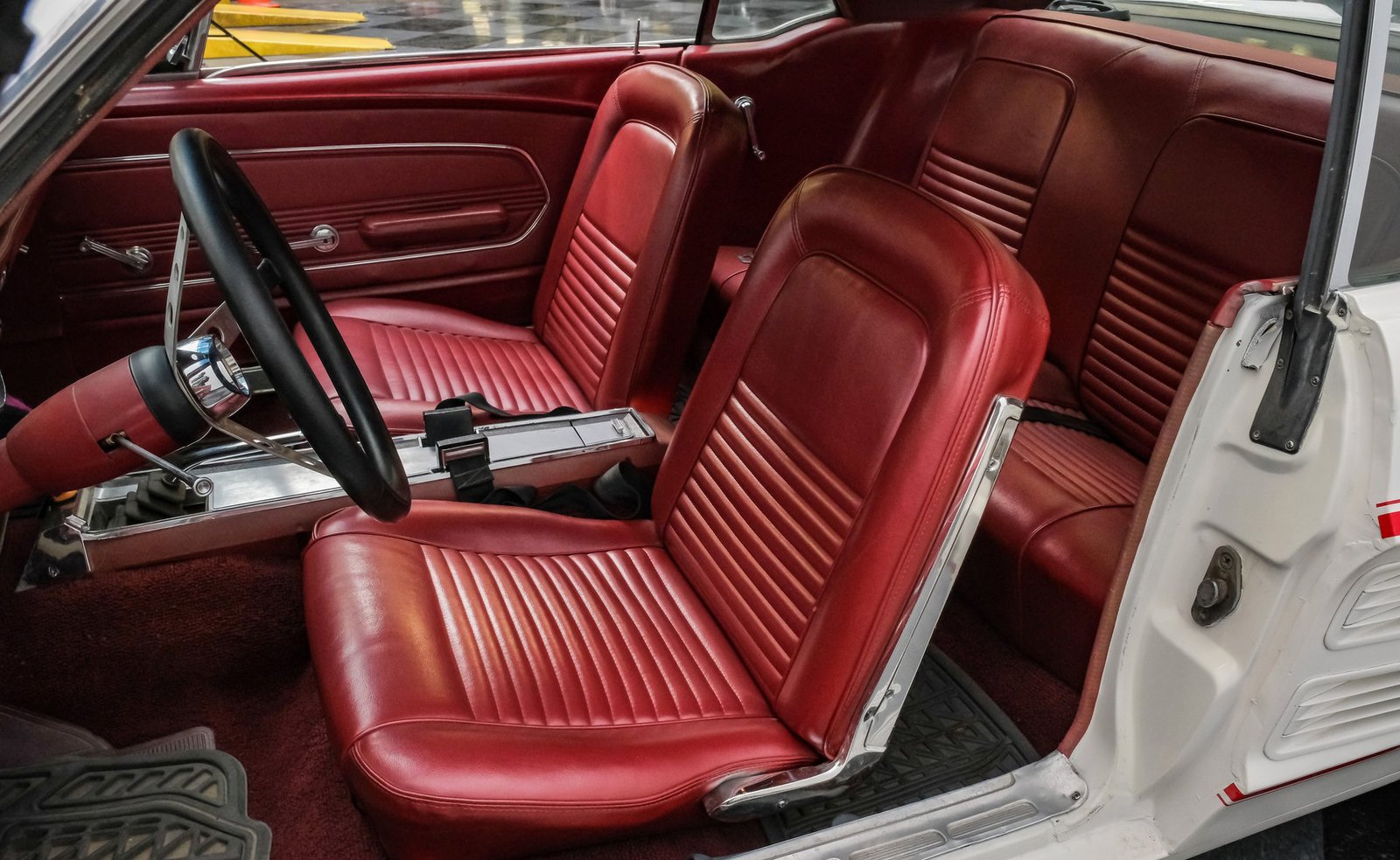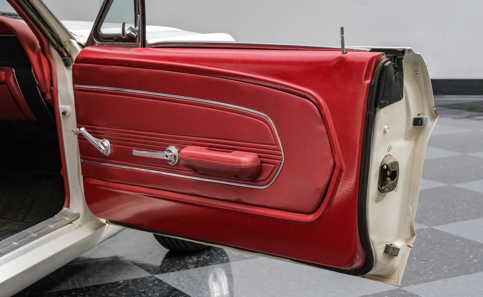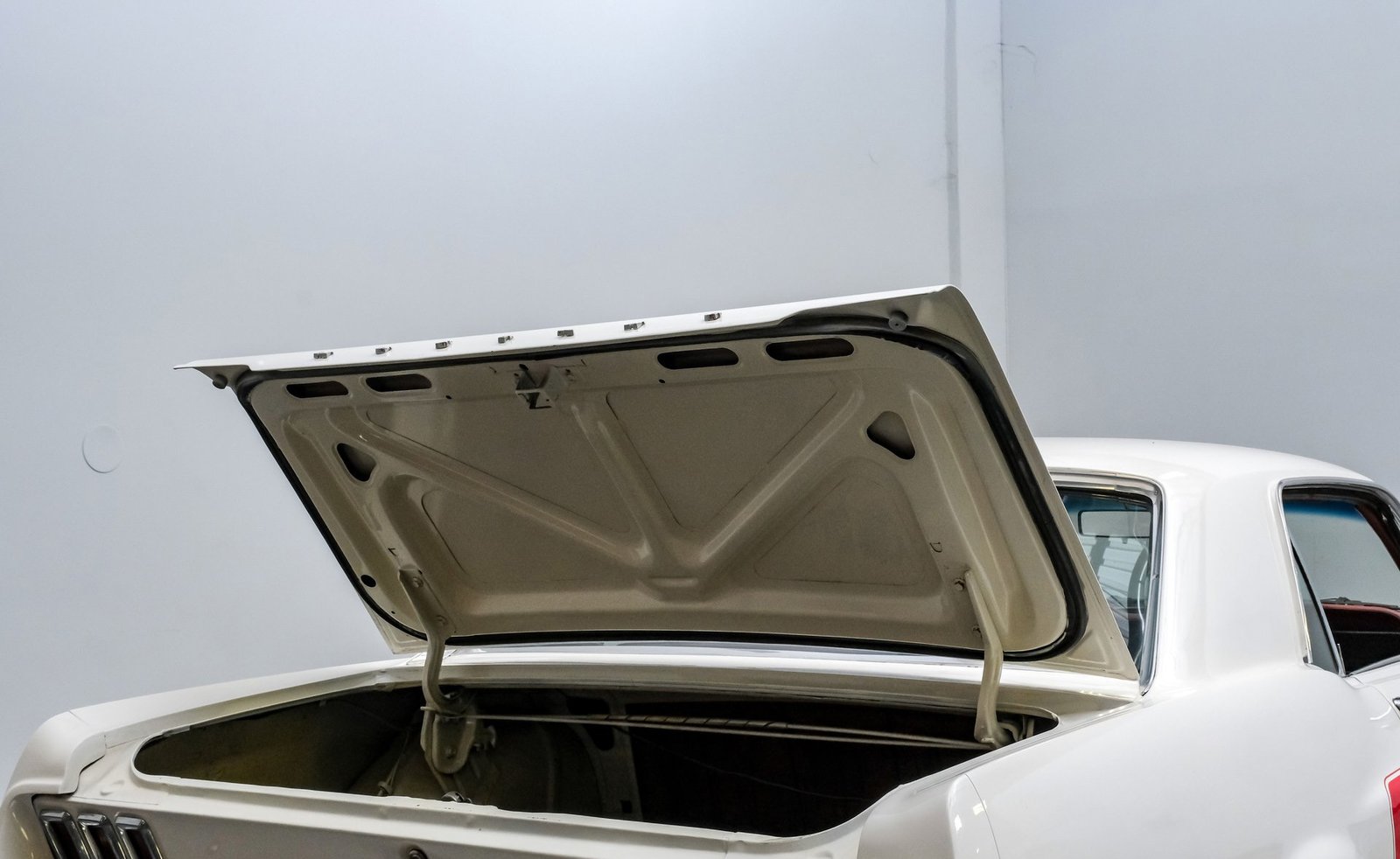 Sob o capô, você encontrará um motor T-Code de 200 polegadas cúbicas (3,3 litros) de 6 cilindros em linha, com carburador de corpo simples e coletores de admissão e escape originais de fábrica. O compartimento do motor mantém a aparência original, aprimorada por um compressor de ar condicionado adaptado para R134-A. Combinado com uma transmissão manual de 3 velocidades, este Mustang oferece uma experiência de direção envolvente e autêntica. O carro possui suspensão original de fábrica, proporcionando uma condução suave e segura.