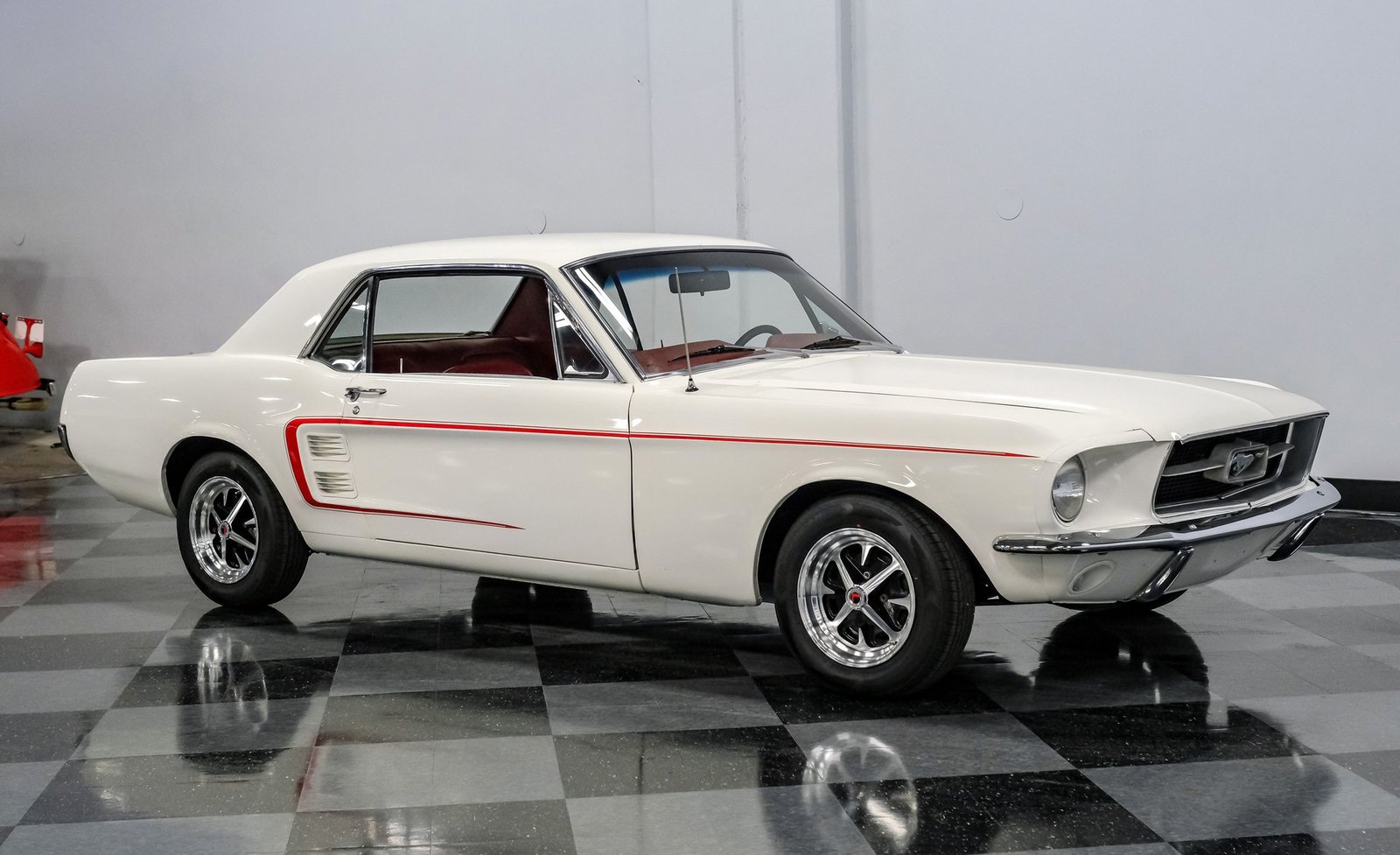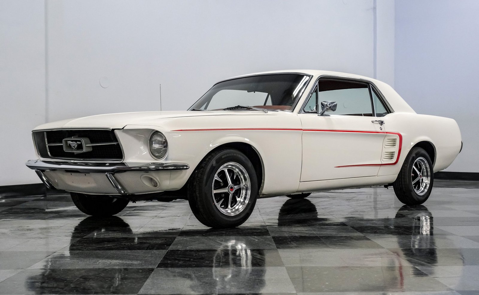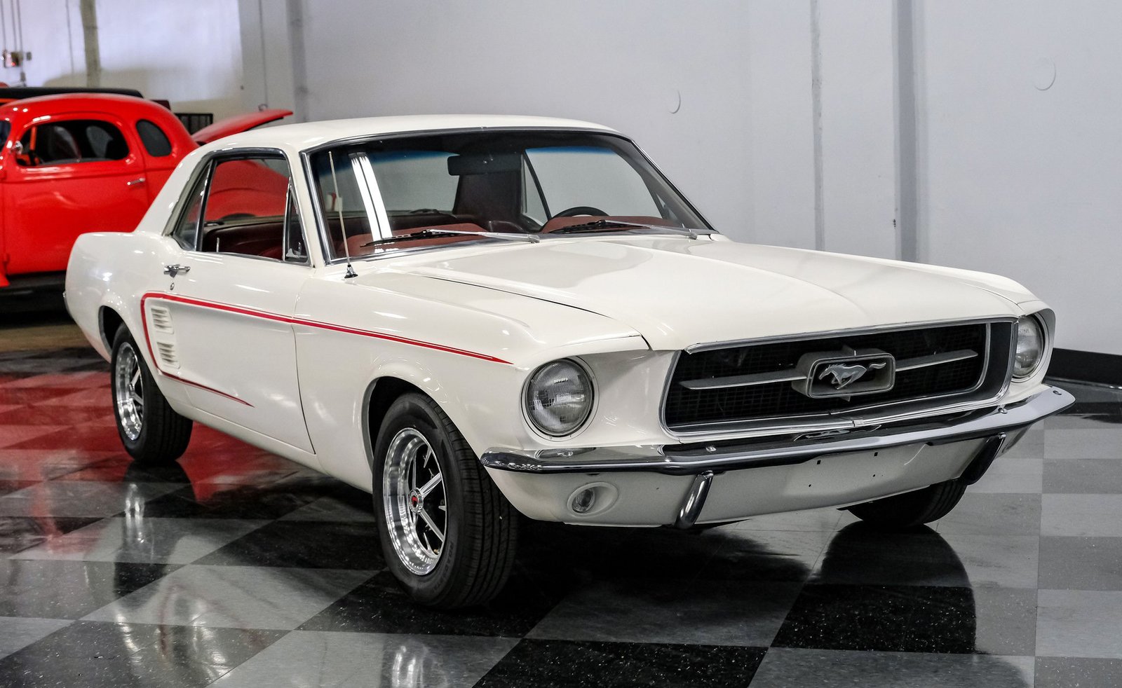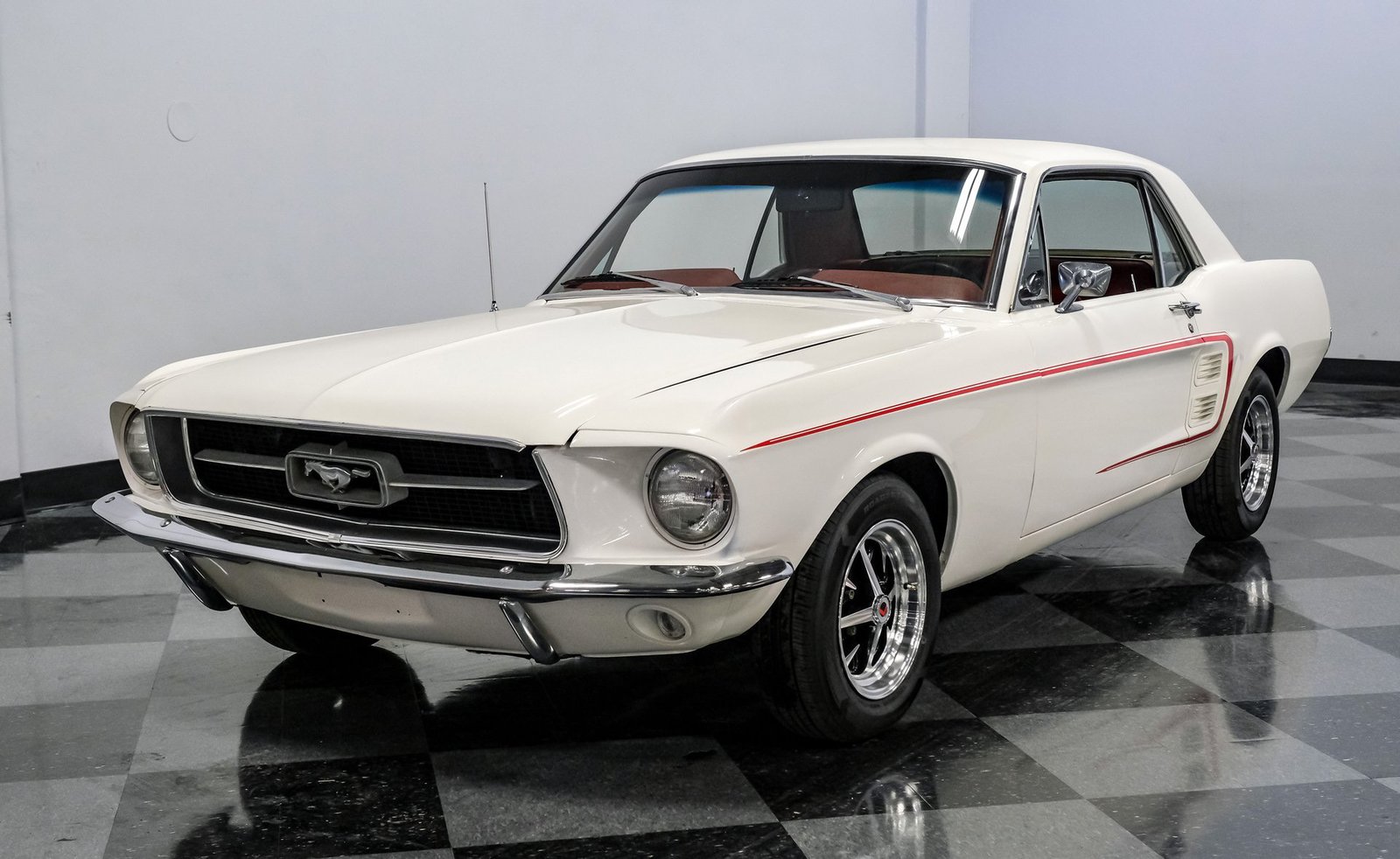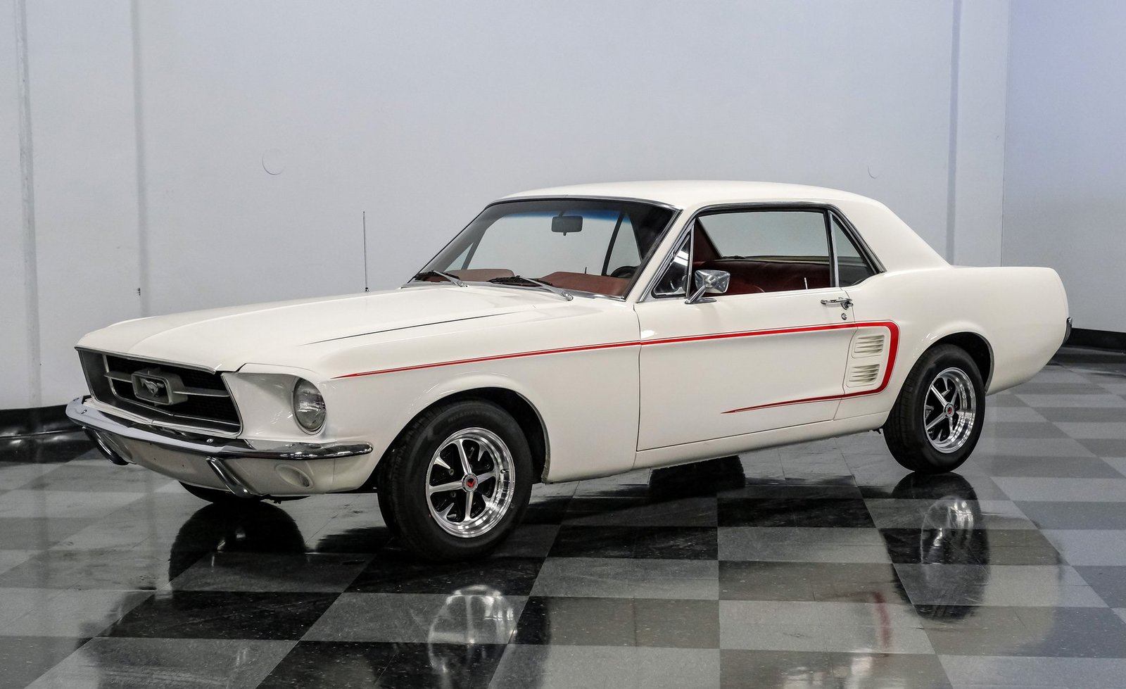 O Ford Mustang de 1967 é um ícone atemporal conhecido por seu estilo inconfundível e apelo duradouro. Este exemplar apresenta uma repintura original de fábrica na cor Branco Wimbledon, com faixas laterais vermelhas, para-choques e detalhes cromados, além de modernas rodas Magnum de 14 polegadas. É um clássico americano feito para atrair olhares e proporcionar uma experiência de direção autêntica.