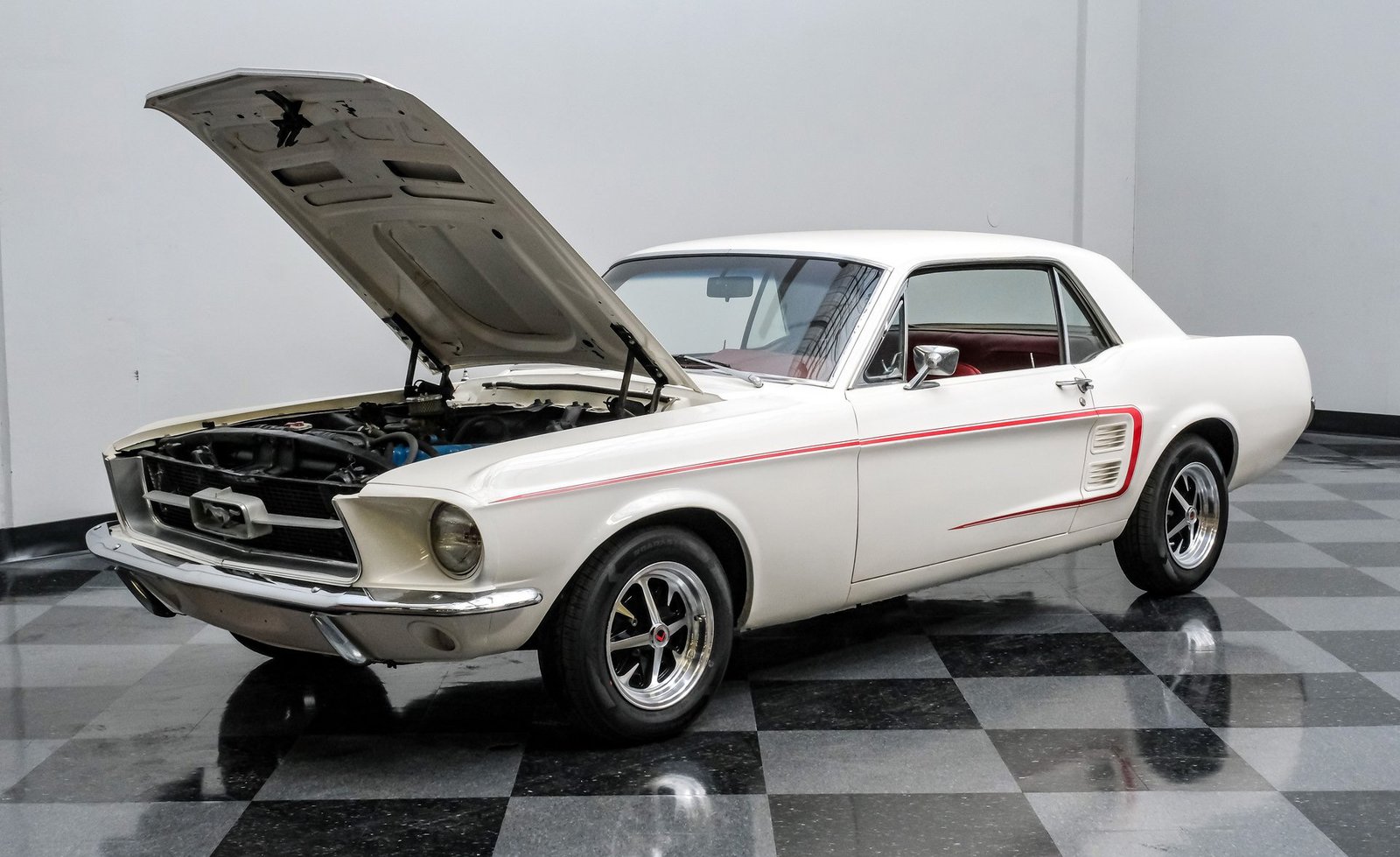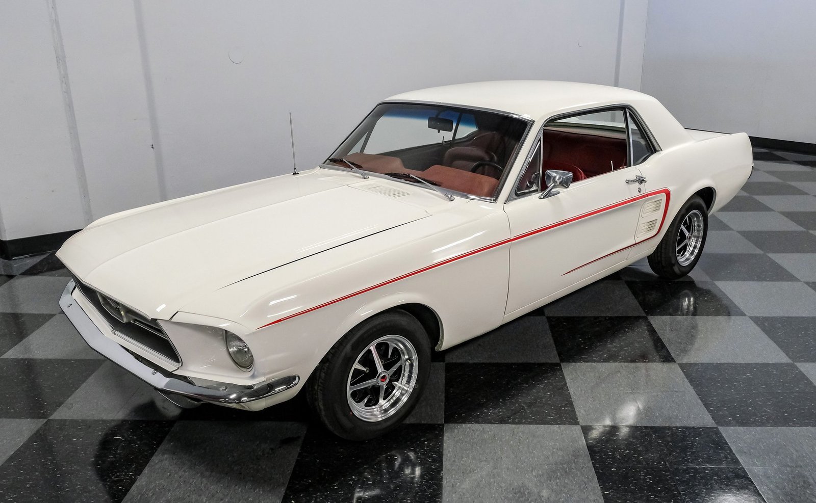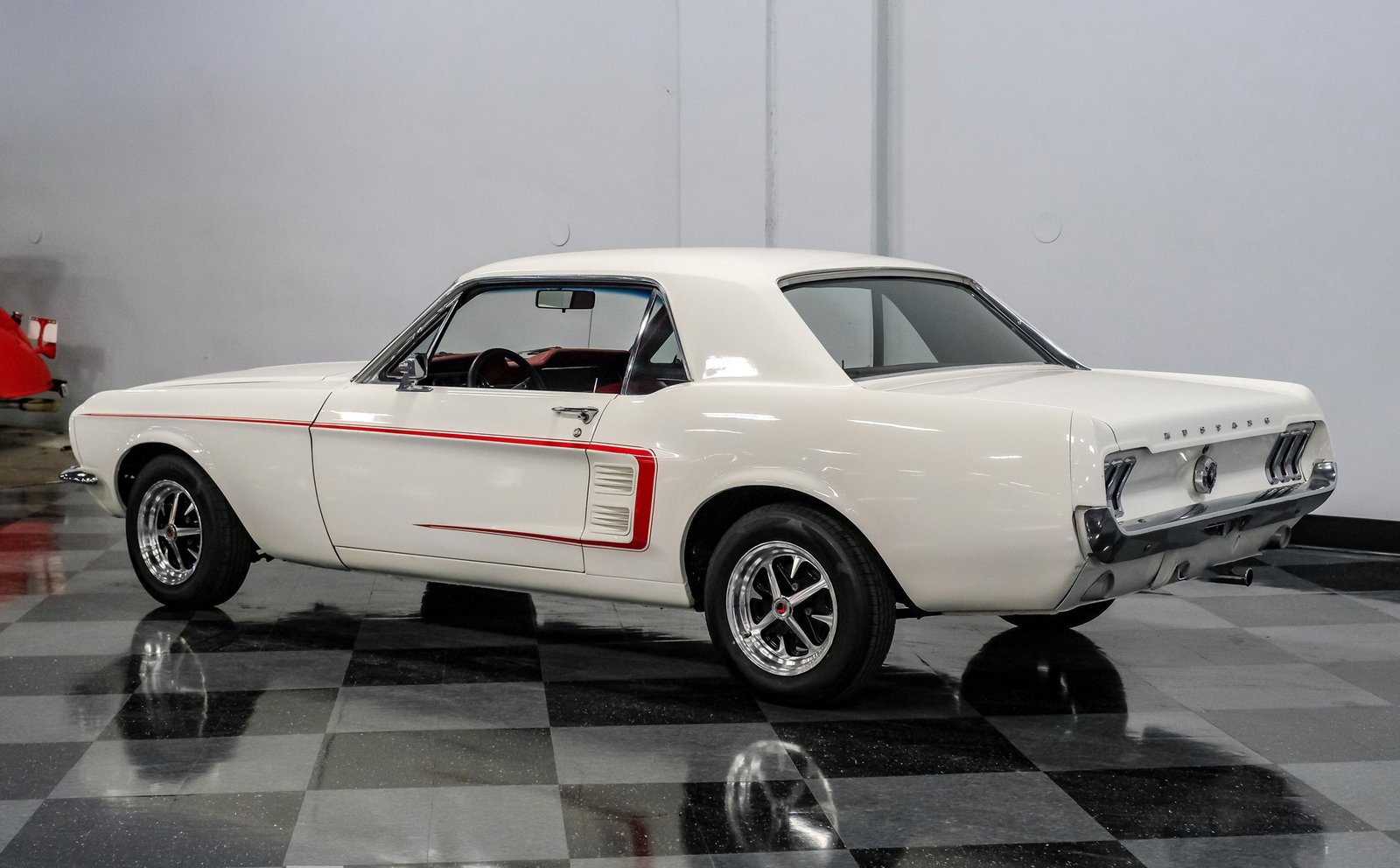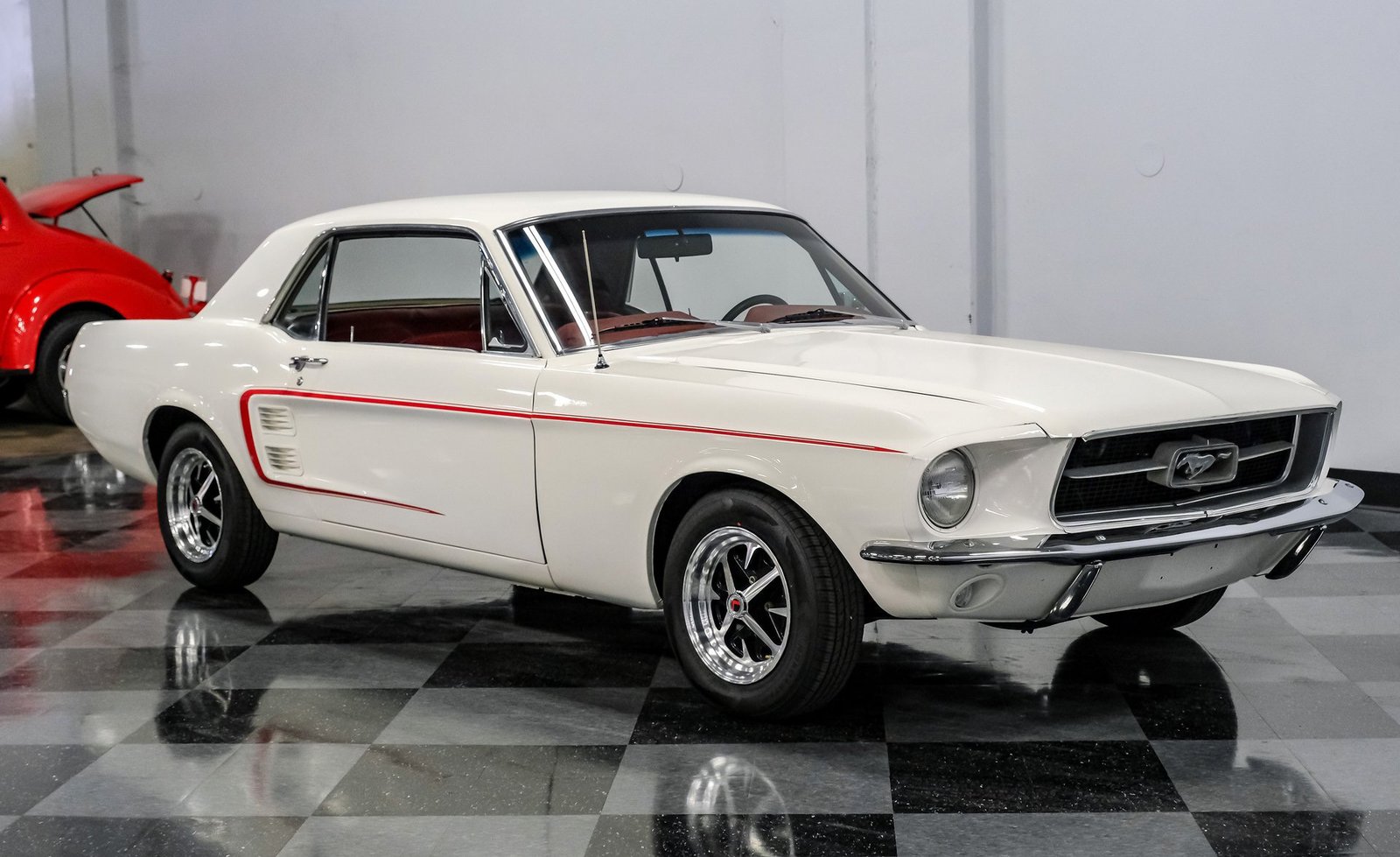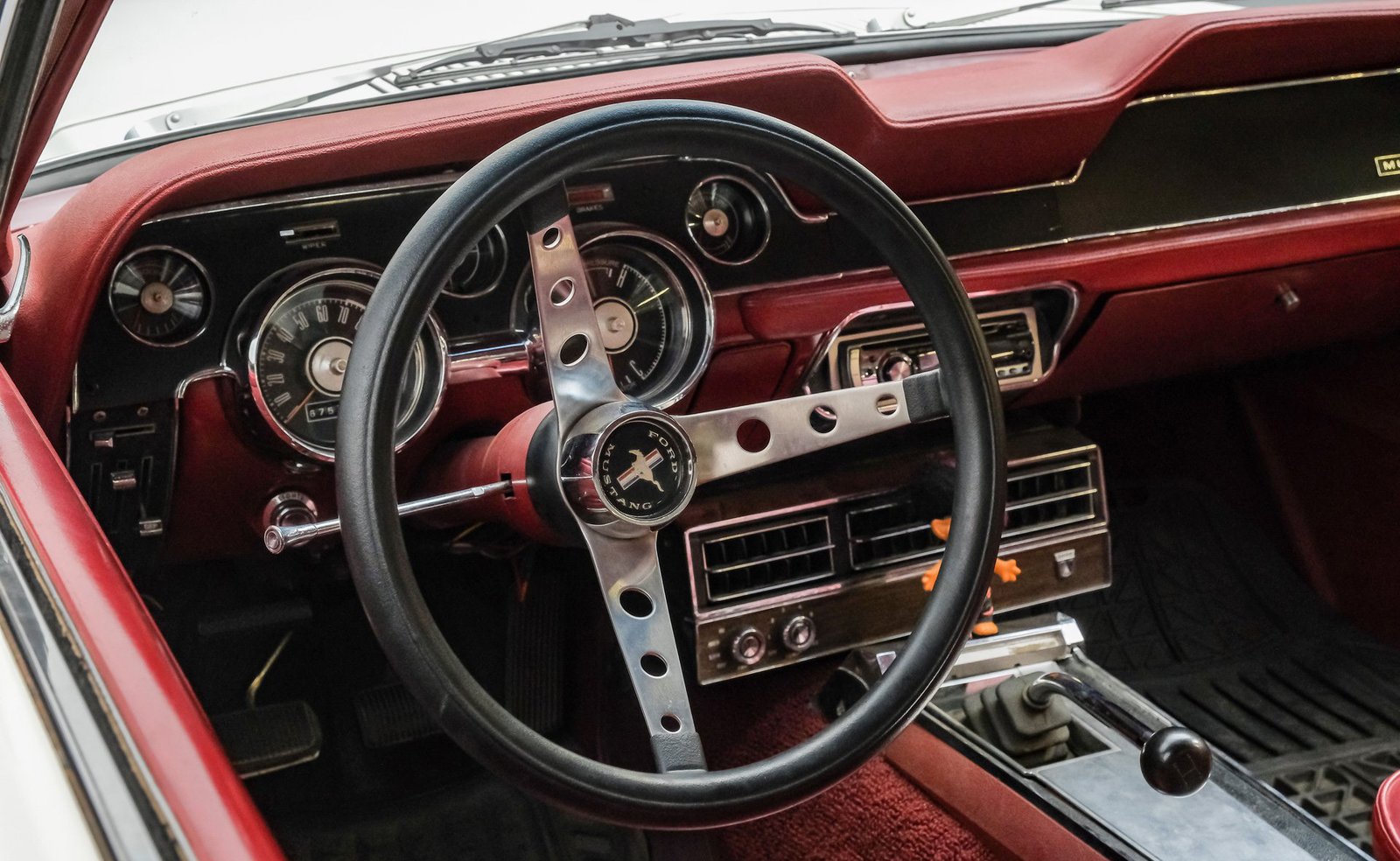 O Ford Mustang de 1967 é um ícone atemporal conhecido por seu estilo inconfundível e apelo duradouro. Este exemplar apresenta uma repintura original de fábrica na cor Branco Wimbledon, com faixas laterais vermelhas, para-choques e detalhes cromados, além de modernas rodas Magnum de 14 polegadas. É um clássico americano feito para atrair olhares e proporcionar uma experiência de direção autêntica.