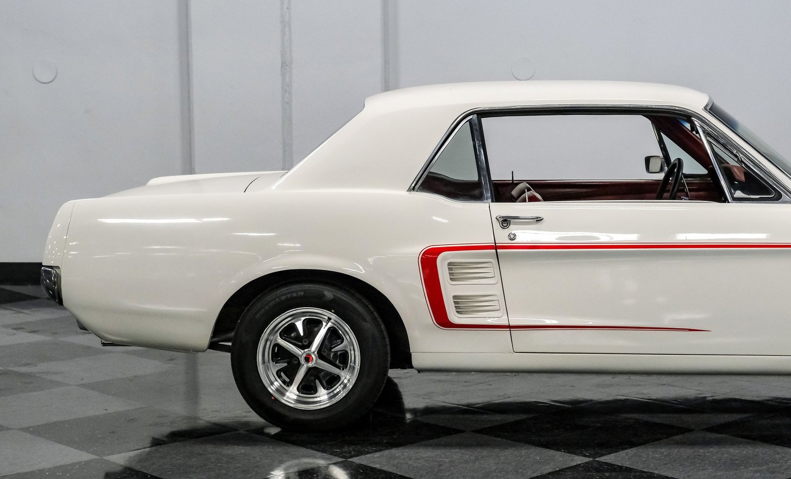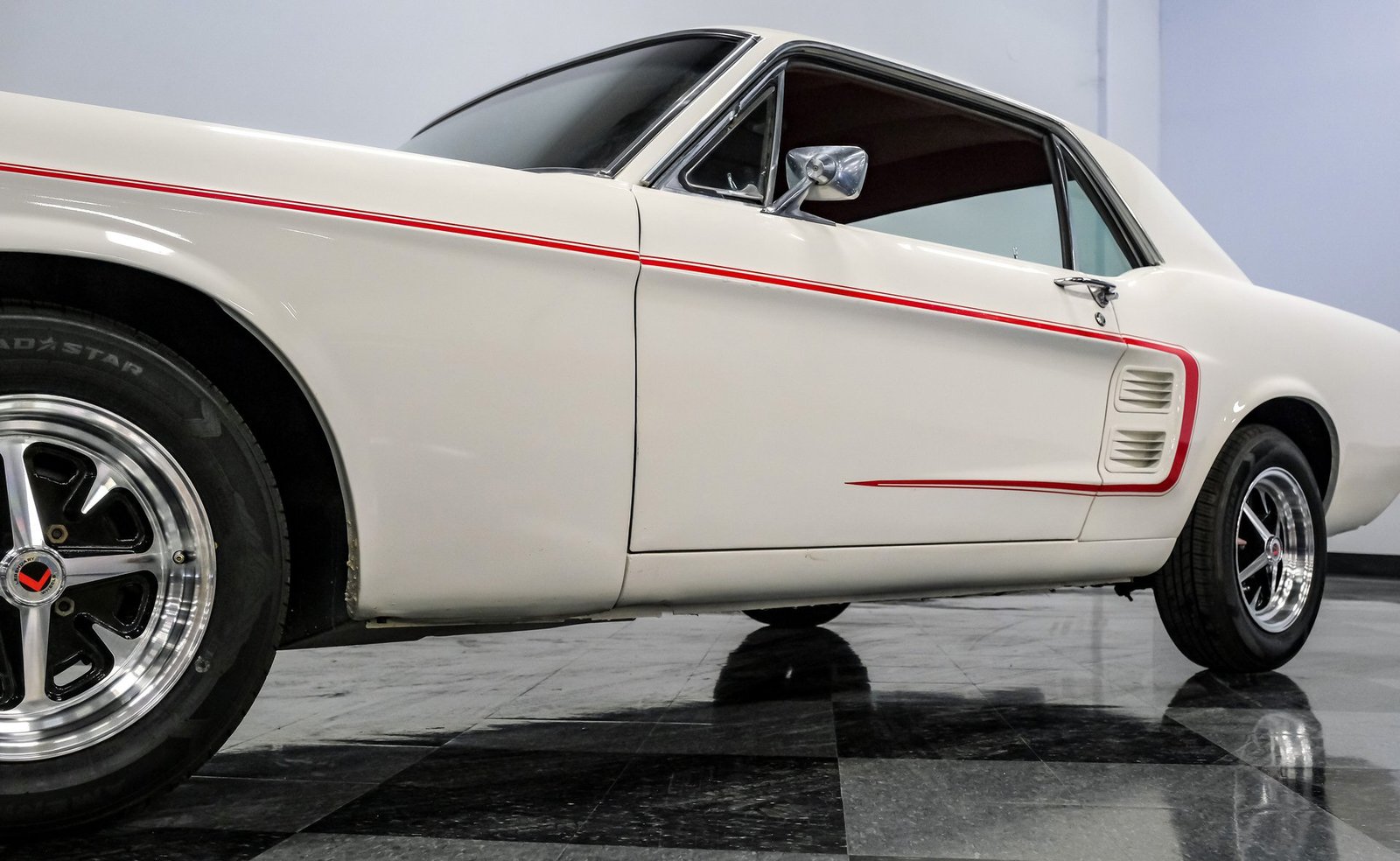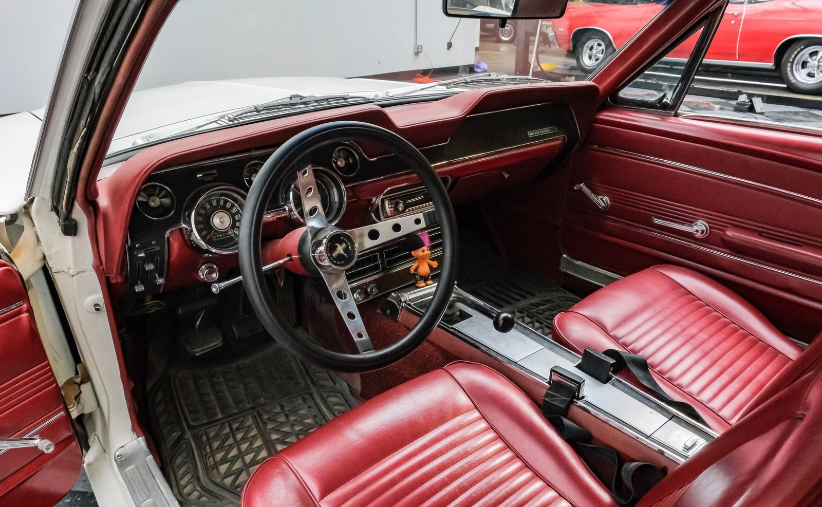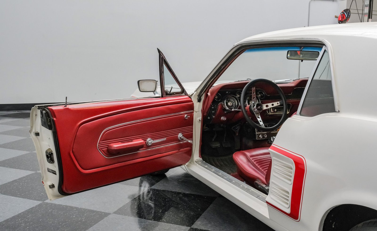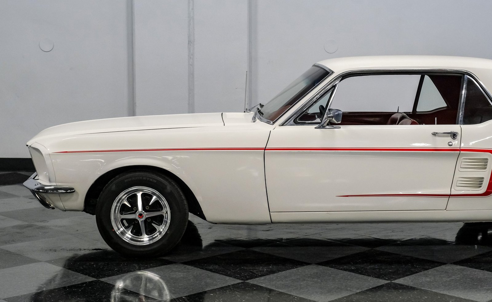 O Ford Mustang de 1967 é um ícone atemporal conhecido por seu estilo inconfundível e apelo duradouro. Este exemplar apresenta uma repintura original de fábrica na cor Branco Wimbledon, com faixas laterais vermelhas, para-choques e detalhes cromados, além de modernas rodas Magnum de 14 polegadas. É um clássico americano feito para atrair olhares e proporcionar uma experiência de direção autêntica.