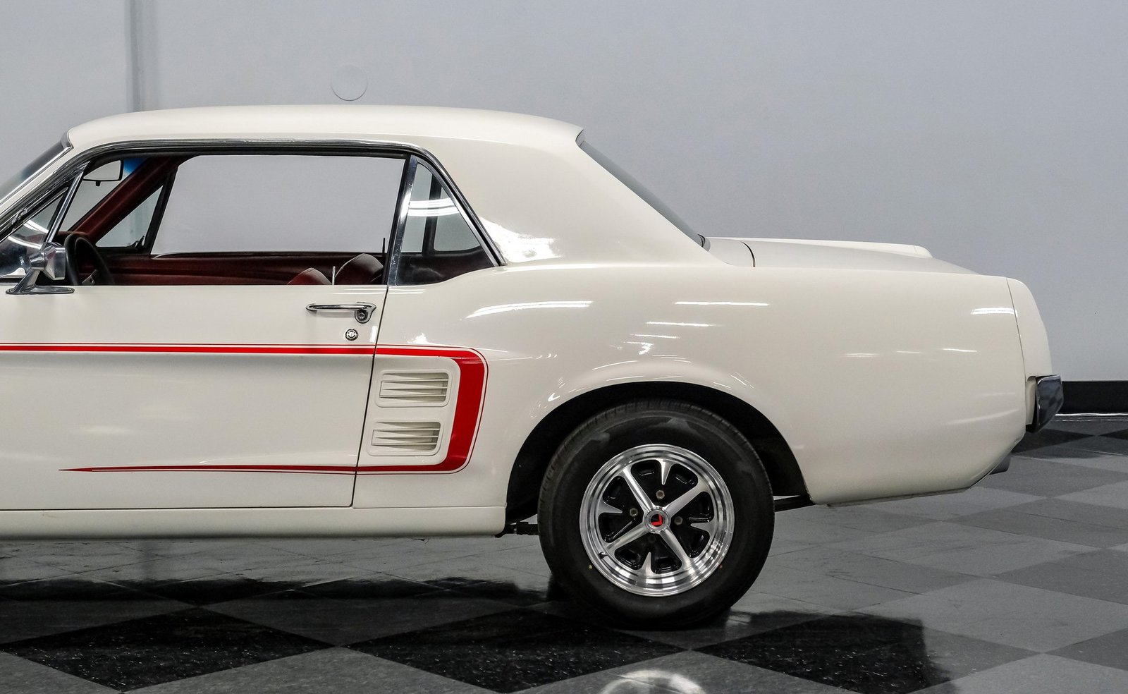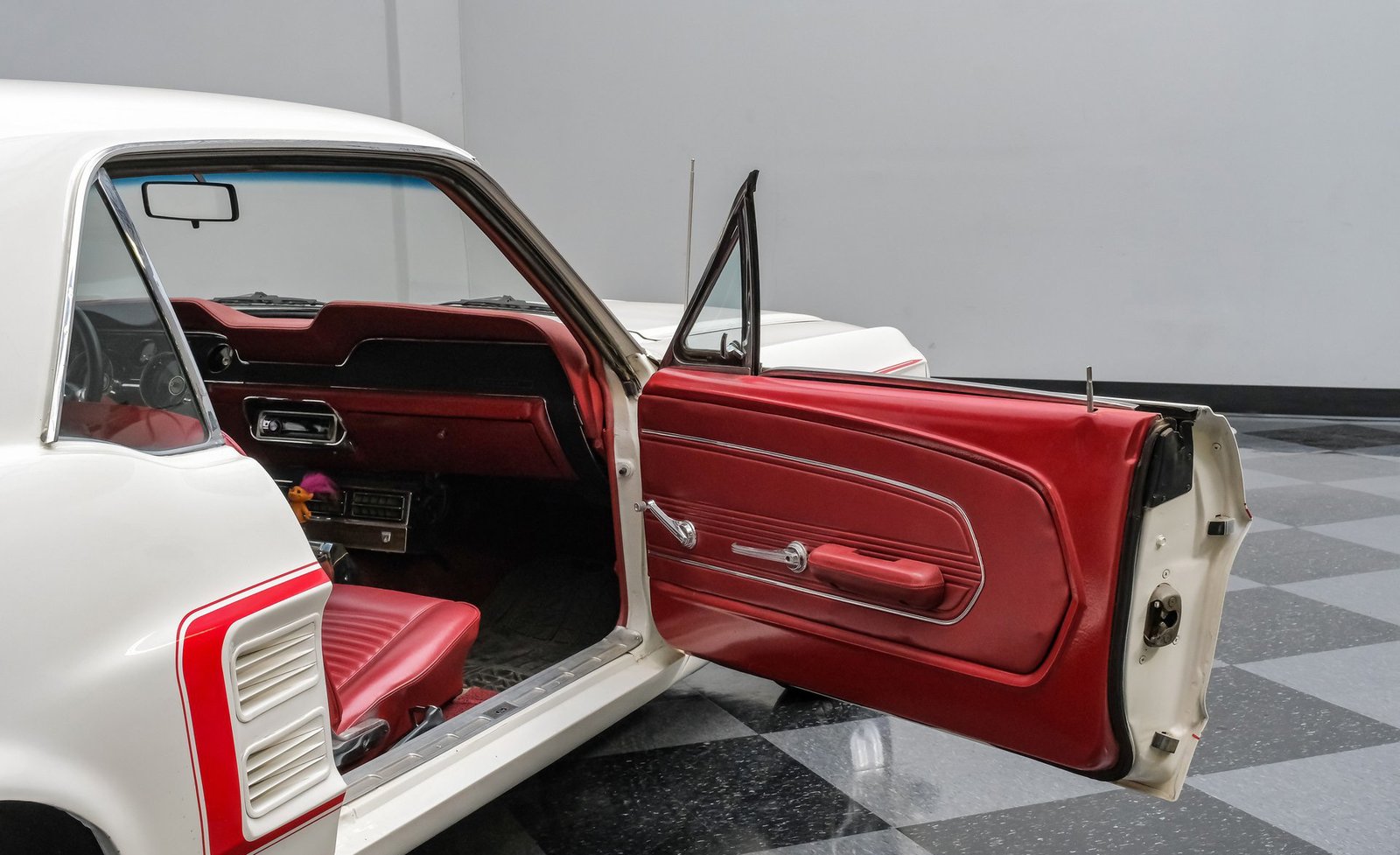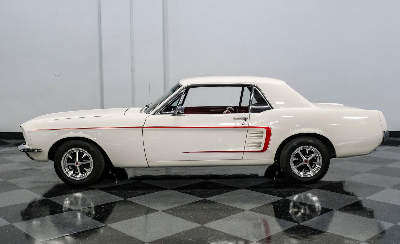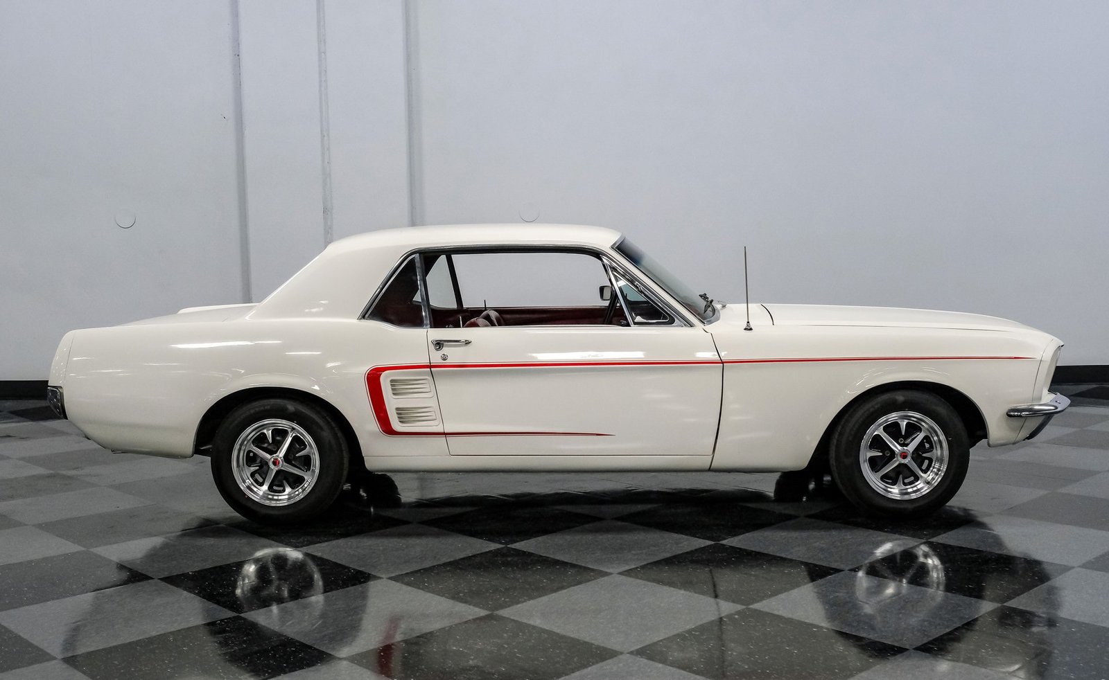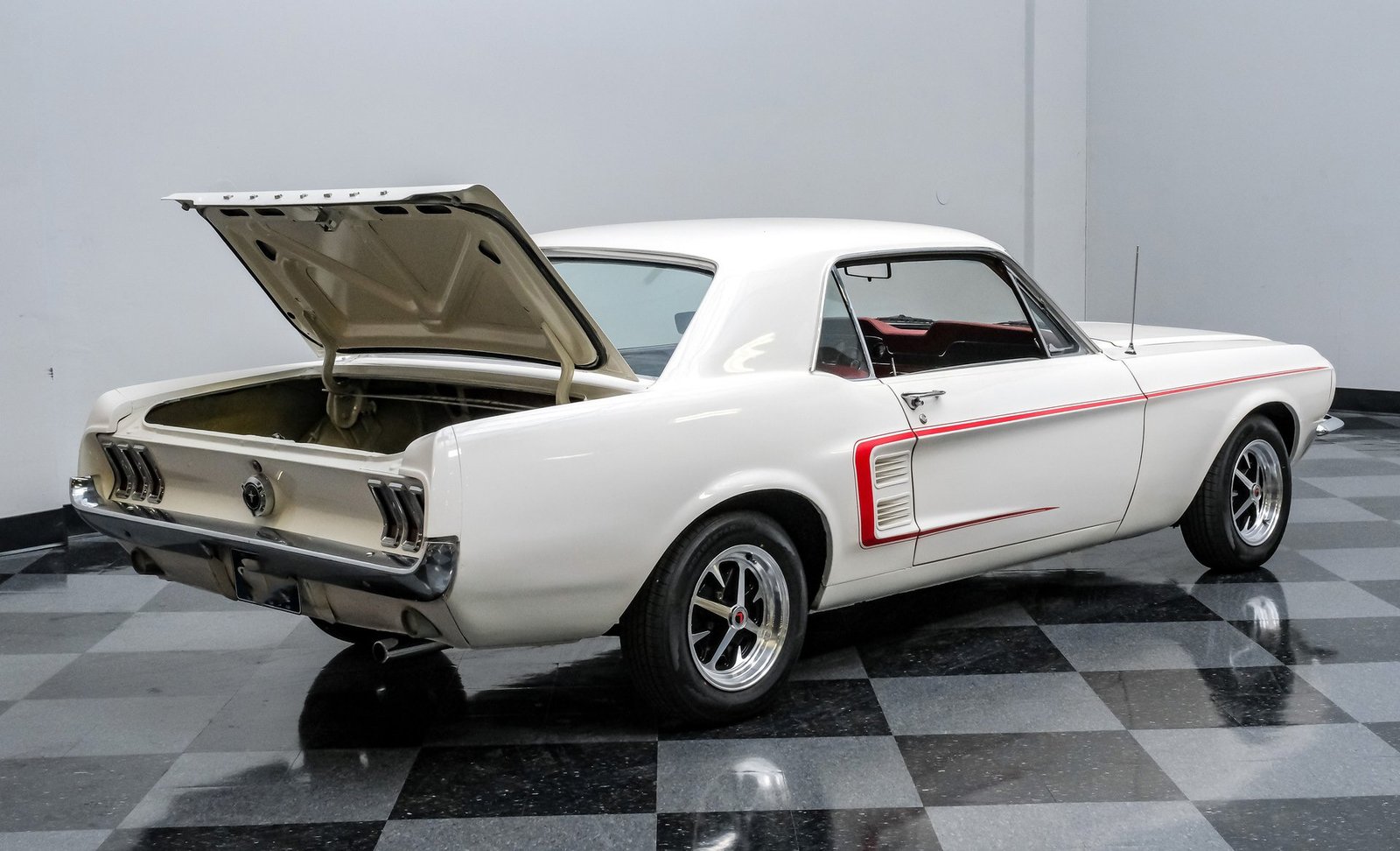 O Ford Mustang de 1967 é um ícone atemporal conhecido por seu estilo inconfundível e apelo duradouro. Este exemplar apresenta uma repintura original de fábrica na cor Branco Wimbledon, com faixas laterais vermelhas, para-choques e detalhes cromados, além de modernas rodas Magnum de 14 polegadas. É um clássico americano feito para atrair olhares e proporcionar uma experiência de direção autêntica.