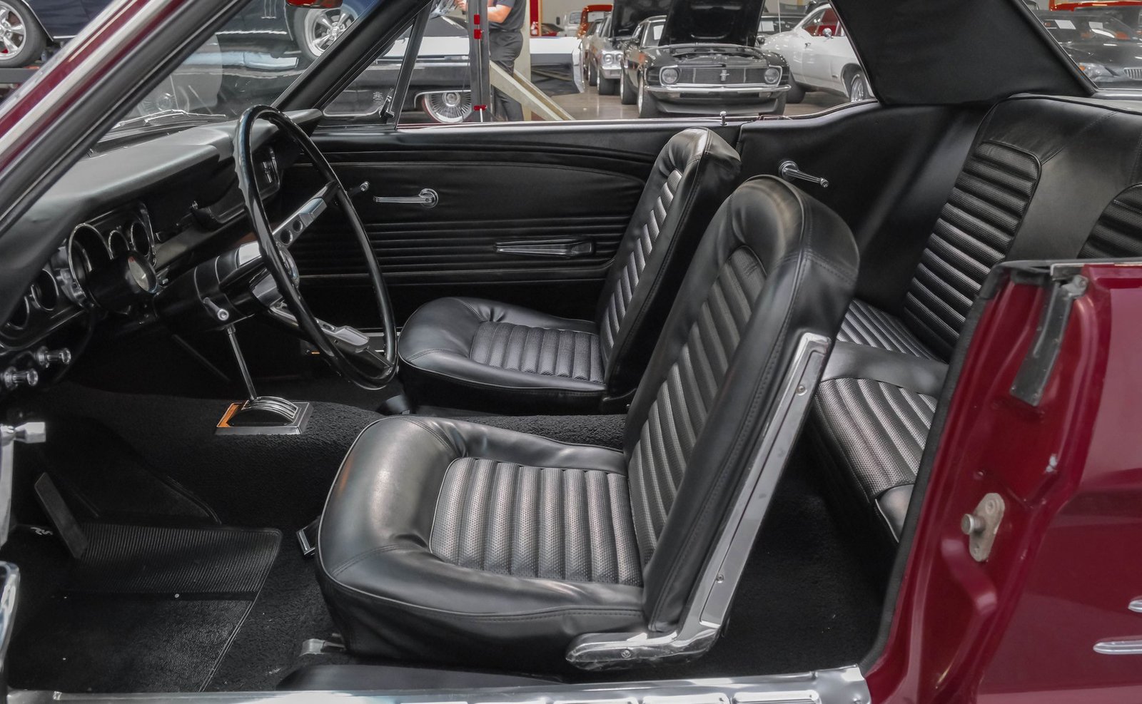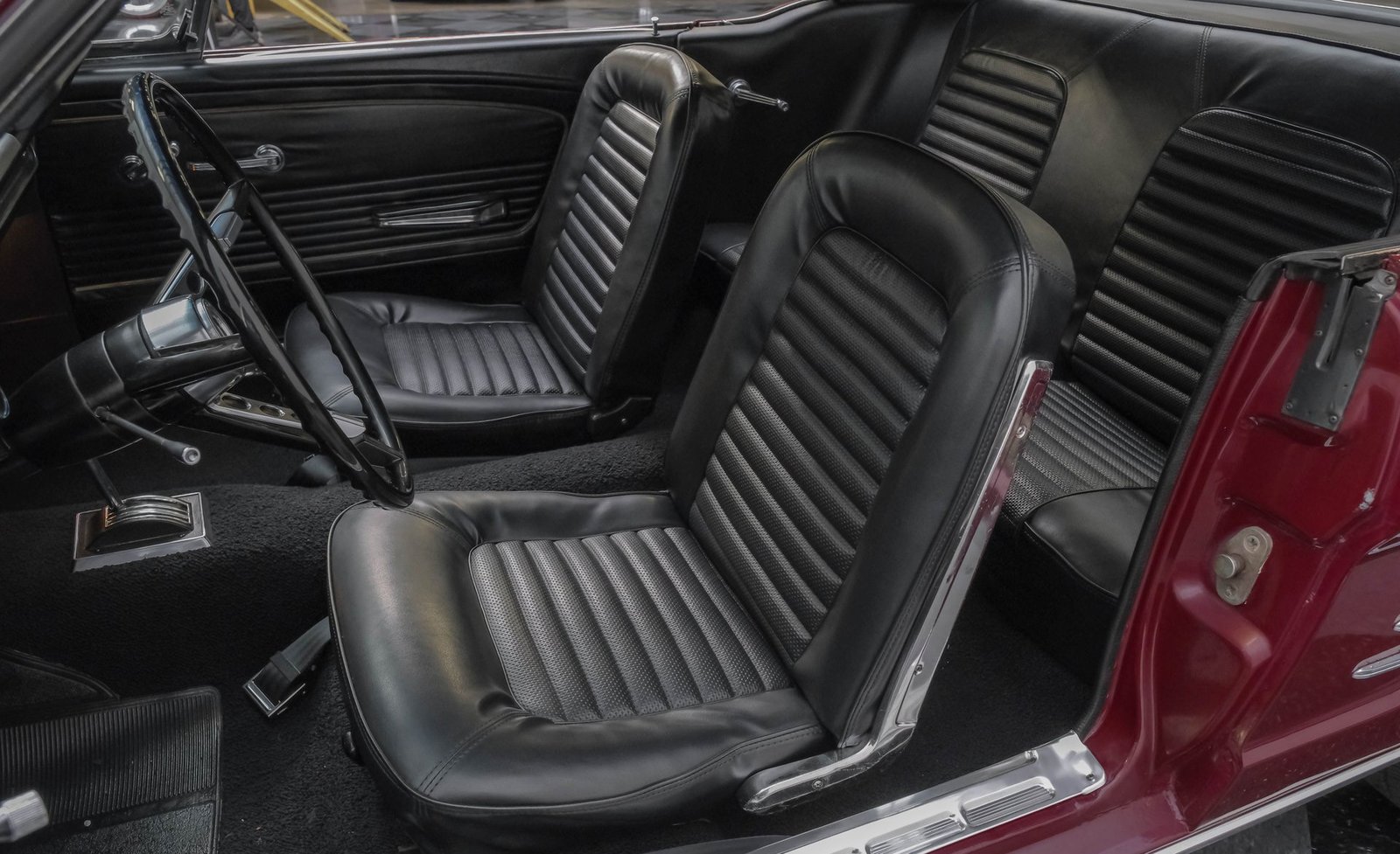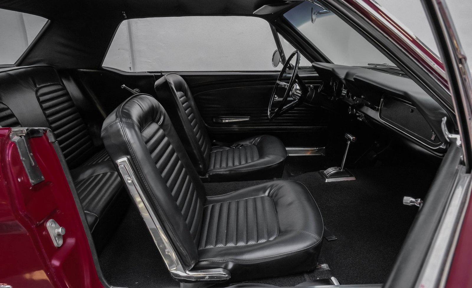 Ao entrar, você encontrará um interior em vinil preto, no estilo original de fábrica, bem preservado, que equilibra perfeitamente o charme vintage com o conforto do dia a dia. Os bancos individuais estão em ótimo estado, complementados por um painel clássico com instrumentos originais e um tacômetro Bosch RPM montado na coluna de direção. Os painéis das portas, o painel e o carpete estão impecáveis, enquanto um rádio AM/FM moderno com estilo vintage permanece à mostra (inoperante) e o câmbio de assoalho original completam a atmosfera autêntica e convidativa.