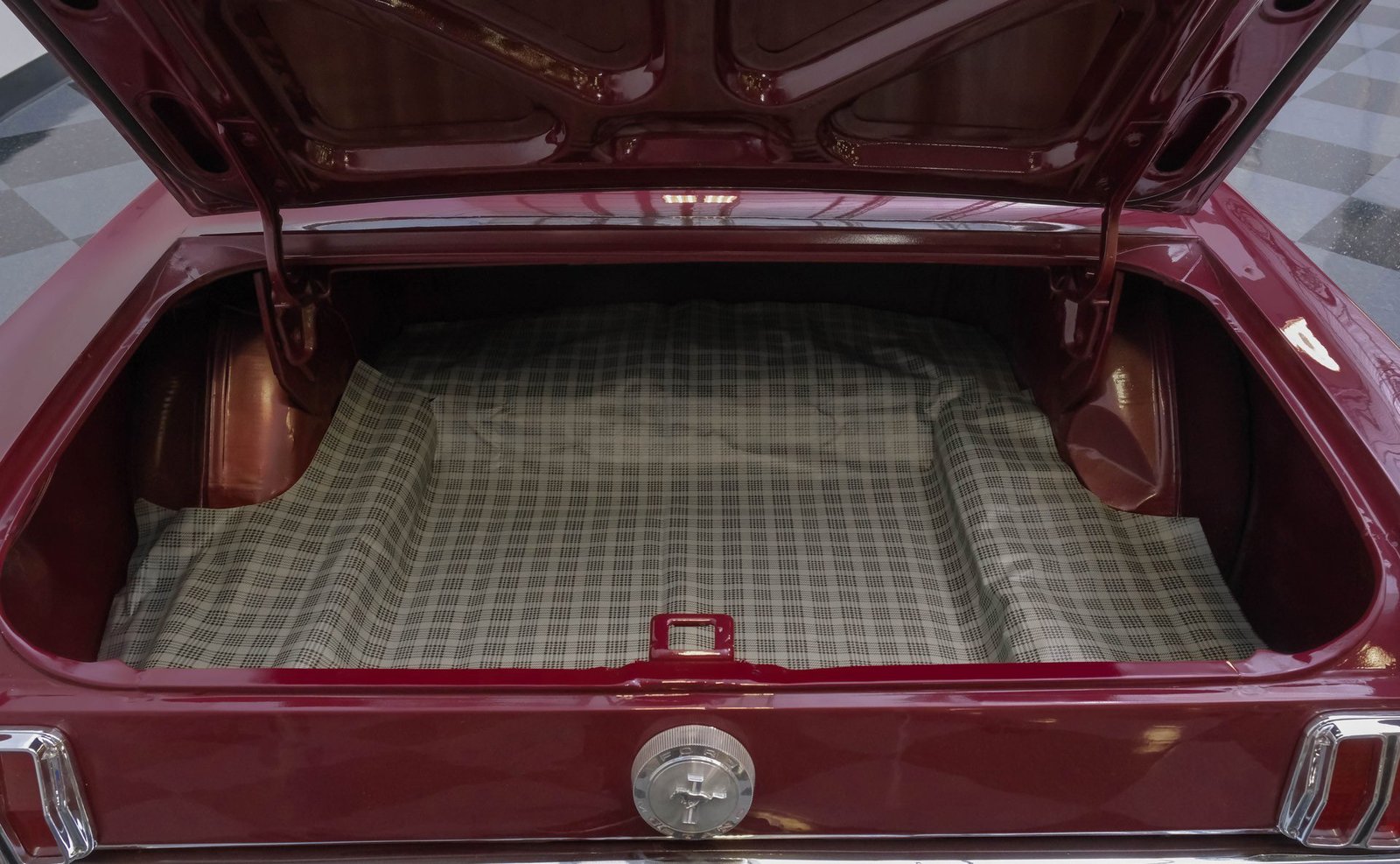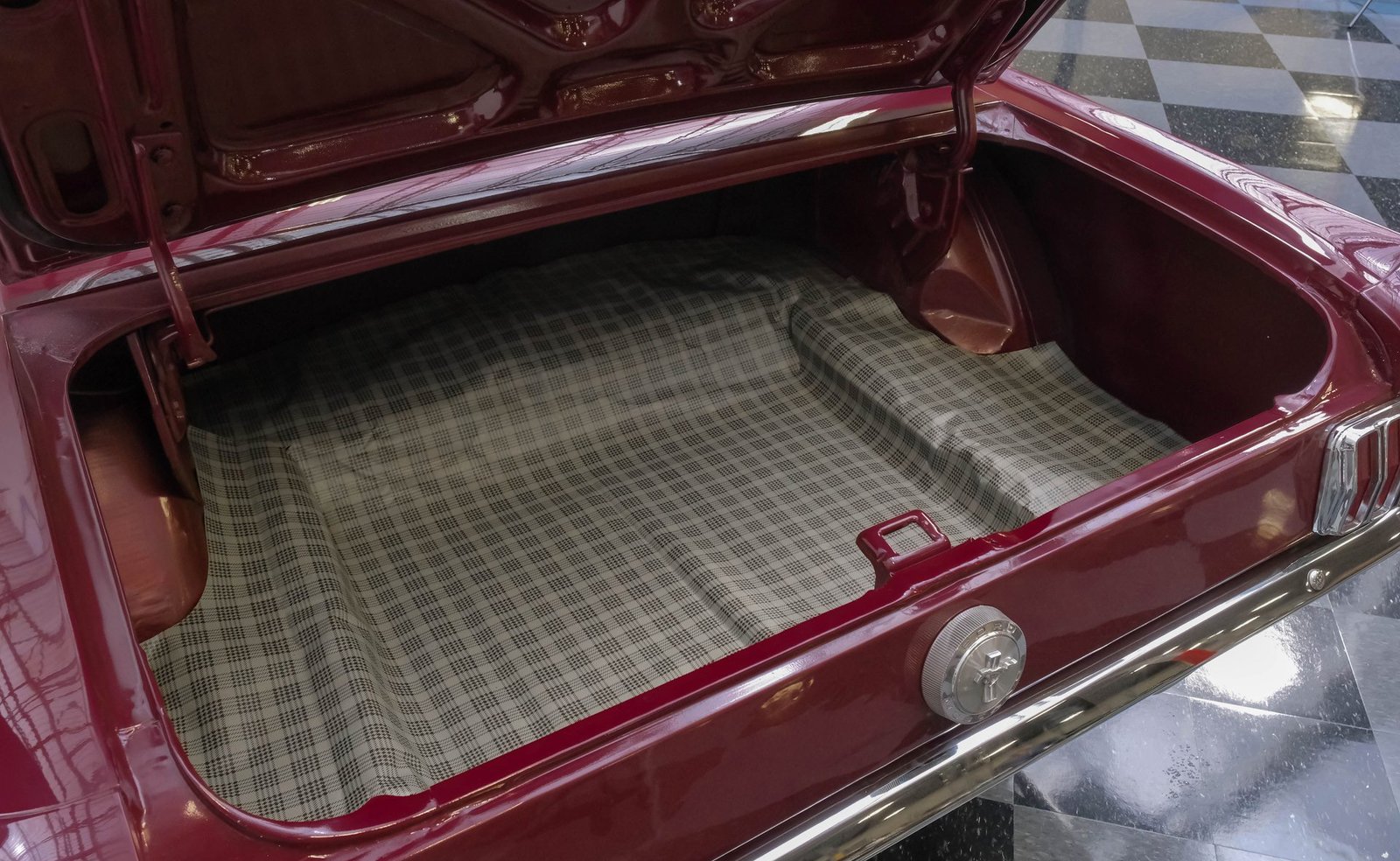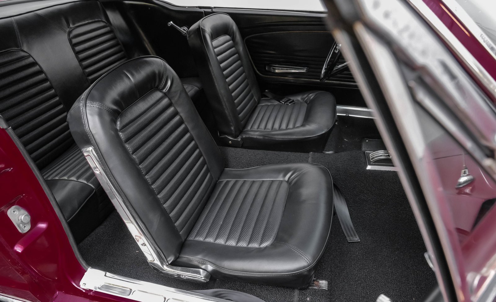 Ao entrar, você encontrará um interior em vinil preto, no estilo original de fábrica, bem preservado, que equilibra perfeitamente o charme vintage com o conforto do dia a dia. Os bancos individuais estão em ótimo estado, complementados por um painel clássico com instrumentos originais e um tacômetro Bosch RPM montado na coluna de direção. Os painéis das portas, o painel e o carpete estão impecáveis, enquanto um rádio AM/FM moderno com estilo vintage permanece à mostra (inoperante) e o câmbio de assoalho original completam a atmosfera autêntica e convidativa.