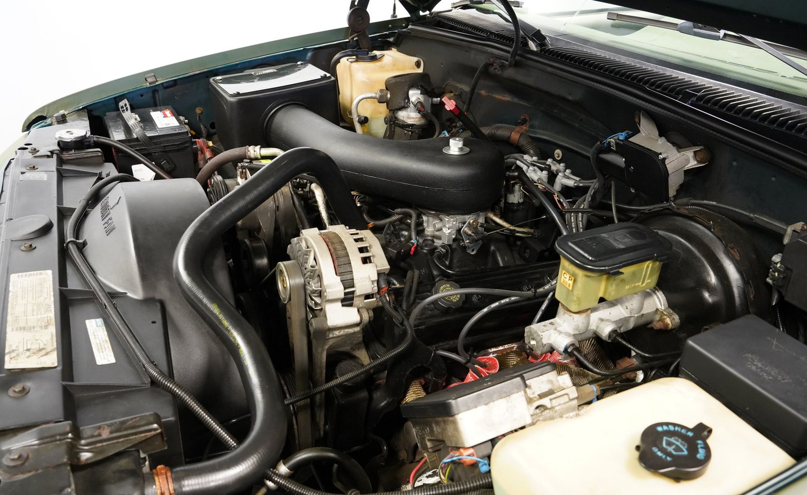Em uma picape de trabalho de verdade, a potência é fundamental, e o motor V8 de 5.7 litros reconstruído sob o capô entrega o que promete, com apenas 6.400 km rodados desde a revisão. O sistema de injeção eletrônica de combustível funciona de forma confiável em todas as condições climáticas, enquanto a transmissão automática 4L60E de 4 velocidades, também revisada, realiza trocas de marcha precisas. O escapamento duplo com silenciadores esportivos produz um ronco digno de uma picape deste porte, e os coletores de escape curtos ajudam o V8 a respirar com mais eficiência. O eixo traseiro de 10 parafusos transmite a potência ao solo quando necessário, enquanto a suspensão dianteira com molas helicoidais e a traseira com feixes de molas lida com igual capacidade tanto com viagens tranquilas em rodovias quanto com cargas pesadas.