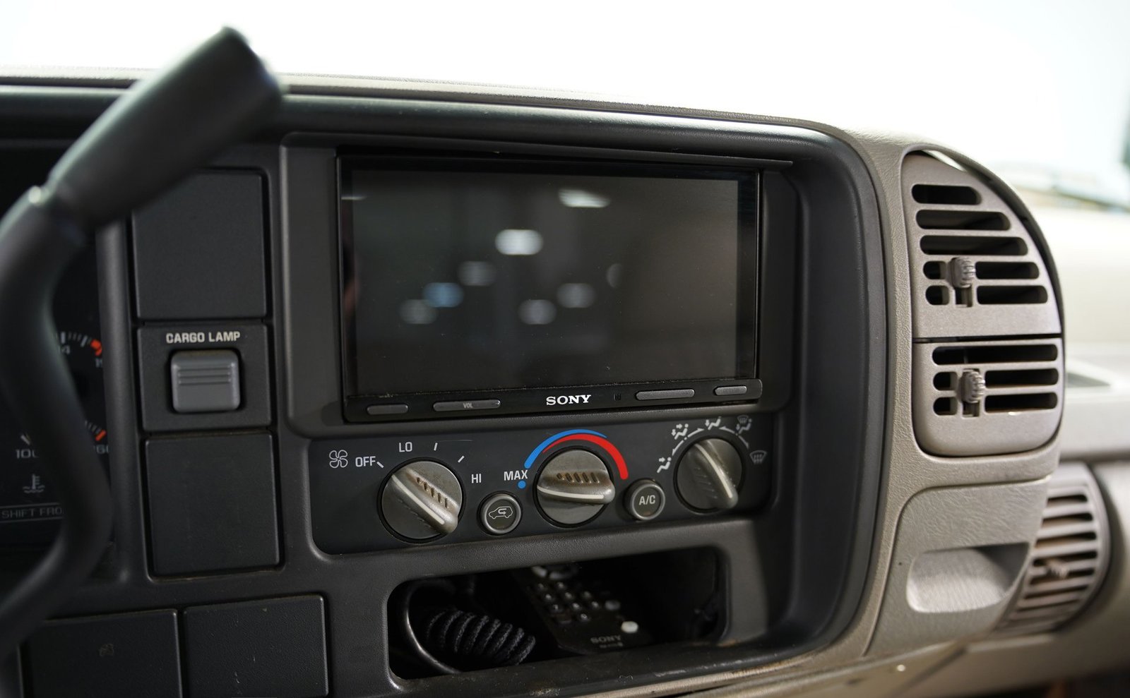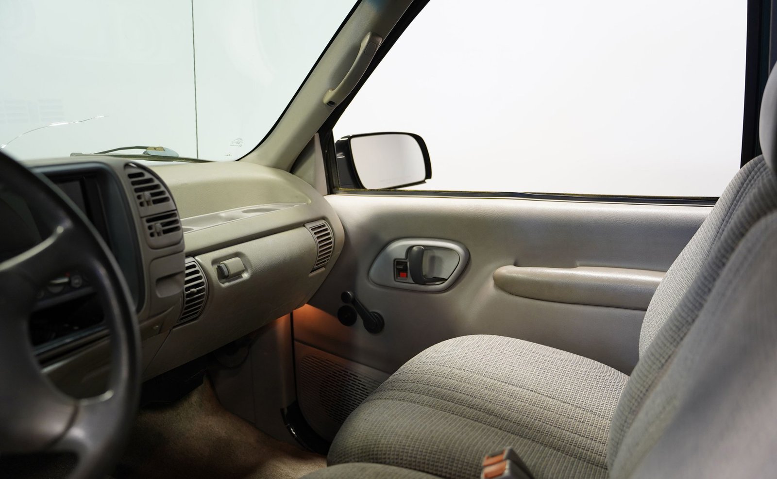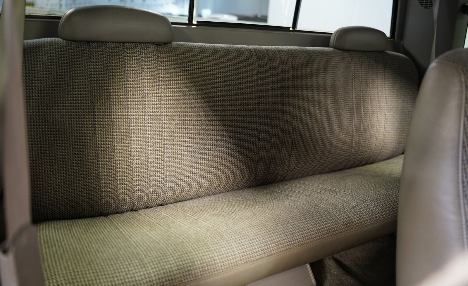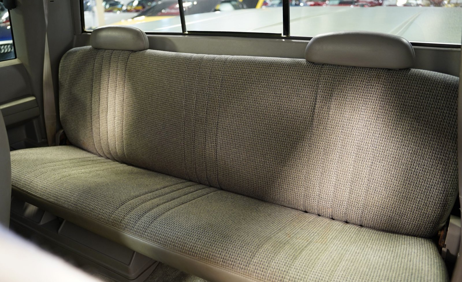 Acomode-se no banco traseiro bipartido em tecido cinza e você encontrará um espaço de trabalho simples e funcional, projetado para realizar tarefas com eficiência. O rádio com tela sensível ao toque da SONY quebra a monotonia do painel clássico com tecnologia moderna, oferecendo conectividade Bluetooth e entradas auxiliares para suas músicas. Longas viagens se tornam mais confortáveis ​​com ar-condicionado para mantê-lo fresco, controle de cruzeiro para trechos de estrada e volante com ajuste de inclinação para uma posição de direção ideal. Detalhes em fibra de carbono nas vedações das portas adicionam um toque personalizado que contrasta elegantemente com o tema cinza do interior. As portas fecham com um som sólido e satisfatório, característico das robustas caminhonetes americanas.